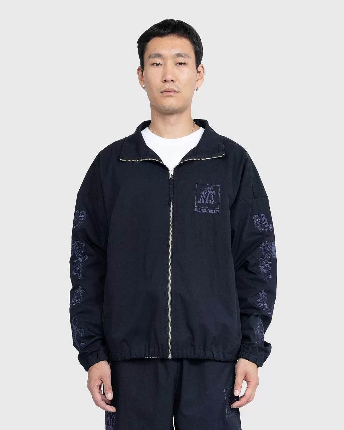 Den Børstede Nylon-Træningsjakke Er En Del Af Vores Samarbejde Med Nts, Musikplatformen Har Skubbet Kulturen Frem Siden 2011. Detaljeret Med En Glat, Mat Tekstur, Jakken Er Lavet Af En Bomulds- Og Nylonblanding Med Broderet Grafik Designet Af Kunstneren George Addy På Ærmet. Et Co-Branded Logo På Brystet Sammen Med En Lynlåslukning Og Standerkrave Pynter Yderligere På Looket, Mens To Frontlommer Fuldender Designet.