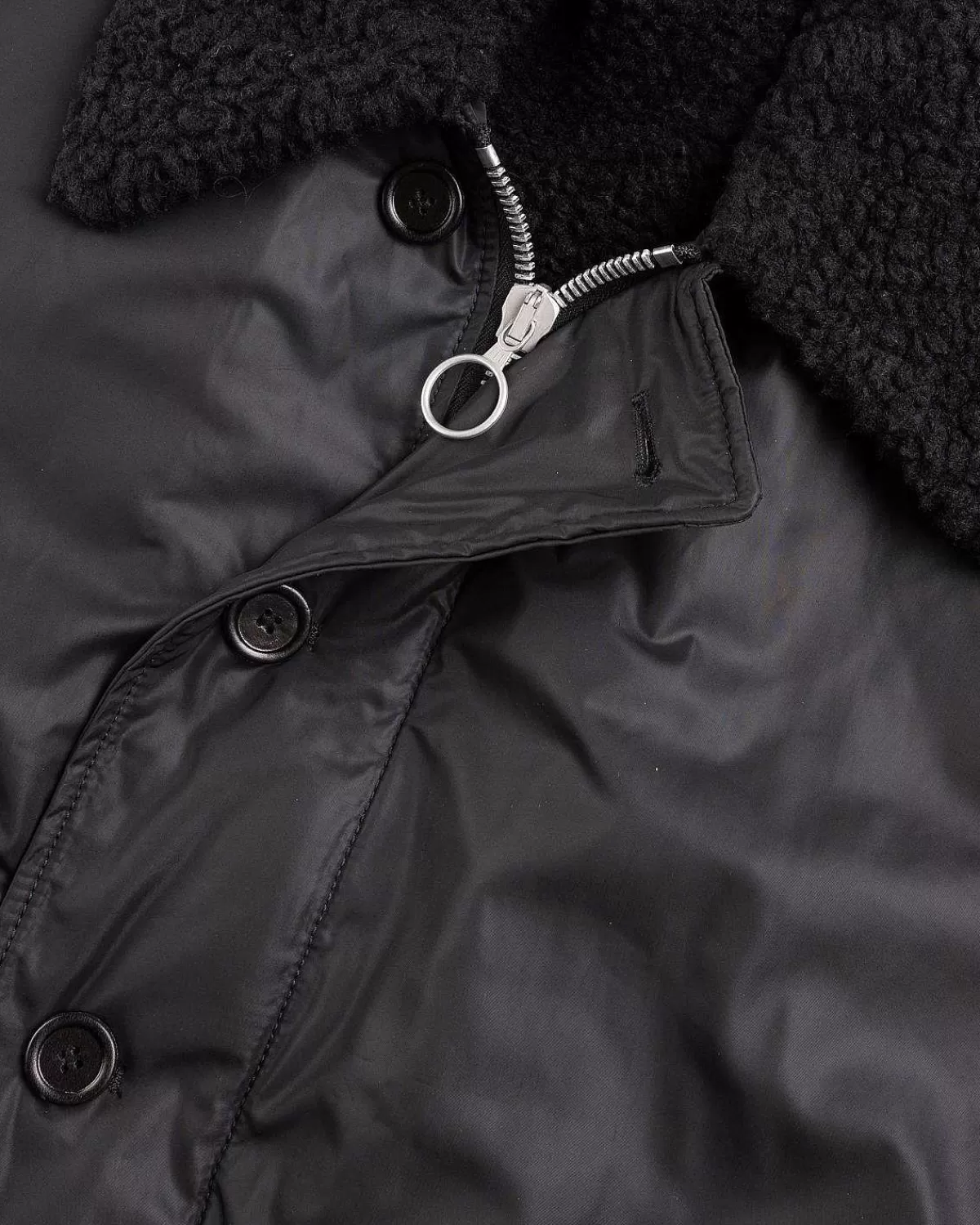 Grizzly-Jakken Er En Forhøjet Version Af En Velkendt Overtøjsstil. Produceret I Et Vandafvisende Teknisk Italiensk Stof, Tøjet Er Prydet Med En Stormklaplukning, Læderknapper Og En Imiteret Pelskrave. Den Er Skåret Til En Kort, Boxy Pasform Og Detaljeret Med Justerbare Lædertræksnore, Samt Knappede Jetlommer For At Fuldende Designet.