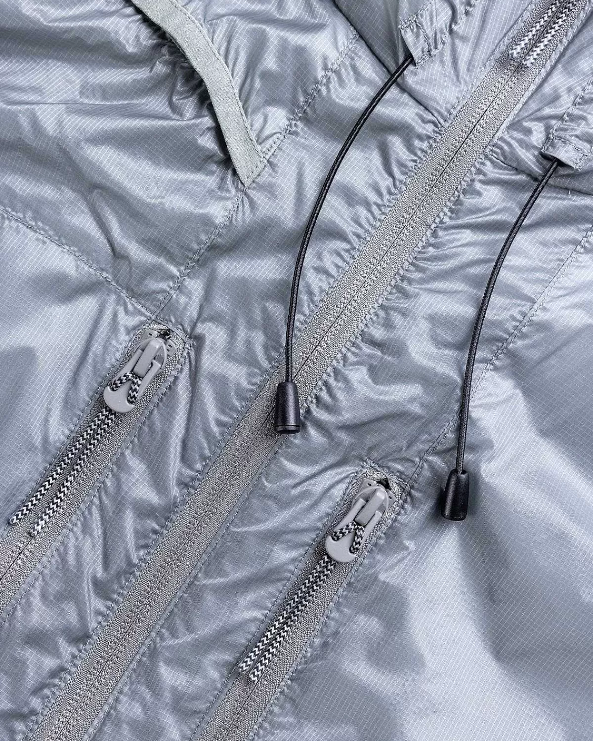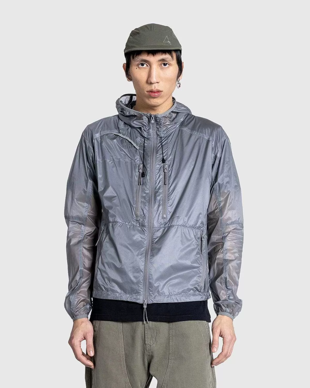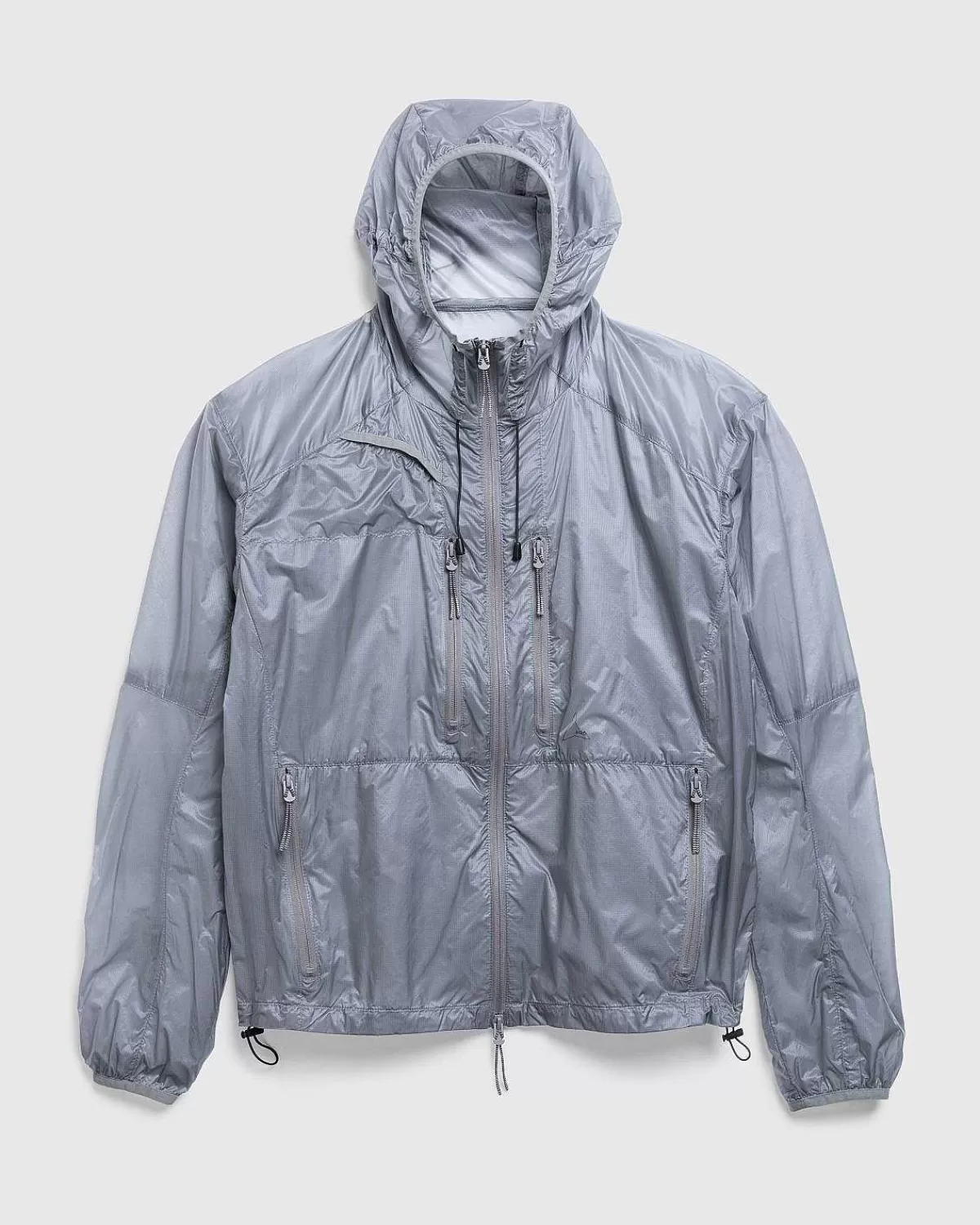 Den Syntetiske Jakke Er En Let Hætte-Dun-Stil Lavet I Rumænien Af En Mikro-Ripstop-Nylon For Forbedret Holdbarhed, Med En Semi-Gennemsigtig Effekt. Den Er Udstyret Med To-Vejs Lynlåslukning Foran Og Aftrækkere Ved Hætten Og Langs Kanten Til Mindre Justeringer. Fire Lynlåslommer Er Indbygget På Forsiden Af Beklædningsgenstanden For At Tilbyde Et Sikkert Sted At Medbringe Daglige Fornødenheder.