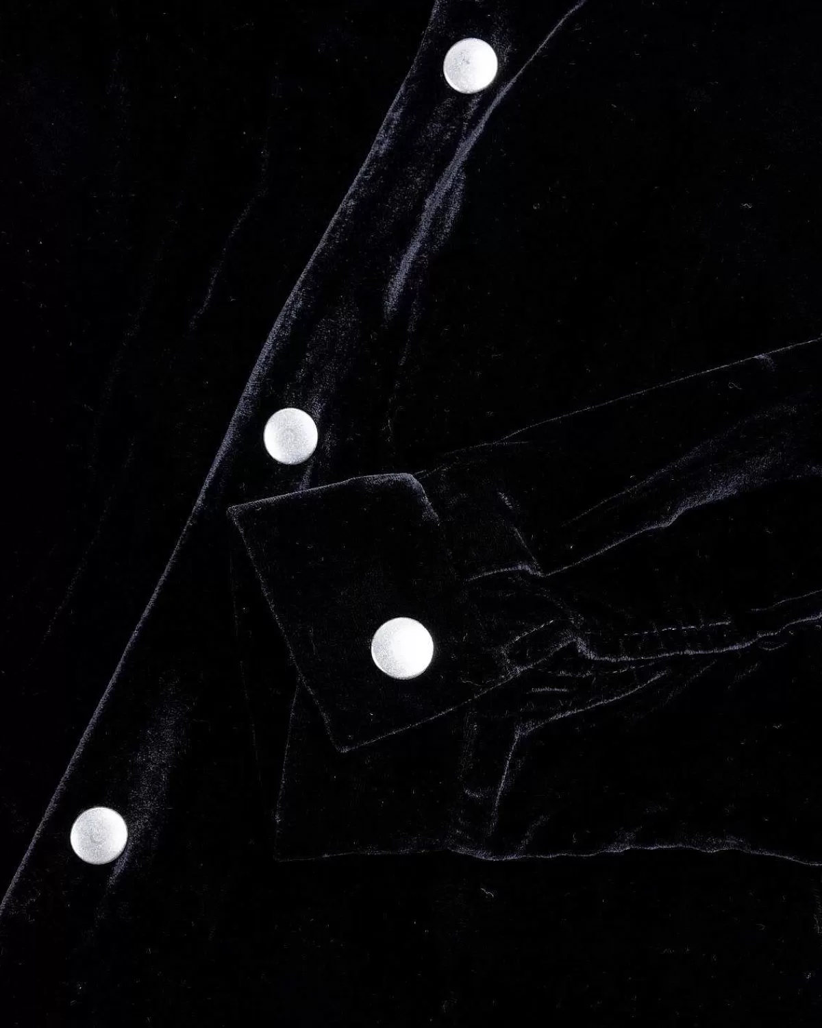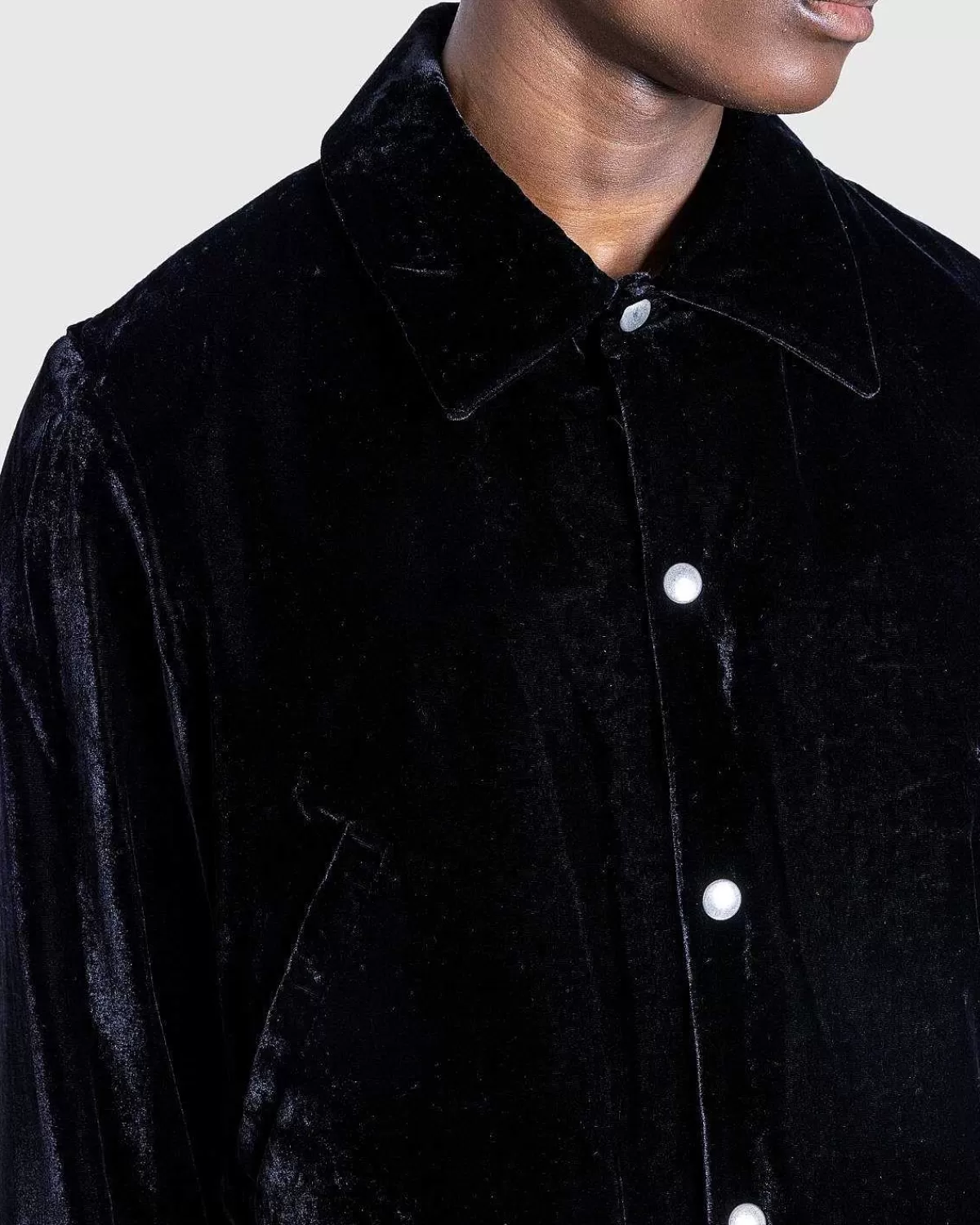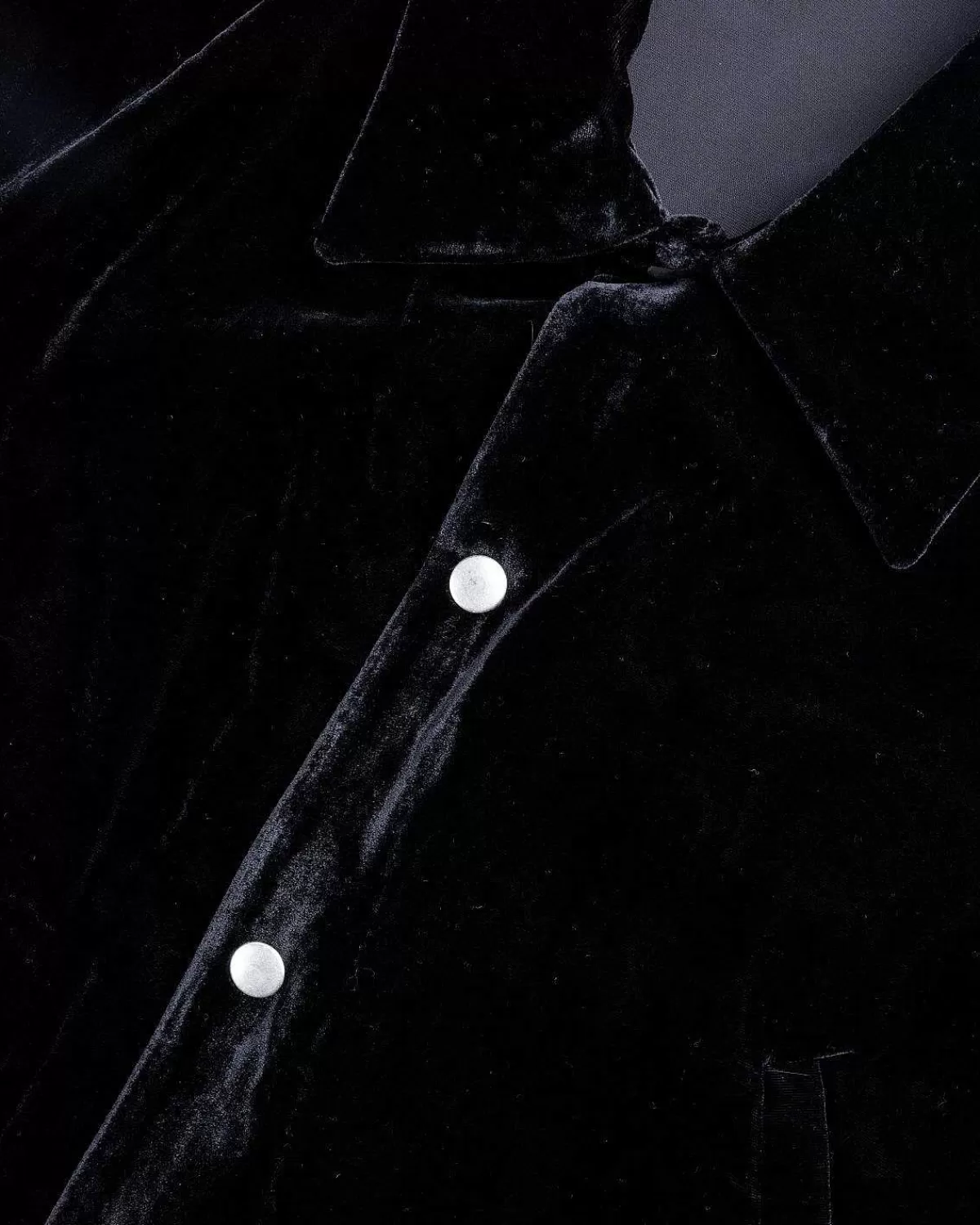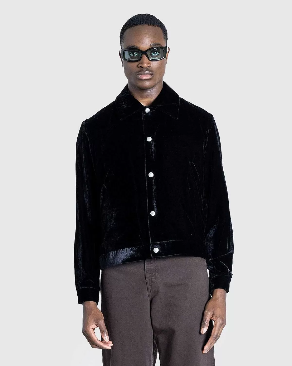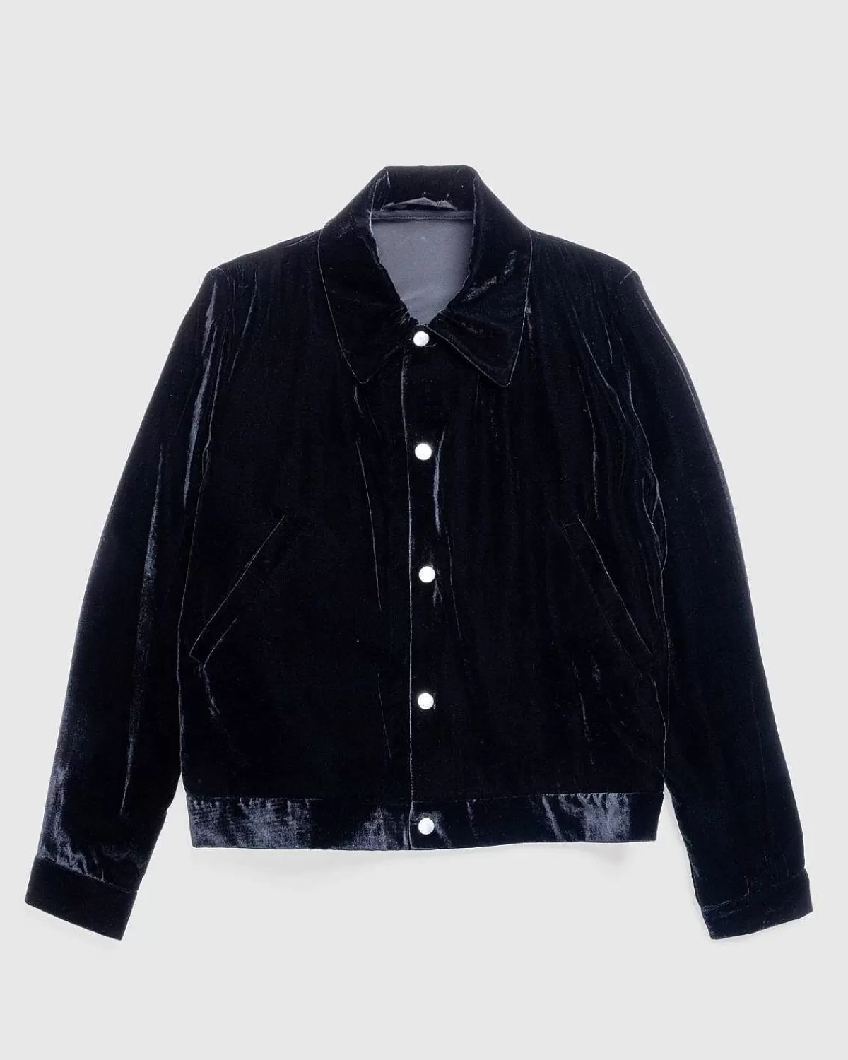 Enzo-Jakken Er Lavet Af En Plysviscose-Velourklud, Der Stammer Fra Italien. Skåret Til En Kort, Boxy Pasform, Overtøjsstilen Er Detaljeret Med Trykknapper I Metal Langs Midten Foran Og Bruges Også Ved Ærmerne. Skrå Håndlommer Findes På Ydersiden Af Tøjet, Med En Ekstra Lomme Implementeret På Indersiden.