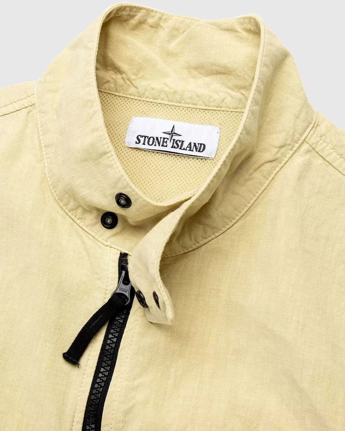 Nylon-Tc-Jakken Er En Letvægts Stone Island-Overtøjsstil Udført I En Blanding Af Nylon- Og Hørmaterialer. Den Kommer I Et Lysfarvet Beige Look, Med En To-Knaps Krave, To-Vejs Lynlåslukning Foran, Og Knapmanchetter Og Kantknapper. Håndlommer Er Indbygget På Forsiden Af Tøjet, Som Er Afsluttet Med Mærkets Signaturaftagelige Logomærke På Venstre Ærme.