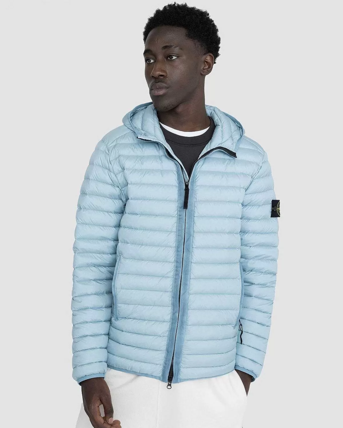 Overtøj>Stone Island Pakbar Genbrugsnylon Dunjakke Himmelbla