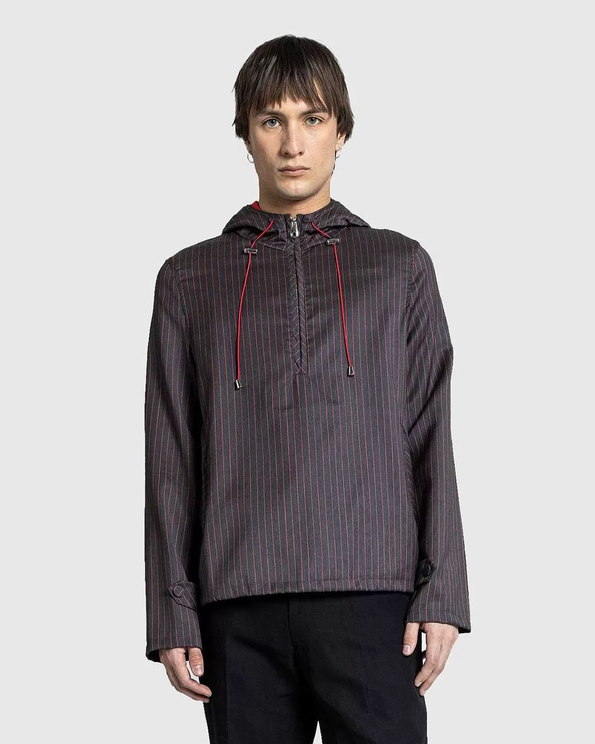 Alvin Pulloveren Ankommer Til Sæsonen I Et Stribet Look. Konstrueret Med En Virgin Uld- Og Silkeblanding På Ydersiden Og Foret Med Polyester. Beklædningsgenstanden Er Derefter Udstyret Med Halvlynlåslukning, Samt Træksnore I Hætten Og Forneden, Der Giver Mulighed For Mindre Justeringer Af Stylingen. Knappede Faner Er Påført Ærmerne For Yderligere Ændringer.