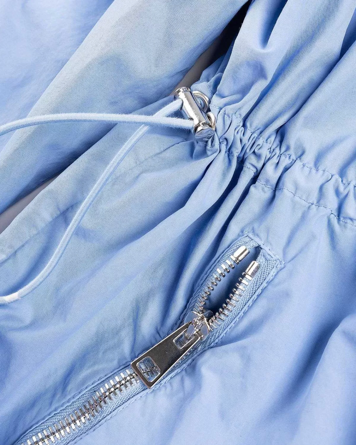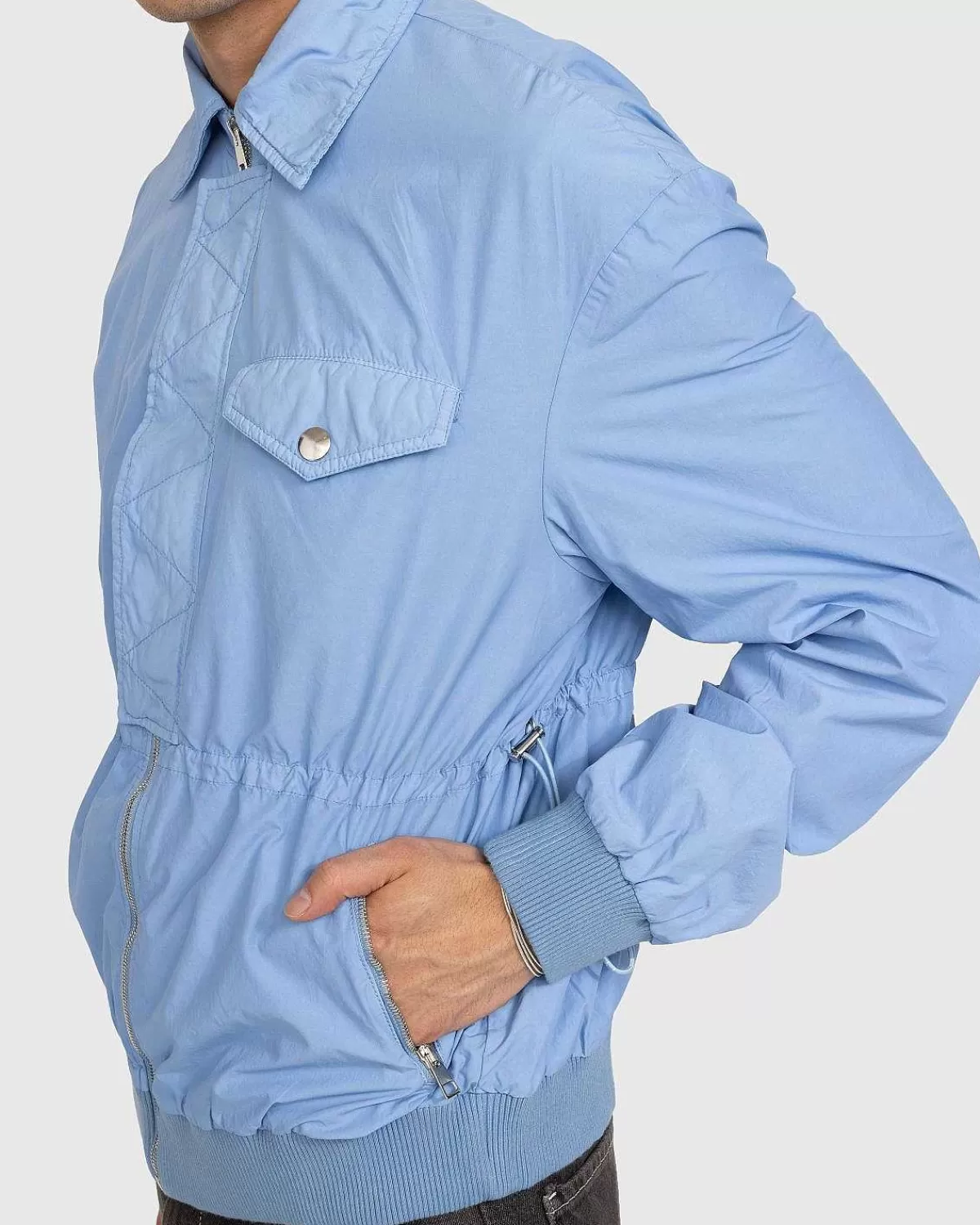 Denne Lette Bomberjakke Fra Winnie Er Lavet Af En Krøllet Nylon- Og Bomuldsblanding Taft. Den Ankommer I En Indbydende Blød Blå Farve, Udstyret Med Flere Lynlåslommer Til Sikker Transport Af Små Essentielle Ting. Yderligere Detaljer Omfatter En Spredt Krave, Lynlås Foran Med Trykknapper Og Ribkanter Ved Manchetterne Og Forneden.
