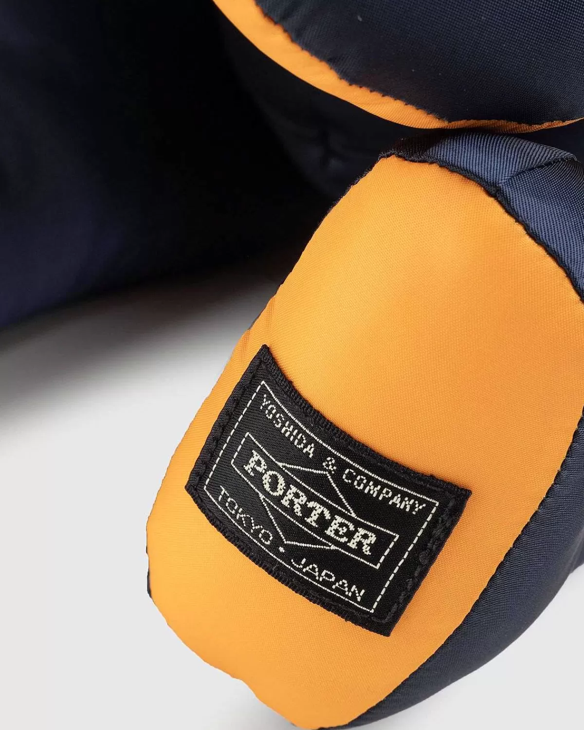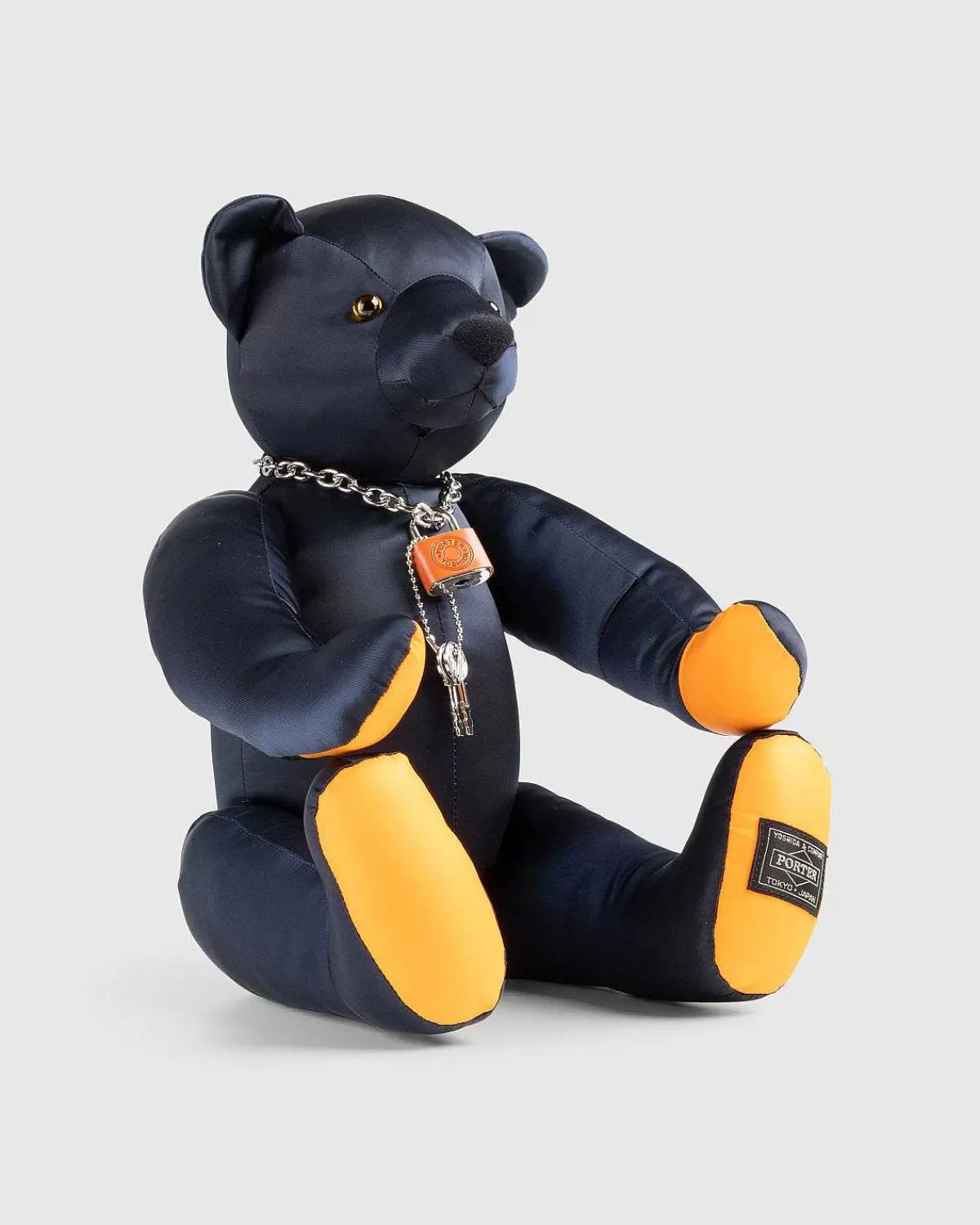 Lavet Til Minde Om Porter-Yoshida & Co.’S Tanker Iron Blue Colorway, Denne Sjove Grizzly Er Bygget Til At Holde. Håndlavet I Japan, Den Plysfigur Er Konstrueret Ved Hjælp Af Mærkets Tre-Lags Stof Og Har Antikke Glasøjne, Der Blev Lavet I Tyskland I Midten Af 1900-Tallet. Hovedet, Hænderne Og Fødderne Kan Alle Bevæge Sig Frit, Og Bjørnen Er Færdig Med Mærkets Vævede Plaster Ved Foden Sammen Med En Messingkæde Og Hængelås Rundt Om Halsbåndet.