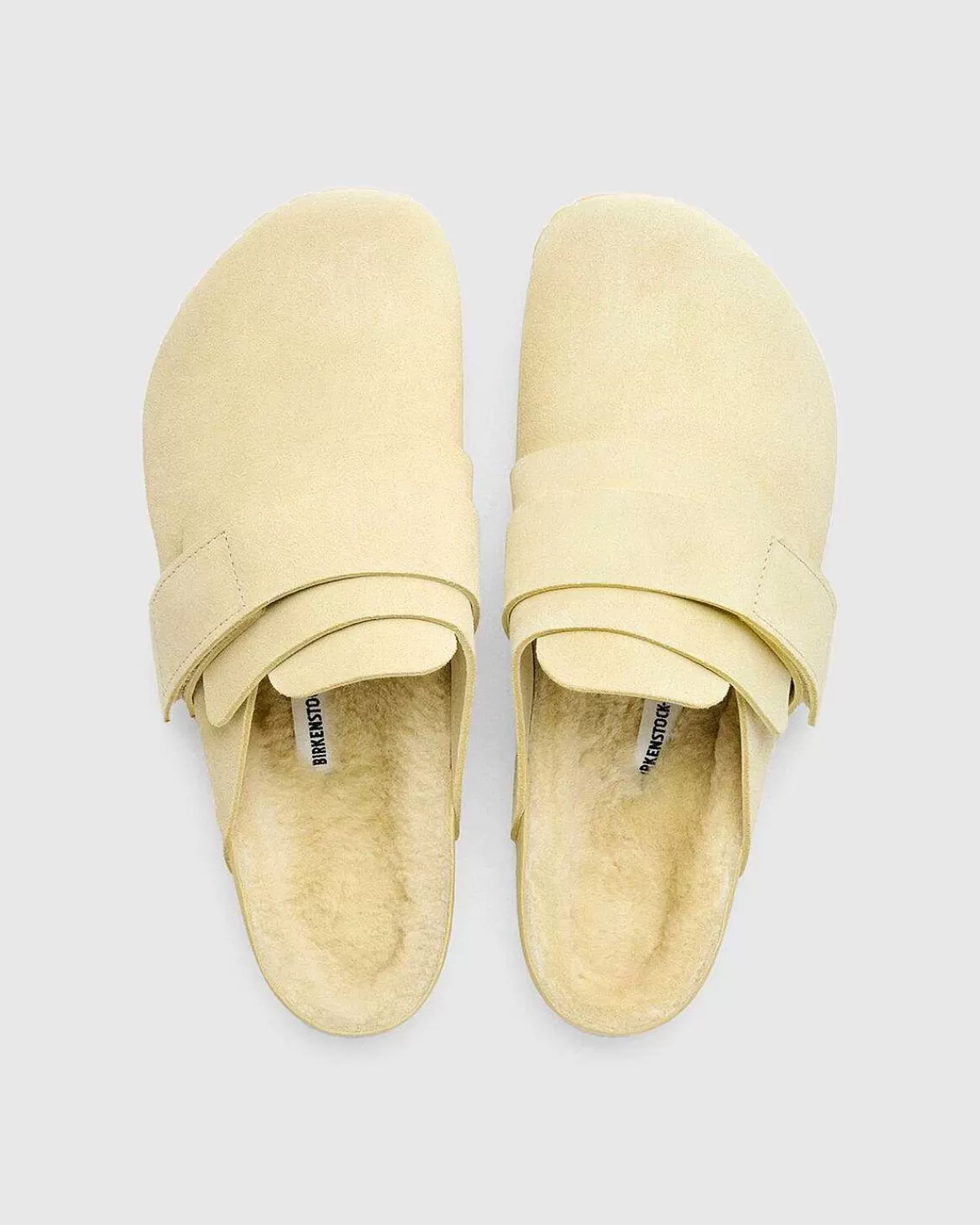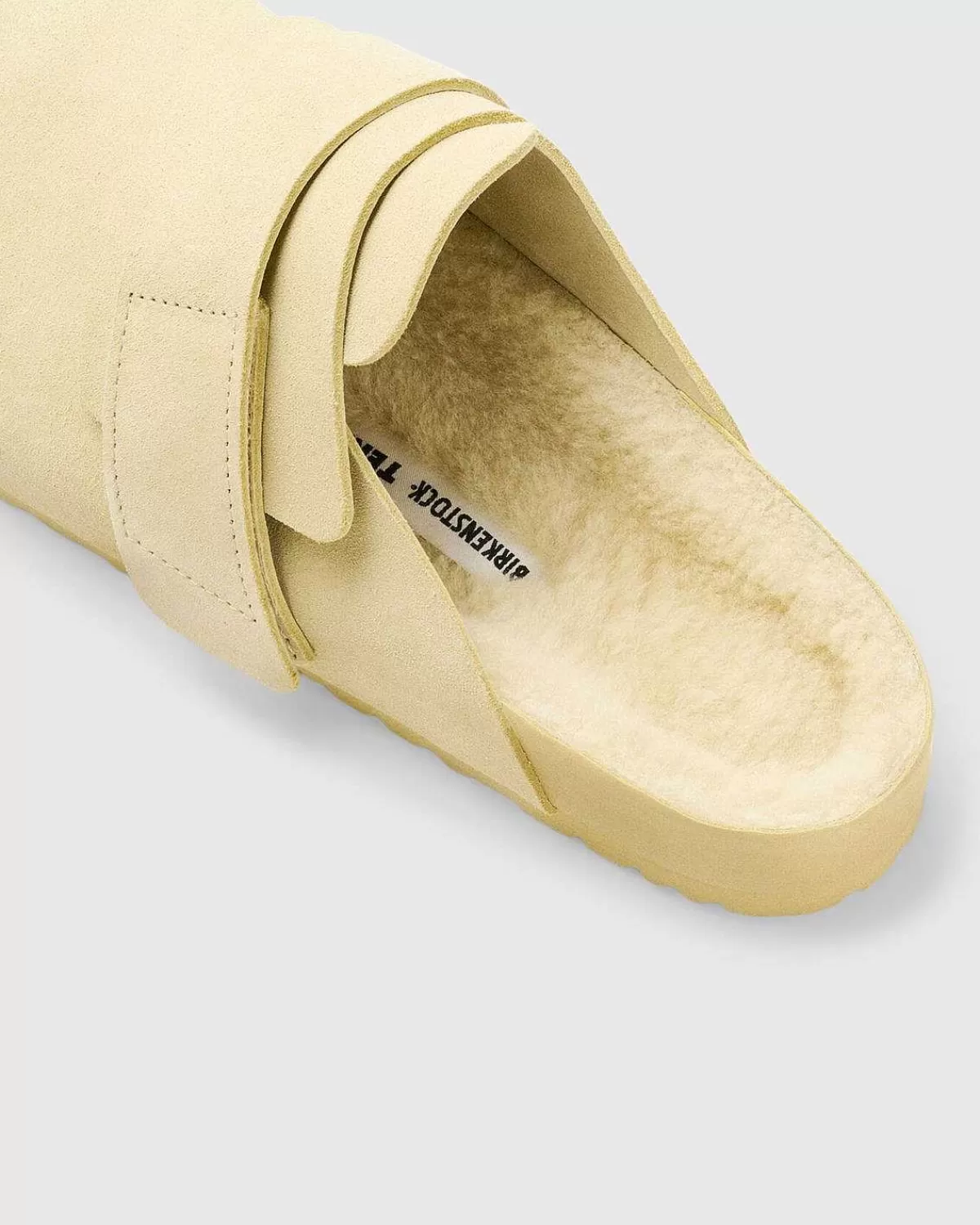 Til Duoens Første Samarbejde Går Birkenstock Og Tekla Sammen Om En Samling Af Klassiske Silhuetter I Subtile Og Mættede Farver. Nagoyaen Modtager En Hyggelig Opdatering, Detaljeret Med En Shearling-Foring Over Kork-Fodsengen Og Et Glat Nappa-Læder-Hælbetræk. Cazador Ruskind Dækker Det Ydre I En Lysegul Nuance, Mens Tonale Håndsyede Detaljer Fuldender Looket.