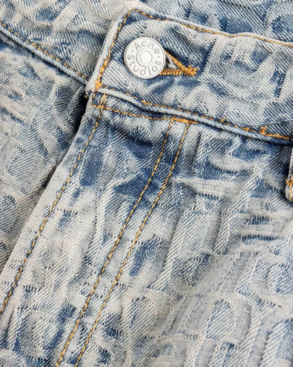 Acne Studios Løfter Den Traditionelle Jean Short Og Opdaterer Stilen Med En Legende Monogram-Jacquard På All-Over-Mode. Parret Er Skåret Til En Løs Pasform Med En Midtalje Og Et Faldet Skridt Under Knælængden Fra Non-Stretch Denim. Den Har Klassisk Fem-Lommers Konstruktion, En Knapgylp, Bælteløkker Og Et Læderlogomærke På Bagsiden Af Taljen.