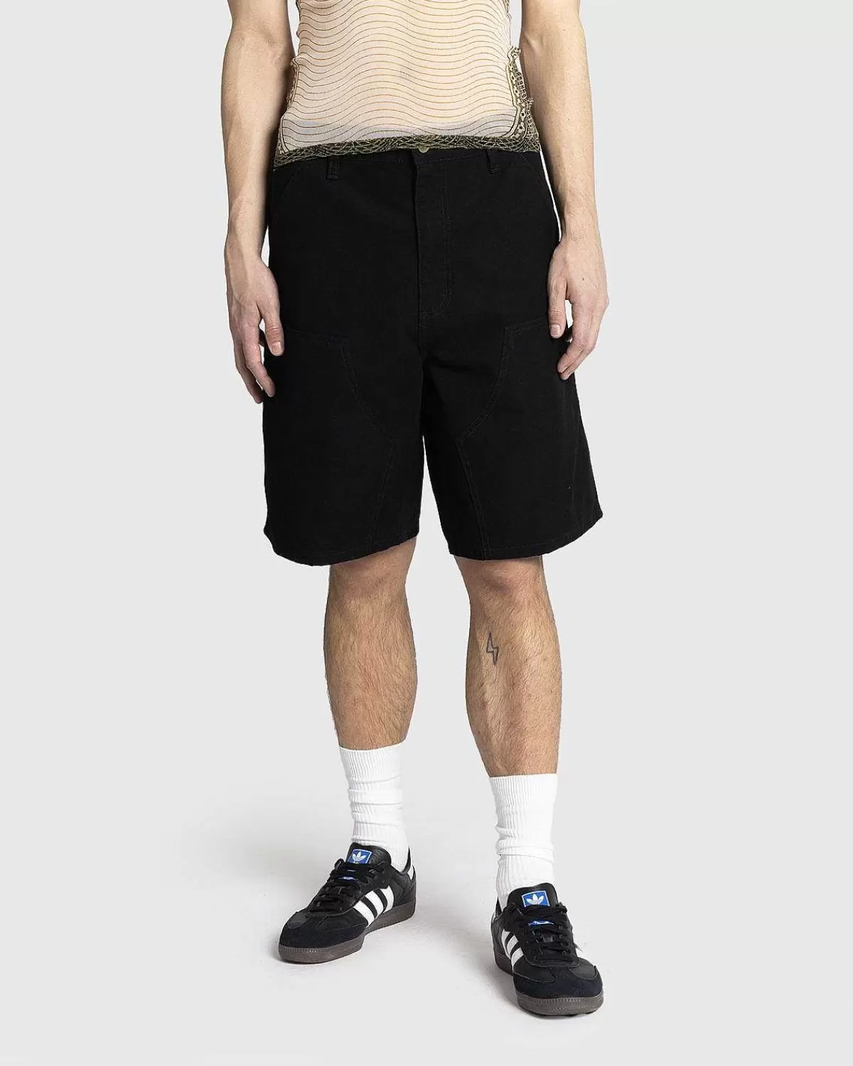 Inspireret Af Den Klassiske Arbejdsbuksersilhuet Har Den Dobbelte Knækort Med Dobbeltlagsknæ Og Tredobbelt Syning Overalt For Ekstra Forstærkning. Dette Særlige Par Er Produceret I Mellemvægts Bomuldslærred Og Skåret Til En Afslappet Pasform. Stilen Har Lignende Utilitaristiske Detaljer Som Den Dobbelte Knæbuks, Inklusive Værktøjslommer Og En Hammerløkke, Med En Vævet Logoetiket Indbygget På Højre Baglomme For At Fuldende Designet.