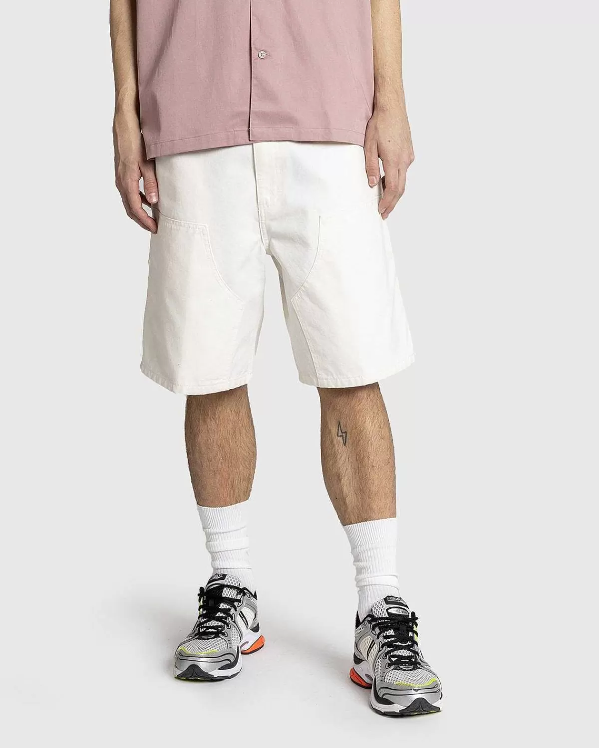 Inspireret Af Den Klassiske Arbejdsbuksersilhuet Har Den Dobbelte Knækort Med Dobbeltlagsknæ Og Tredobbelt Syning Overalt For Ekstra Forstærkning. Dette Særlige Par Er Produceret I Mellemvægts Bomuldslærred Og Skåret Til En Afslappet Pasform. Stilen Har Lignende Utilitaristiske Detaljer Som Den Dobbelte Knæbuks, Inklusive Værktøjslommer Og En Hammerløkke, Med En Vævet Logoetiket Indbygget På Højre Baglomme For At Fuldende Designet.