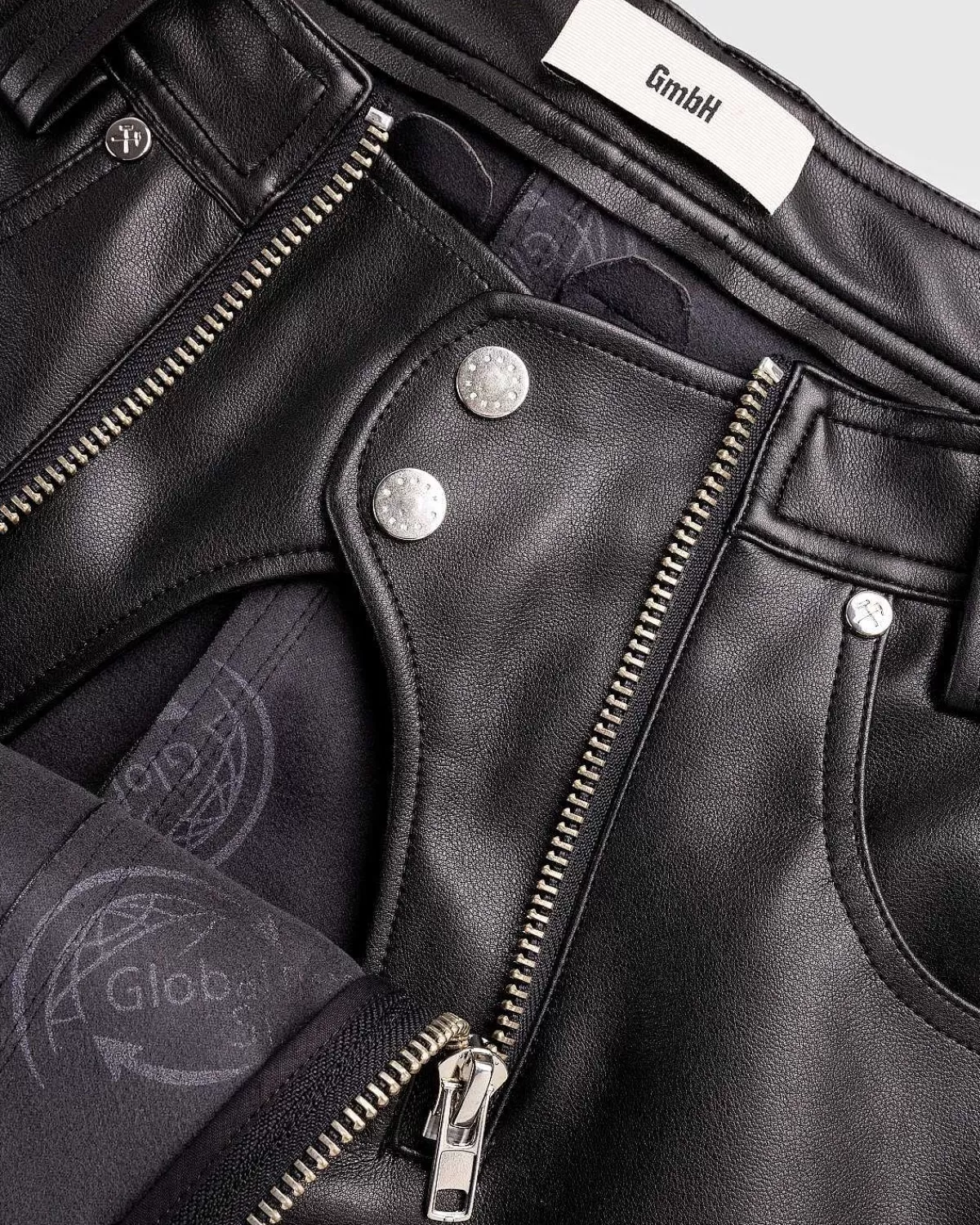 Zoran-Shortsene Er Kendetegnet Ved Dobbelt Lynlås Foran, En Gmbh-Signatur Implementeret På Forskellige Understile. Dette Særlige Par Ankommer I En Skjult Sort Farvevariant, Produceret Af Polyester Og Polyurethan Og Med Klassisk Fem-Lommet Styling. De Dobbelte Lynlåse Skjuler Knaplukning Nedenunder, Da Shortsene Er Udstyret Med Bælteløkker I Taljen Og Mærket Med Et Lædermærke På Bagsiden.