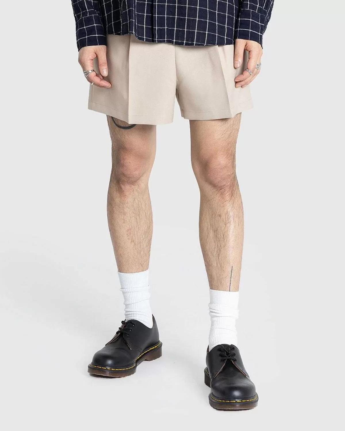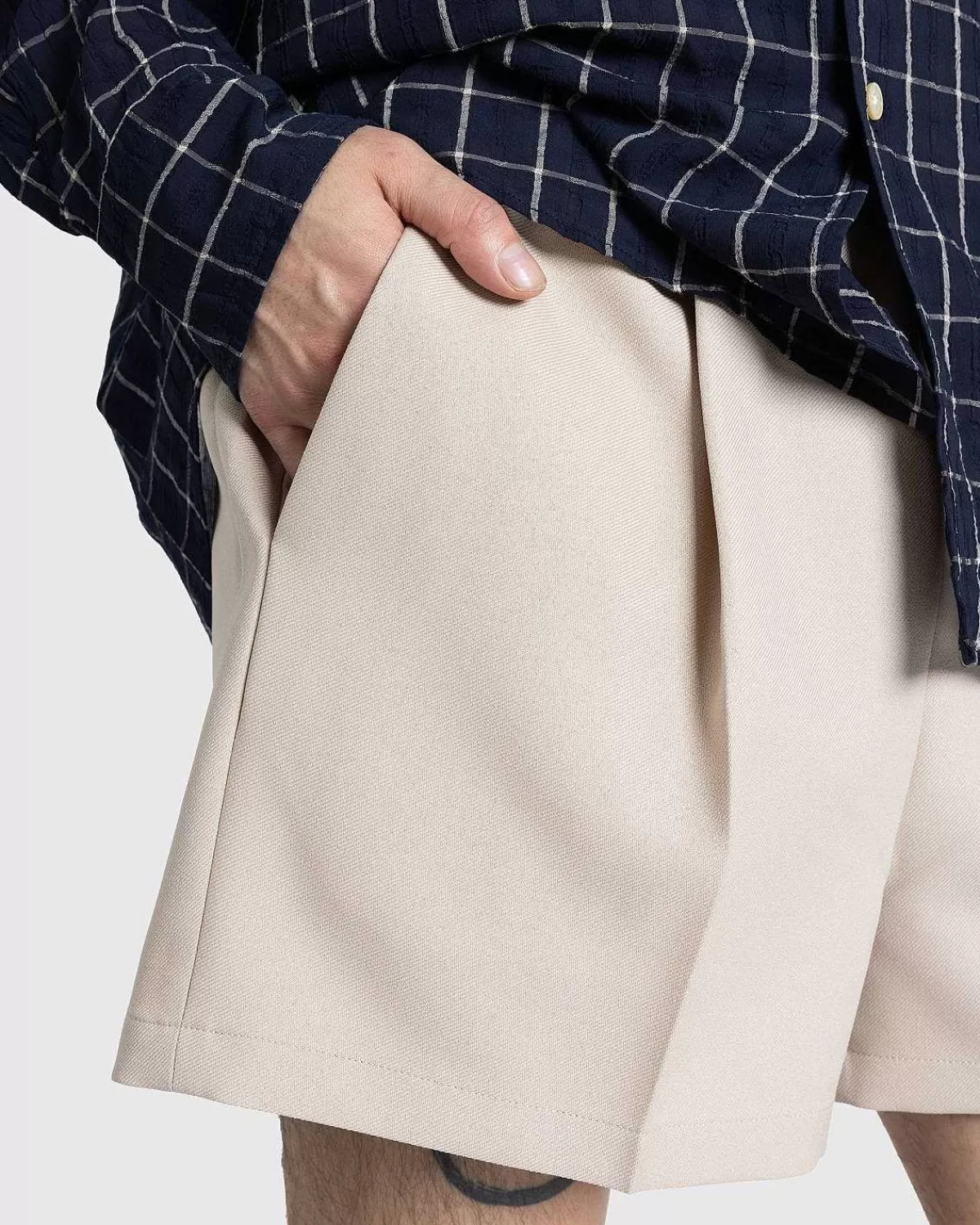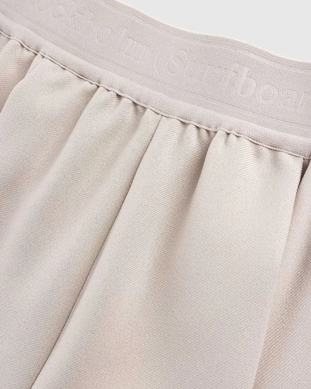 Stockholm Surfboard Club Leverer En Kort Variation Af Sin Karakteristiske Elaine-Stil. Når De Ankommer I En Alsidig Beige Farvevariant, Er Parret Lavet Af 100 % Polyester Og Skåret Til En Afslappet Pasform. En Elastisk Linning Sikrer Overlegen Komfort, Mens Trykfolder Tilføjer Et Mere Formelt Touch. Lommer Er Så Indbygget I Siderne Og Bagsiden Af Silhuetten, Som Er Subtilt Mærket Med Logodetaljer I Taljen.