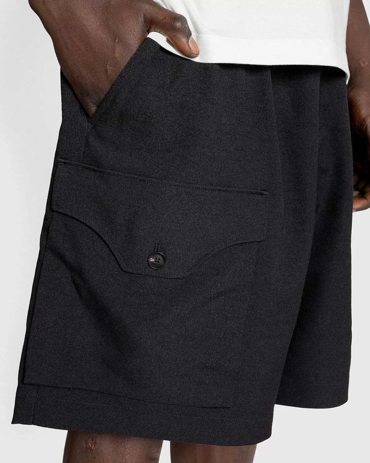 En Afslappet Stil, Sportsfokuseret Stil, Disse Shorts Er Konstrueret Udelukkende Af Genanvendt Twill Og Ankommer I En Helt Sort Nuance. Shortsene Er Detaljerede Med Masser Af Opbevaringsplads Og Har En Stor Lappelomme På Forsiden Samt Knap-Ned Lommer På Bagsiden For At Holde Dine Ejendele Sikre. En Elastisk Linning Giver Mulighed For En Nem Pasform, Mens Det Integrerede Bælte Afslutter Det Utilitaristiske Design.