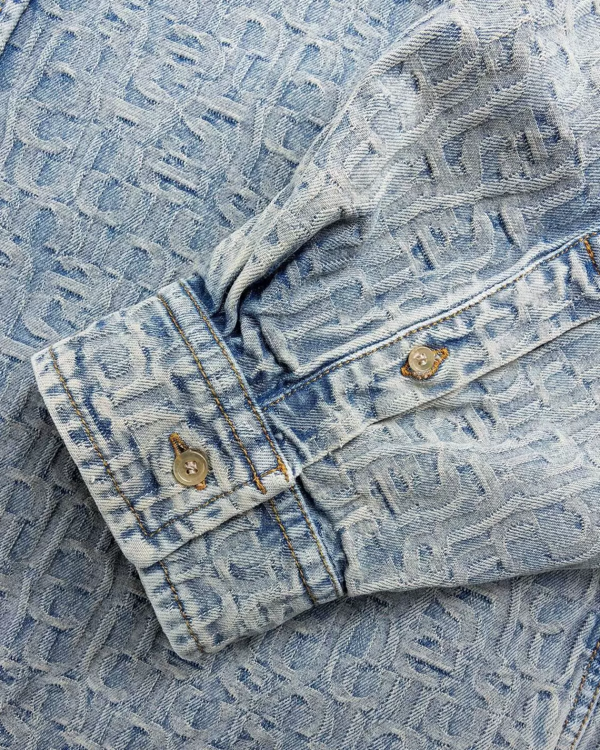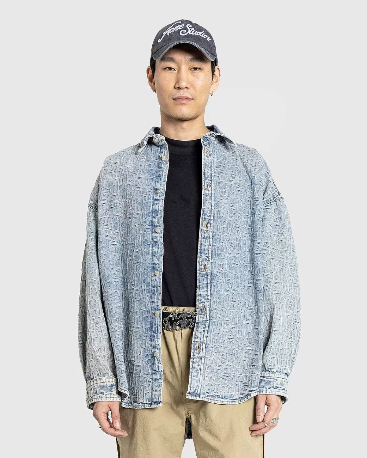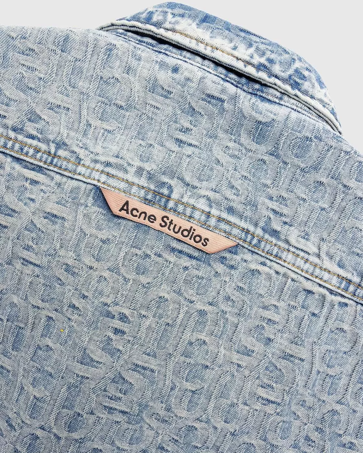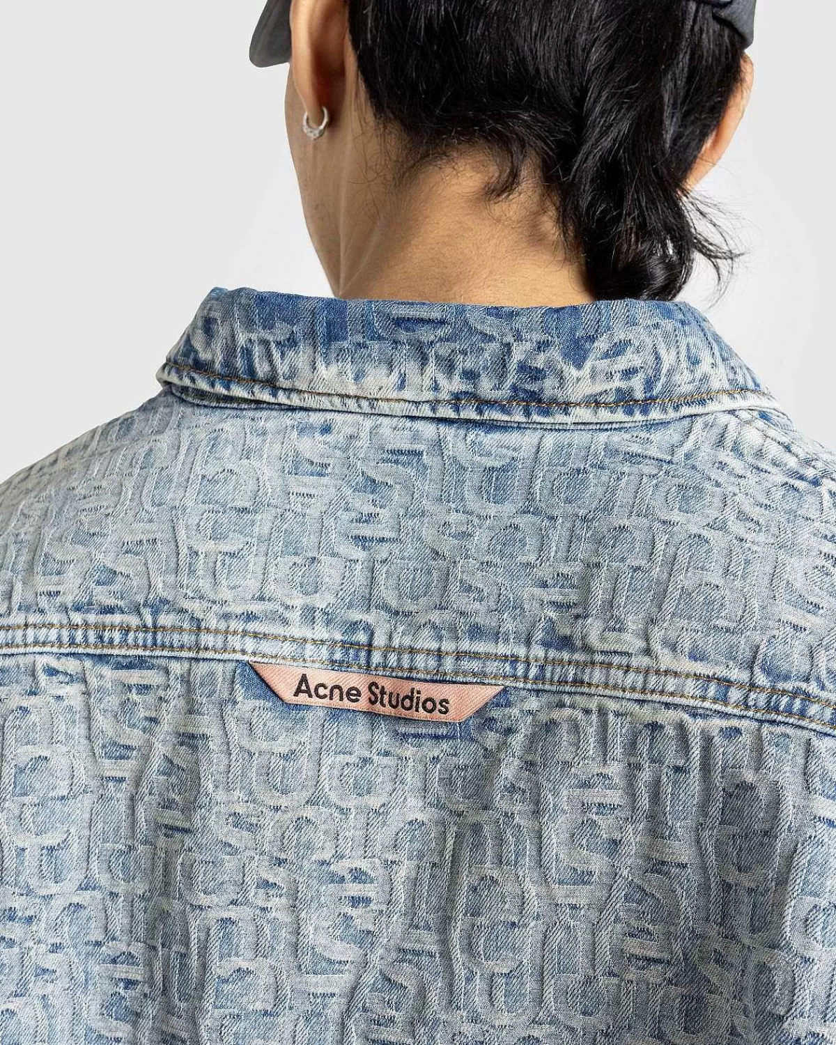 En Overdådig Denimmulighed, Denne Acne Studios-Stil Viser En All-Over Monogram Jacquard. Skjorten Er Konstrueret Af 100% Bomuld Og Skåret Til En Afslappet Pasform Under Hoften I Længden. Den Har En Klassisk Skjortekrave, Knaplukning Foran Og Knapmanchetter. Et Lille Acne Studios-Logomærke Er Indbygget På Bagsiden Af Tøjet For At Fuldende Designet.