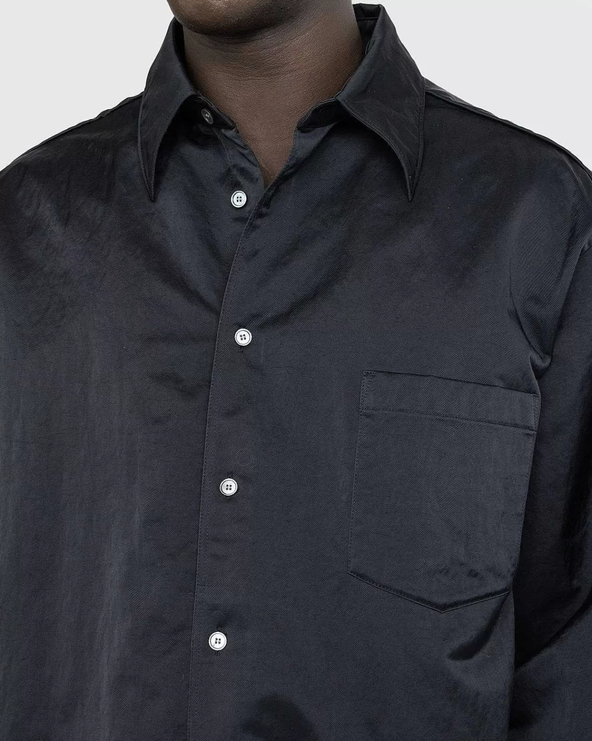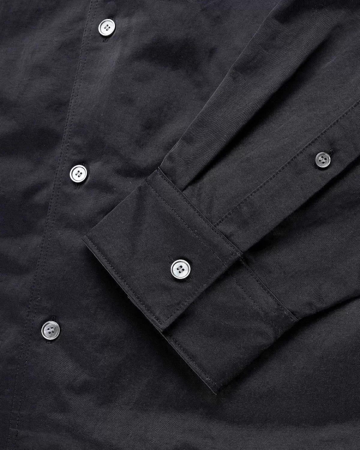 Denne Afslappede Overtrøje Fra Jil Sander Ankommer Til Sæsonen I En Snigende Sort Farve. Den Er Lavet Af Teknisk Tyk Satin Lavet Af Nylon Med En Vasket Finish. Detaljer Inkluderer En Spidskrave, Synlig Knaplomme, Knapmanchetter Og Lommer Indbygget På Venstre Bryst Og Sider.