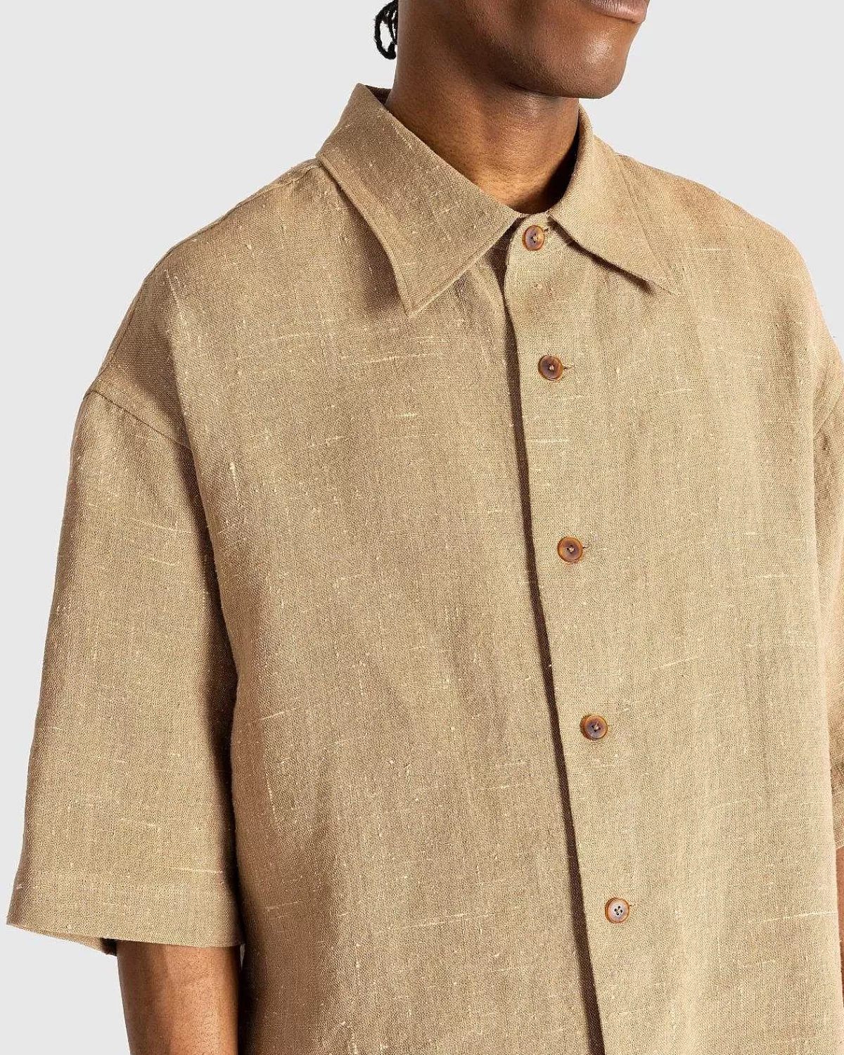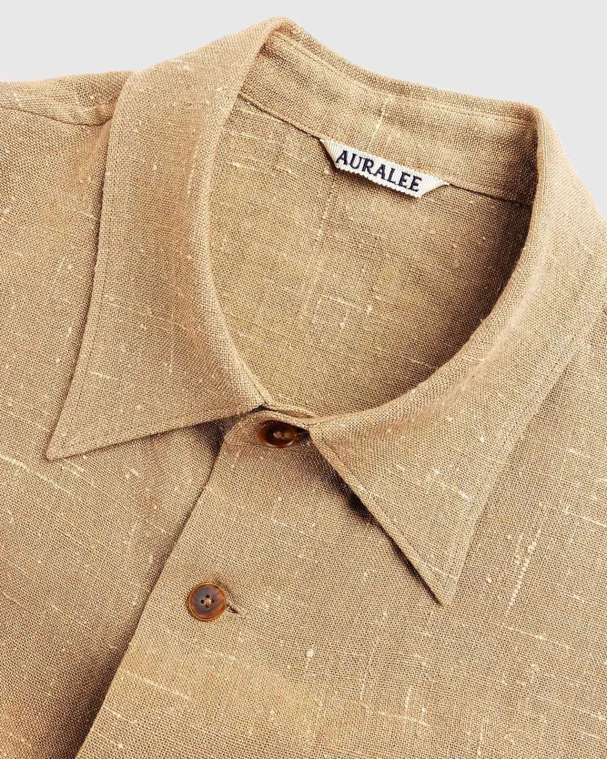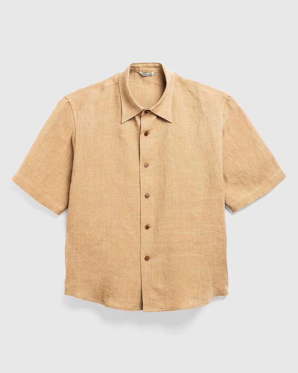 Skjorter>Auralee Linned Silke Tweed Halvaermet Skjorte Brun