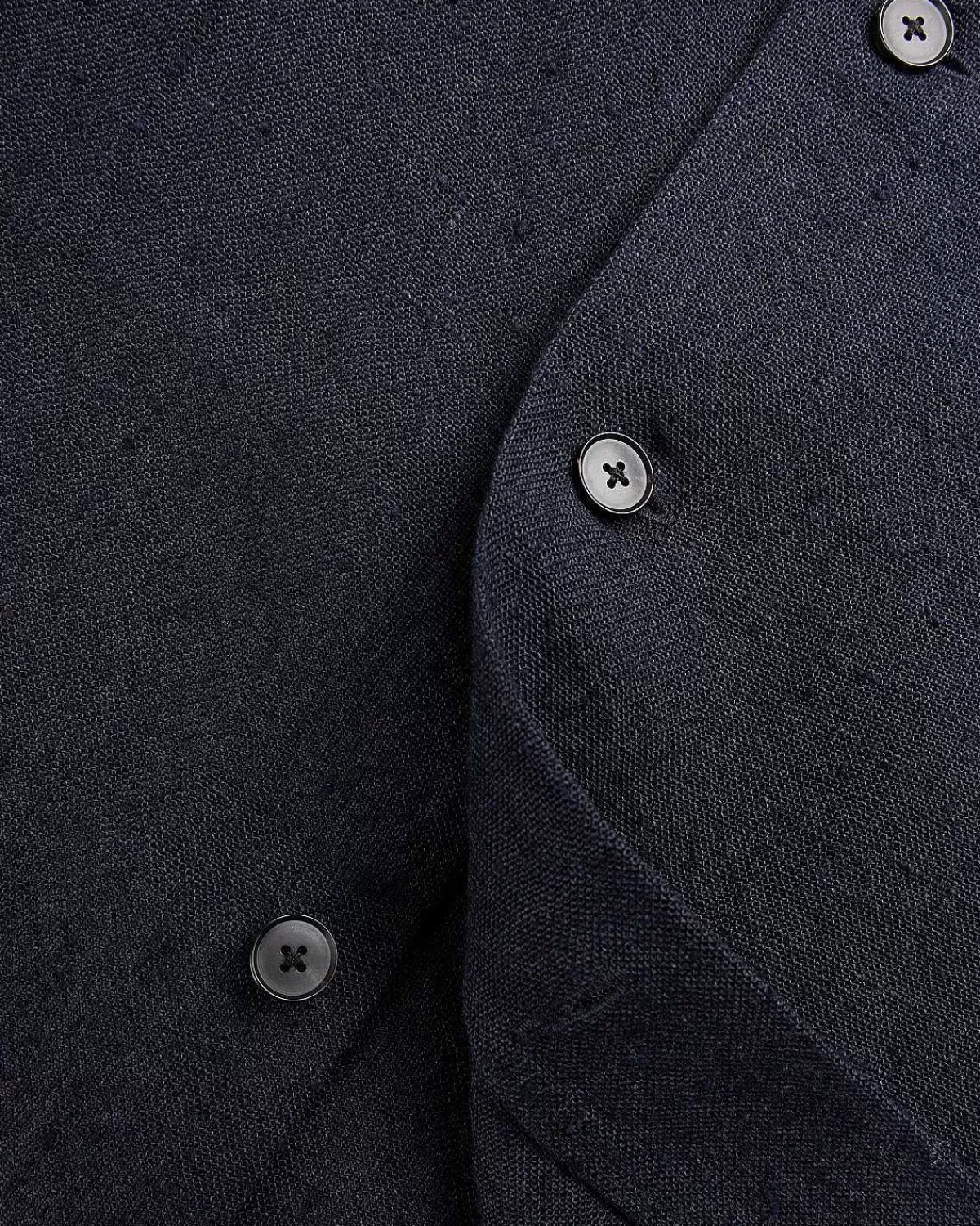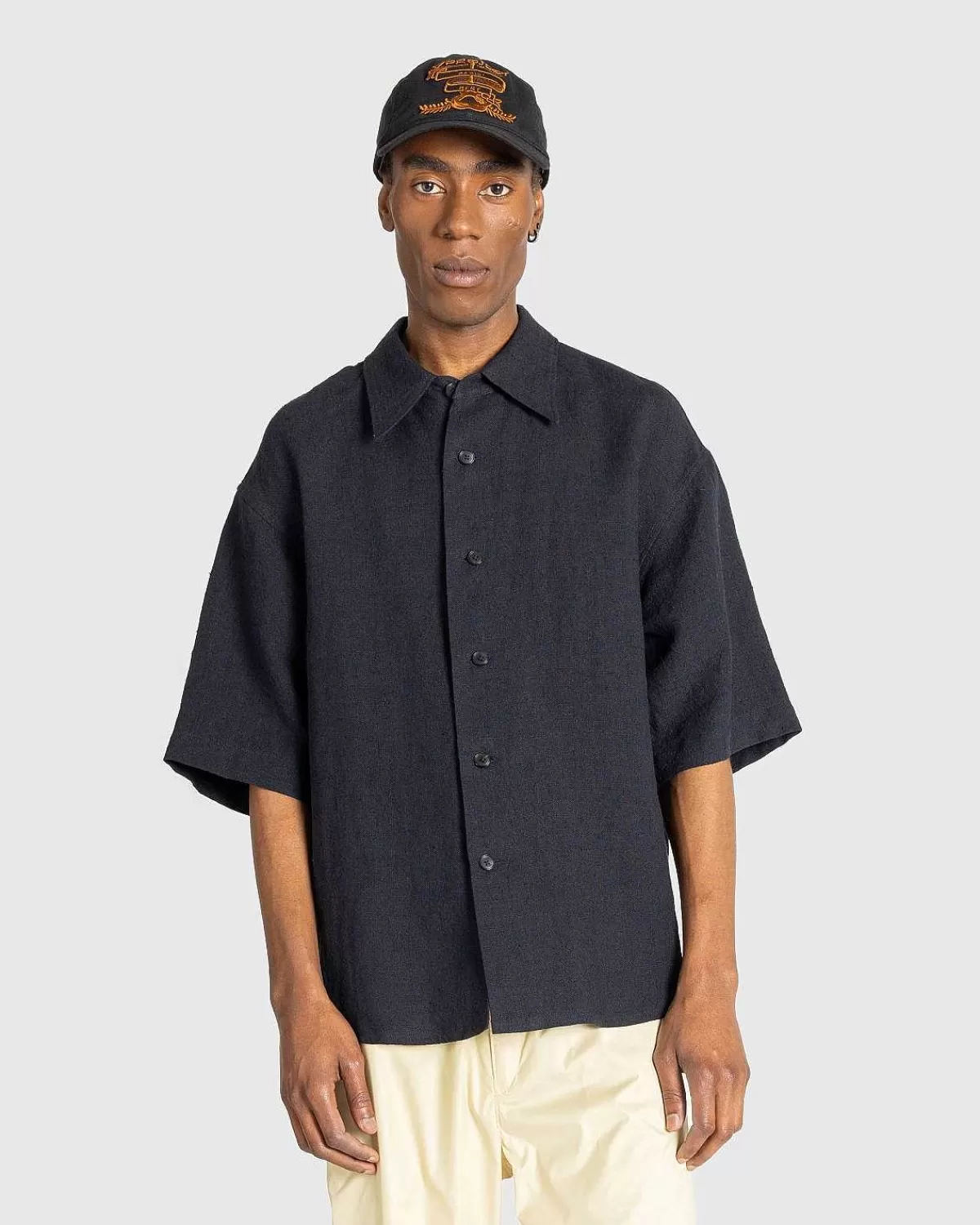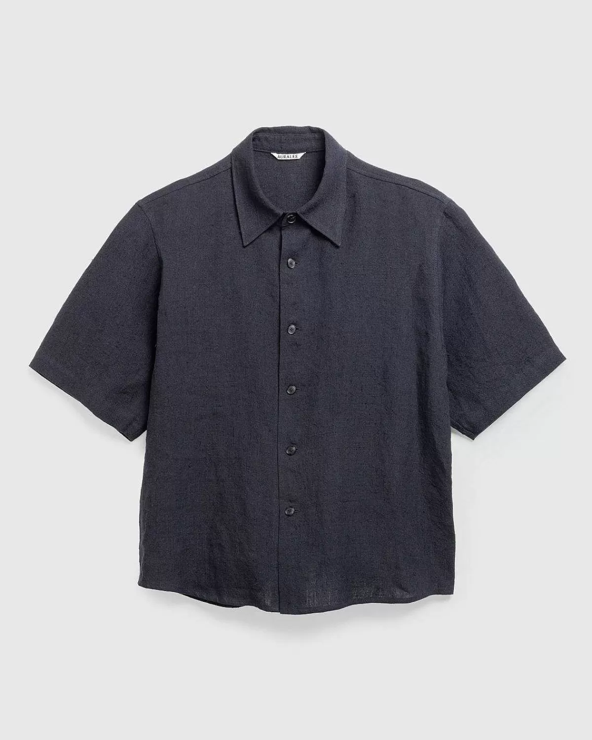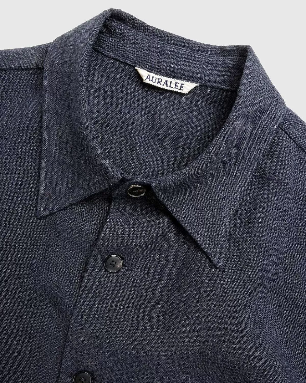 Skjorter>Auralee Linned Silke Tweed Halvaermet Skjorte Mork Navy