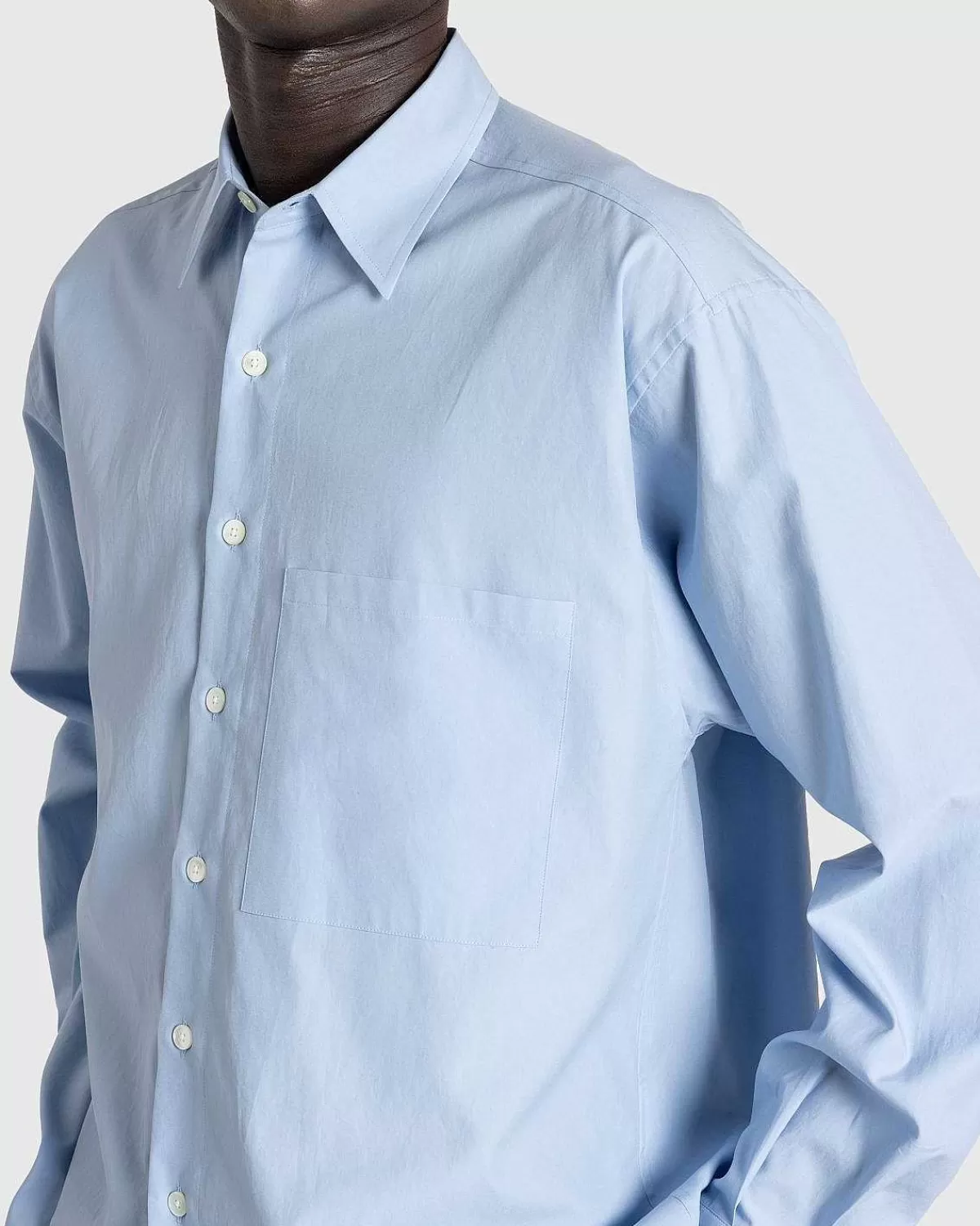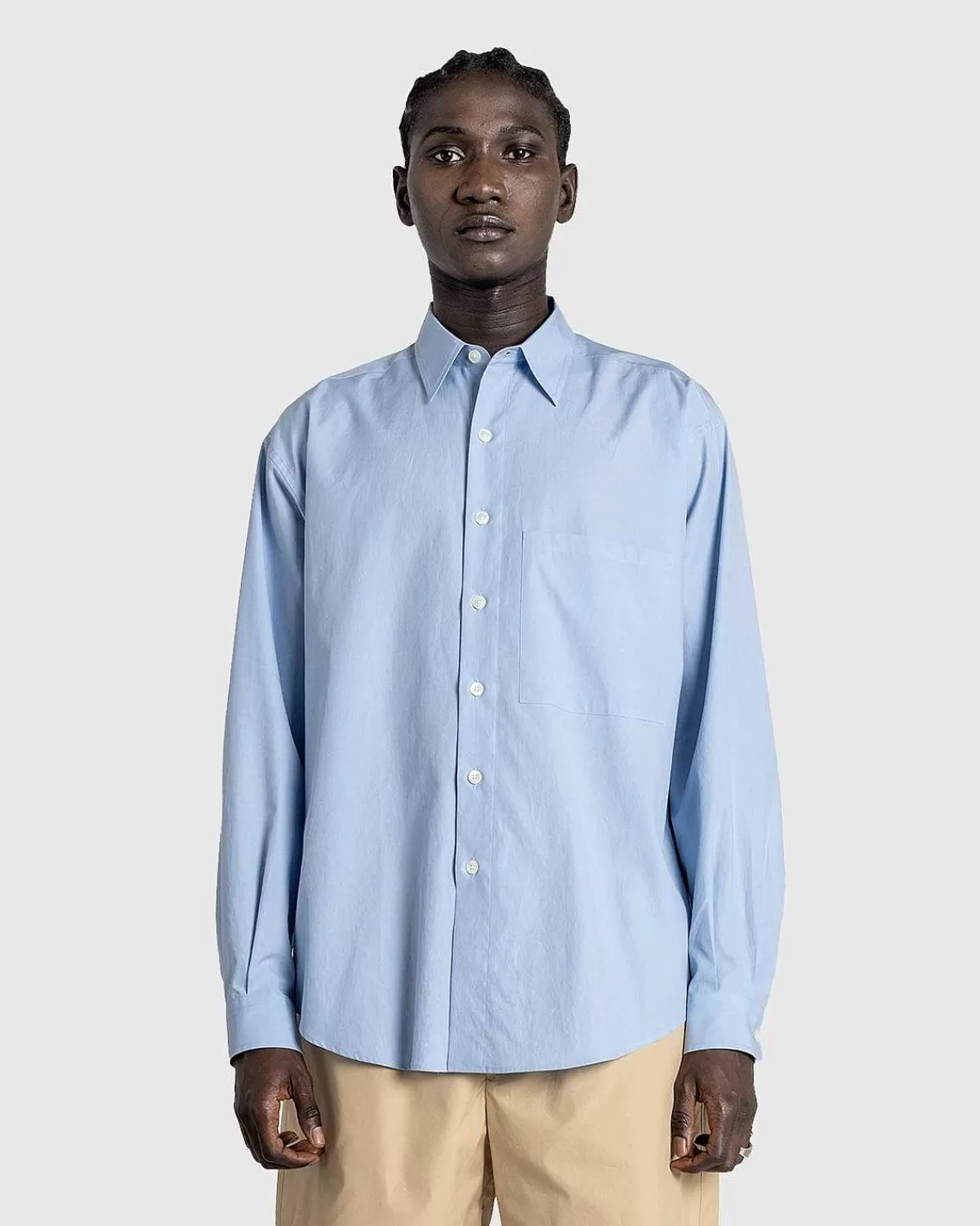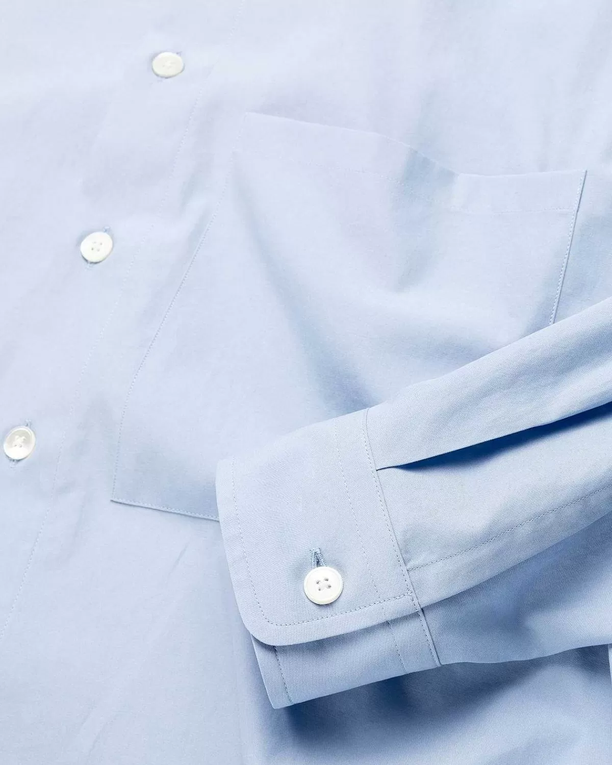 Med Denne Langærmede Knap-Ned Fremviser Auralee En Twill, Der Er Lavet Ved At Spinde Ultralange Egyptiske Finker Bomuld Til Et Højt Antal Og Derefter Væve Det Til En Høj Tæthed. Når Det Er Hærdet, Bliver Materialet Slået Og Vasket Gentagne Gange For At Opnå En Betydelig Blød Tekstur. Den Indviklede Proces Er Afgørende I Fremstillingen Af Denne Babyblå Knap-Ned, Der Igen Er Kendetegnet Ved Dens Silkebløde Fornemmelse, Blide Glans Og Drapering.