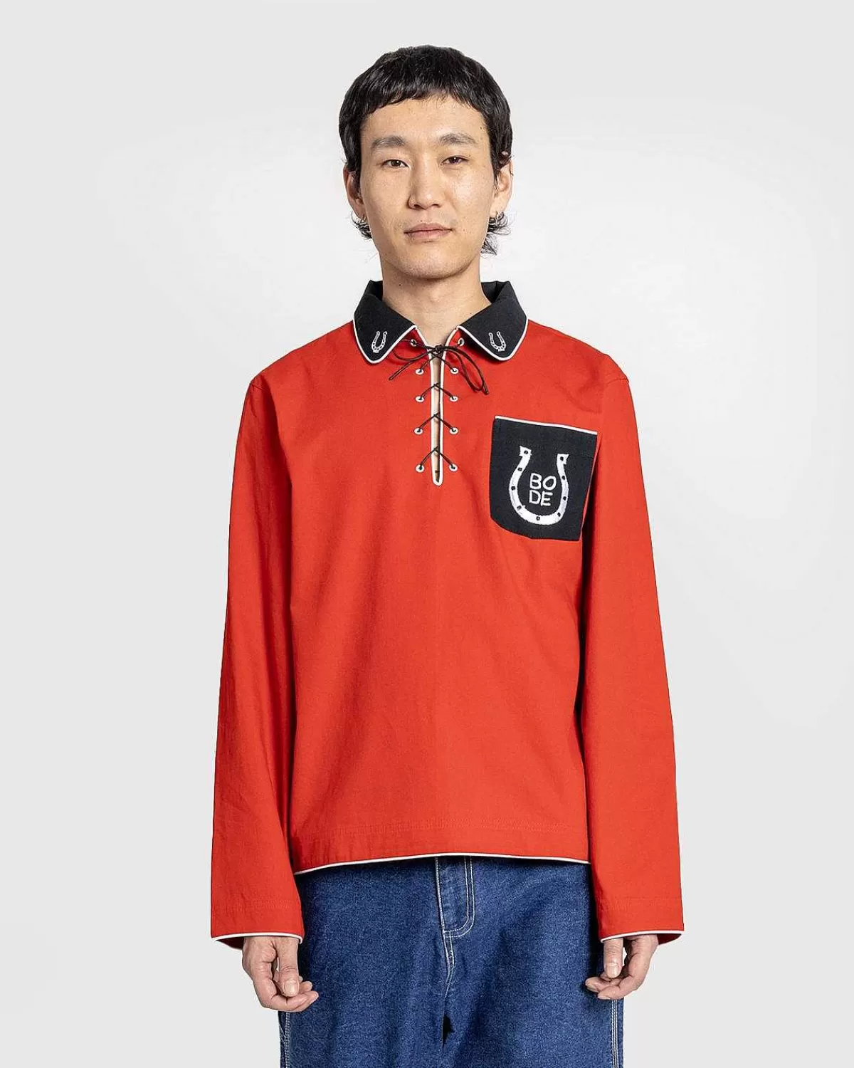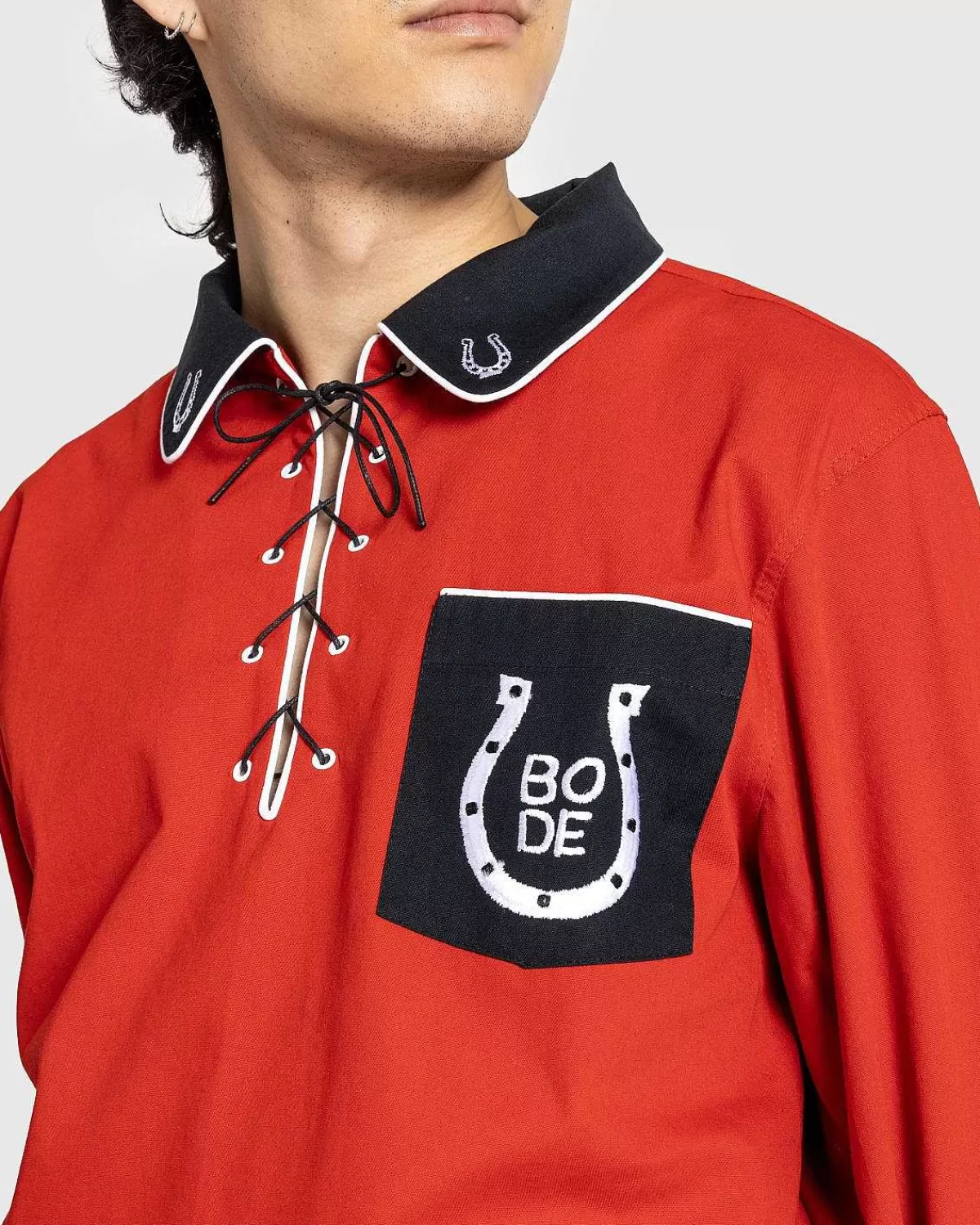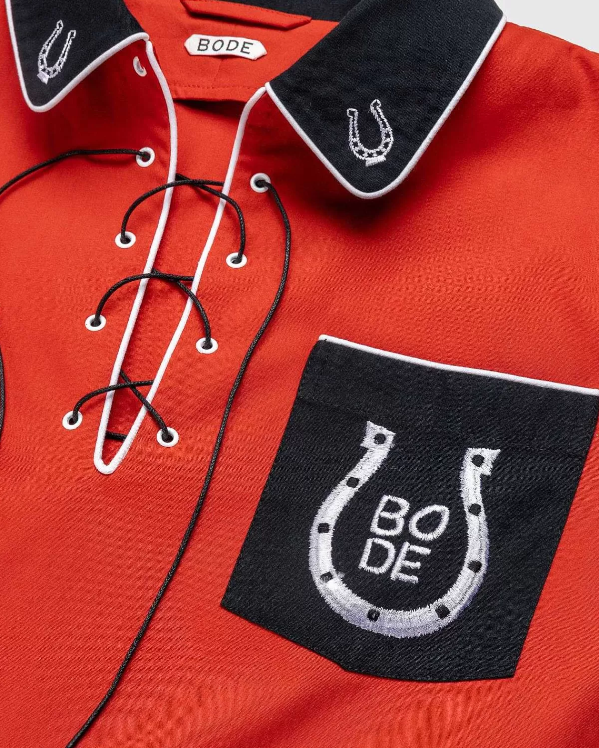 Denne Iøjnefaldende Bode-Top Henter Inspiration Fra En Vestlig Skjorte Med Snørebånd Omkring 1950’Erne, Da Mærket Gengav Den Kontrasterende Krave Og De Broderede Hestesko Fra Originalen, Alt Sammen Med “Bode” I Designet. Fremstillet I Indien Af 100 % Bomuld, Beklædningsgenstanden Er Trimmet Med Hvide Piping Og Har En Halsudskæring.