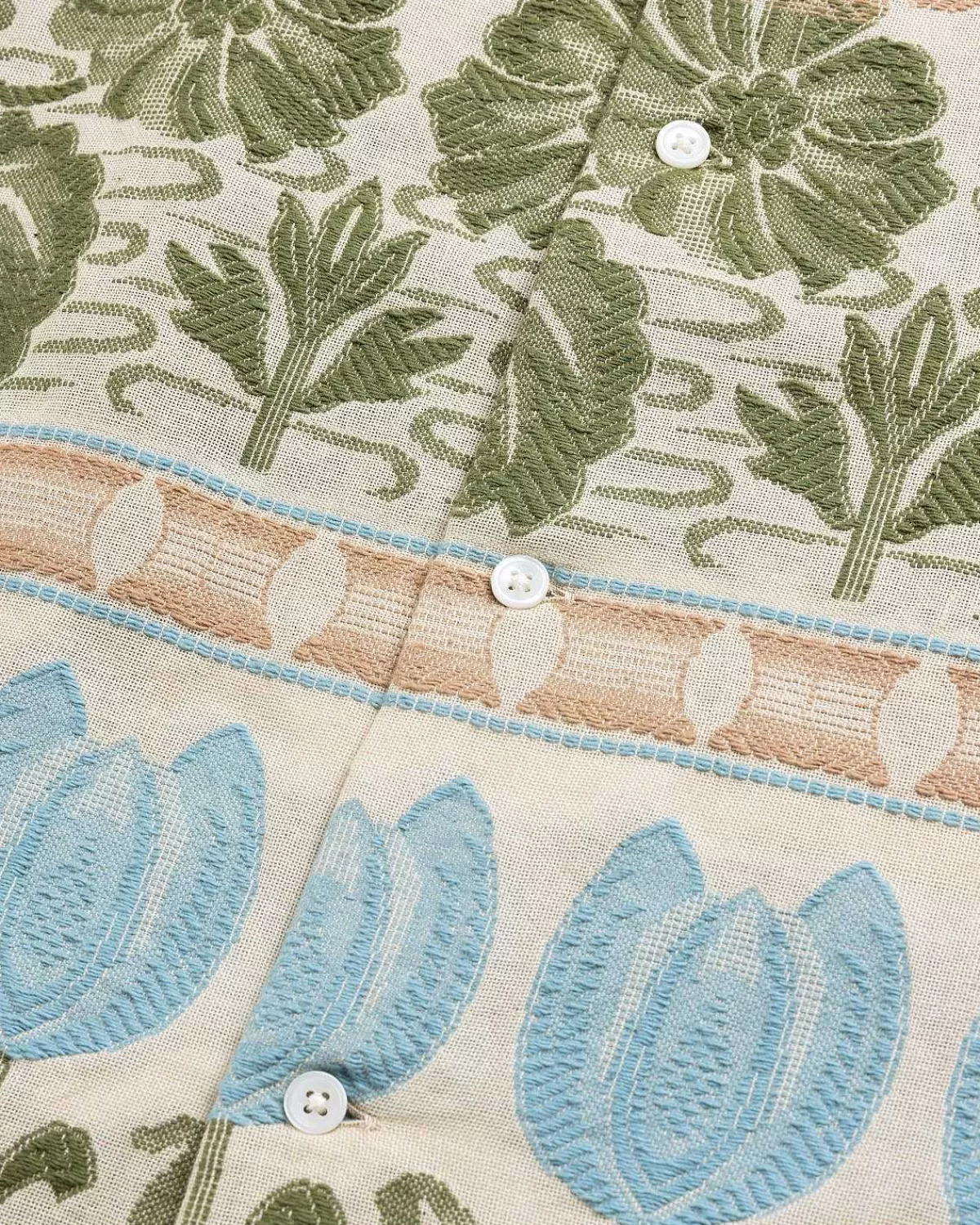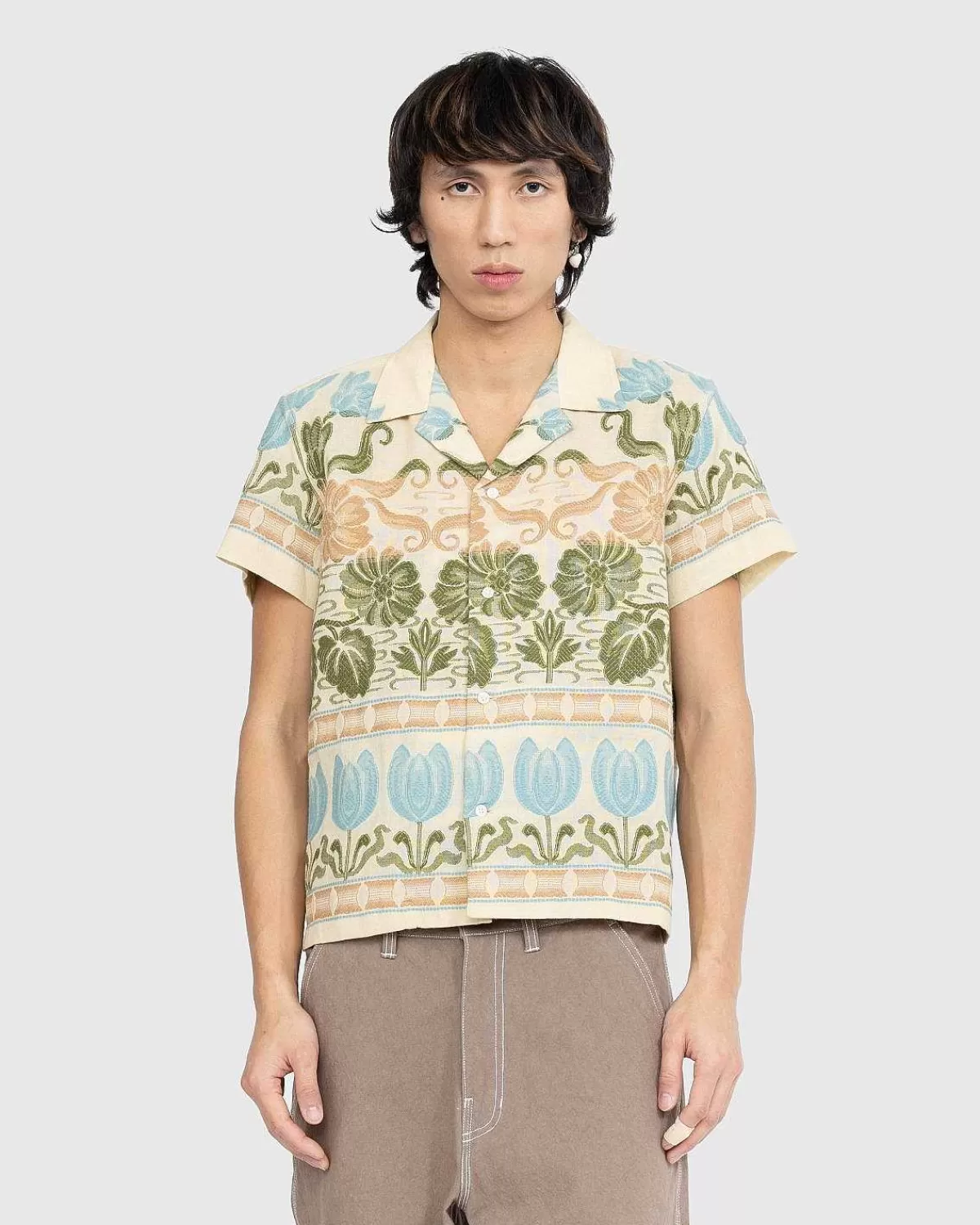 Med Inspiration Fra Midcentury Damask Yardage Reproducerede Bode Dette Særlige Stof For At Skabe Den Helt Nye Tulipa-Skjorte. Toppen I Feriestil Er Lavet I Indien Af Bomuld Og Fremviser Et Farverigt Motiv. Skåret Til En Boxy Pasform, Den Kortærmede Skjorte Har En Spredt Krave, Knaplukning Foran Og En Lige Kant.