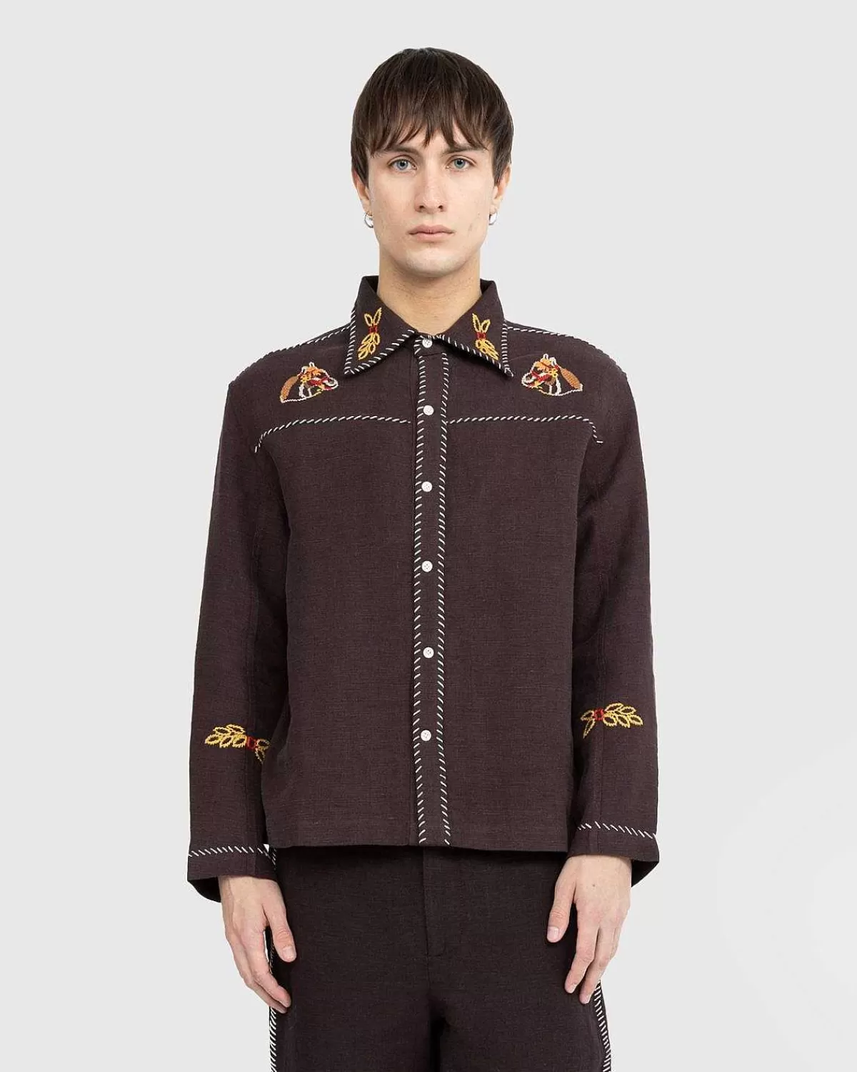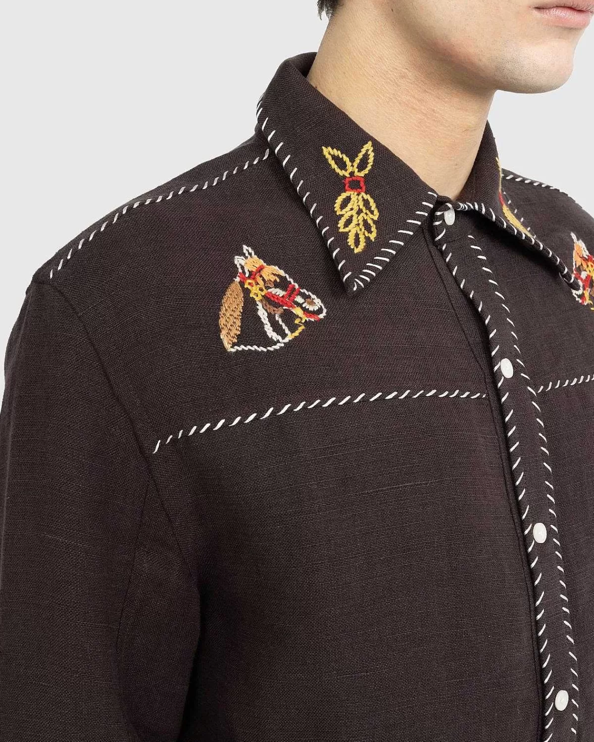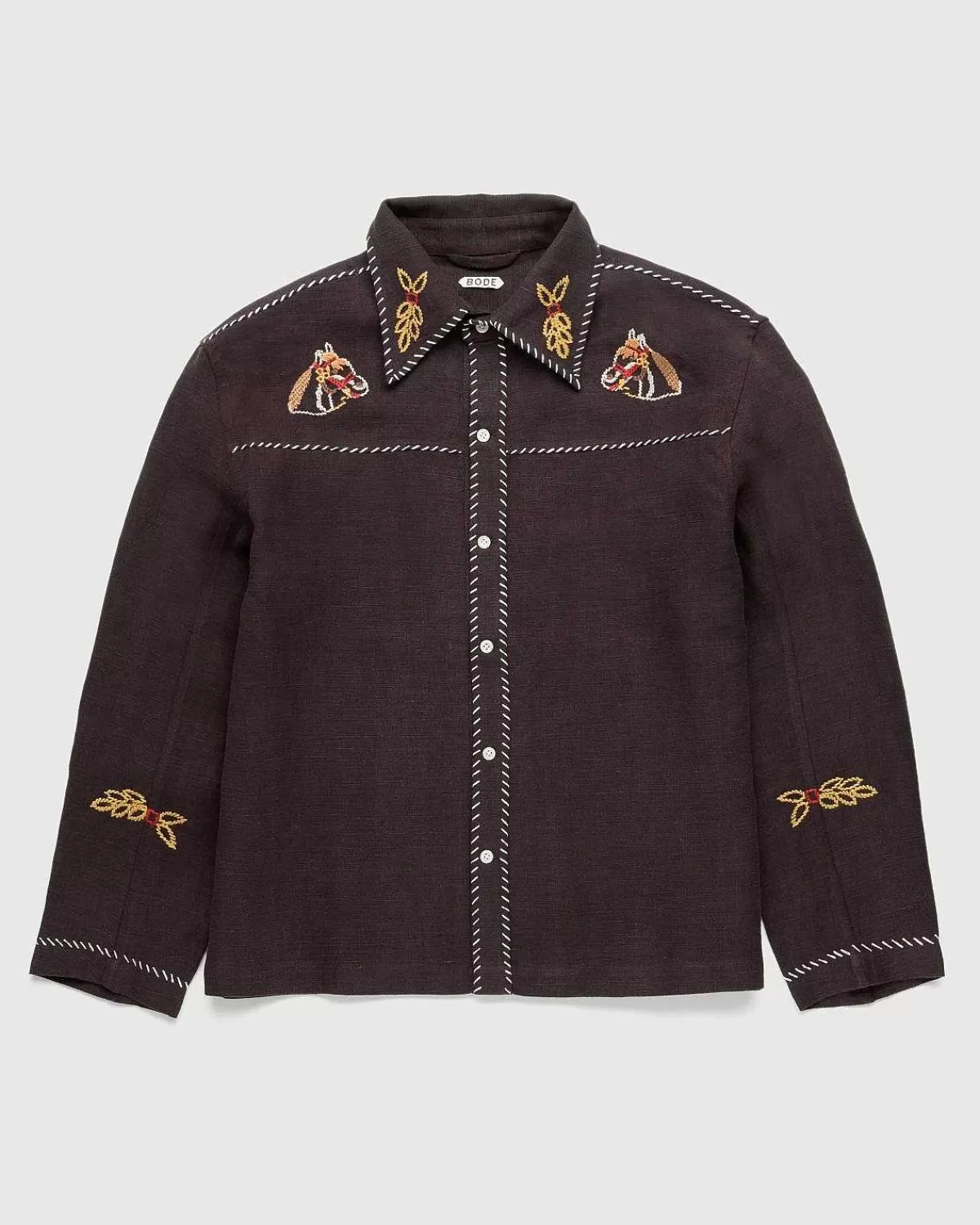 Denne Enestående Bode-Top Henter Inspiration Fra En Broderet Vestlig Skjorte, Der Daterer Sig Tilbage Til 1960’Erne. Beklædningens Broderede Heste Og Kontrastsyninger Ved Kraven, Bærestykket Og Stolpen Er Igen Blevet Gengivet For At Skabe Show-Ponystilen. Den Er Udstyret Med Knaplukning Foran Og Yderligere Udsmykket Med Bode-Broderi På Bagsiden.