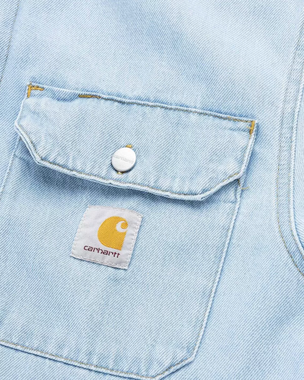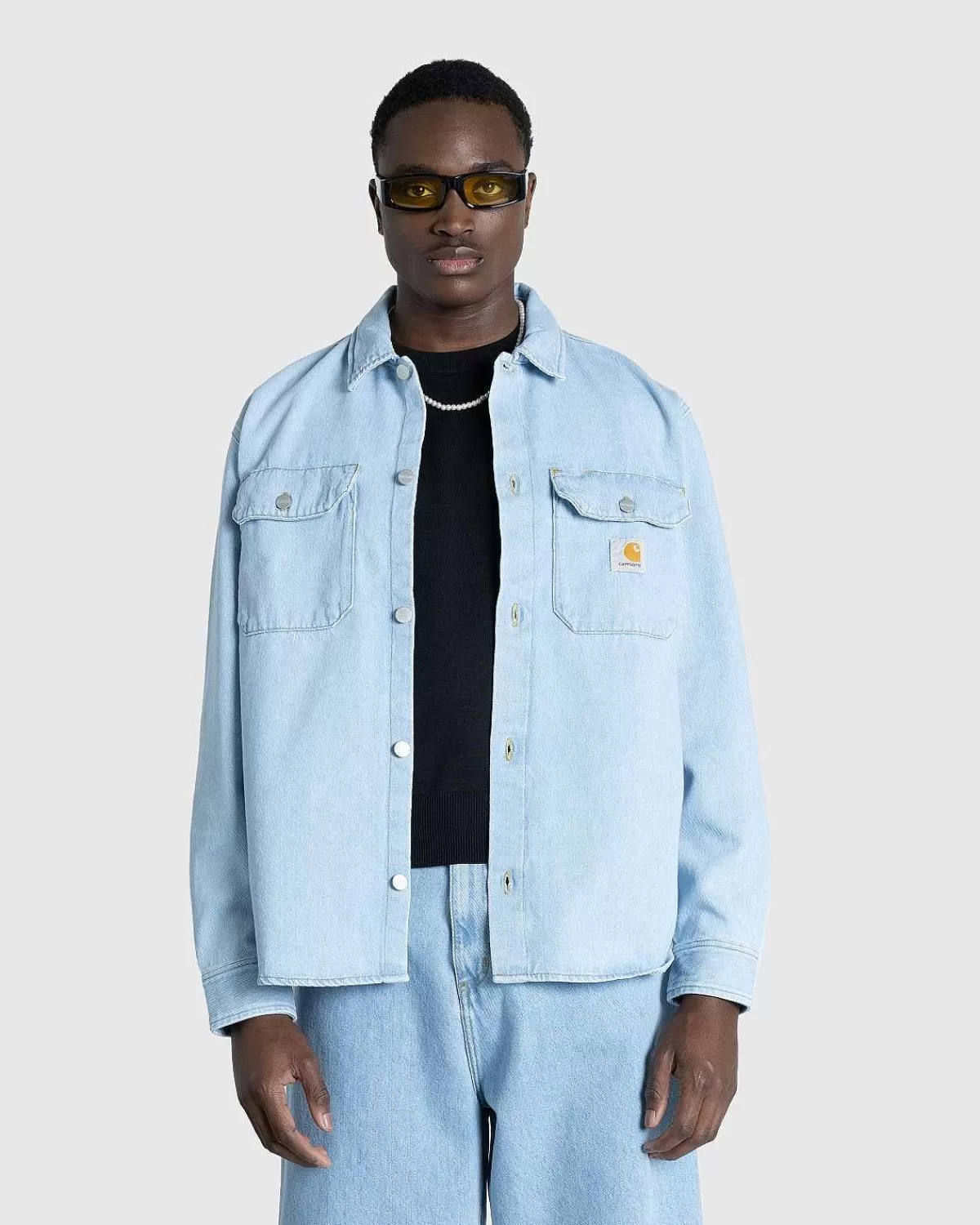 Harvey Skjortejakken Er En Alsidig Beklædningsgenstand, Der Kan Bæres Alene Som En Skjorte Eller Lagdelt Som En Jakke. Den Er Konstrueret Af En Kraftig Bomuldsdenim Og Er Uforet, Alt Imens Den Er Stenbleget For Et Lettere Udseende. Detaljer Inkluderer En Klassisk Krave, Knaplukning Foran Og To Brystlommer Med Klapknap. Carhartts Signaturvævede Firkantede Etiket Er Påført På Forsiden Af Tøjet For At Mærke Stykket.