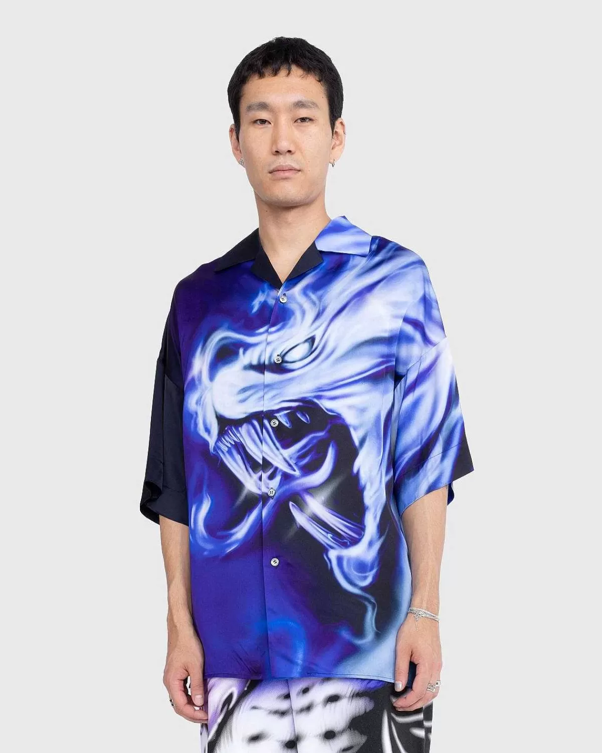 Gerrit Jacobs Seneste Samling Er En Ode Til Farverig Historiefortælling Og Henter Inspiration Fra Sin Hjemby Og Billedkunstneri Som Helhed. Den Satintrykte Skjorte Er En Vigtig Særpræg. Skjorten Er Detaljeret Med Unik Trykt Airbrushed-Grafik Og Er Afsluttet Med En Klassisk Spredt Krave.