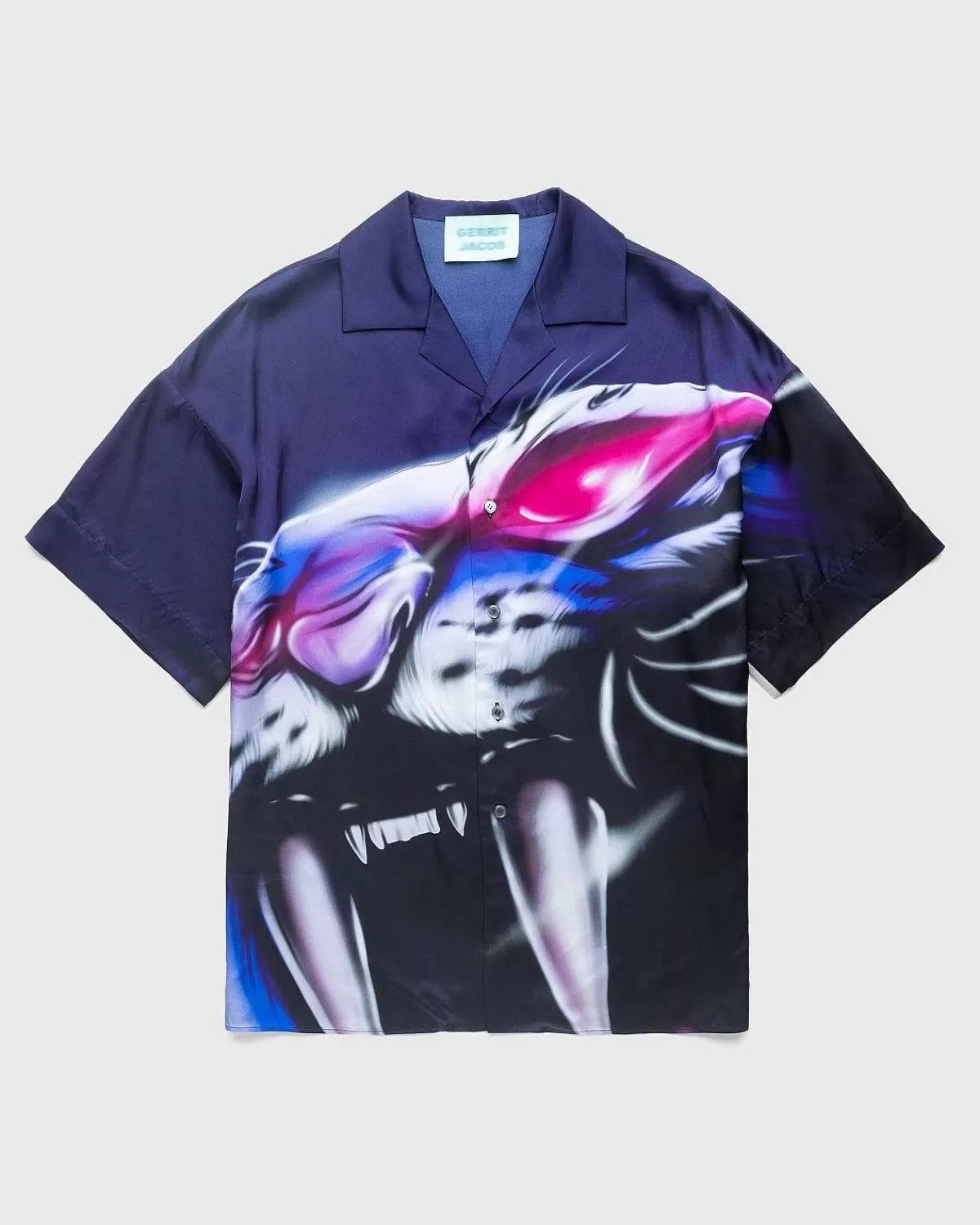 Gerrit Jacobs Seneste Samling Er En Ode Til Farverig Historiefortælling Og Henter Inspiration Fra Sin Hjemby Og Billedkunstneri Som Helhed. Den Satintrykte Skjorte Er En Vigtig Særpræg. Skjorten Er Detaljeret Med Unik Trykt Airbrushed-Grafik Og Er Afsluttet Med En Klassisk Spredt Krave.
