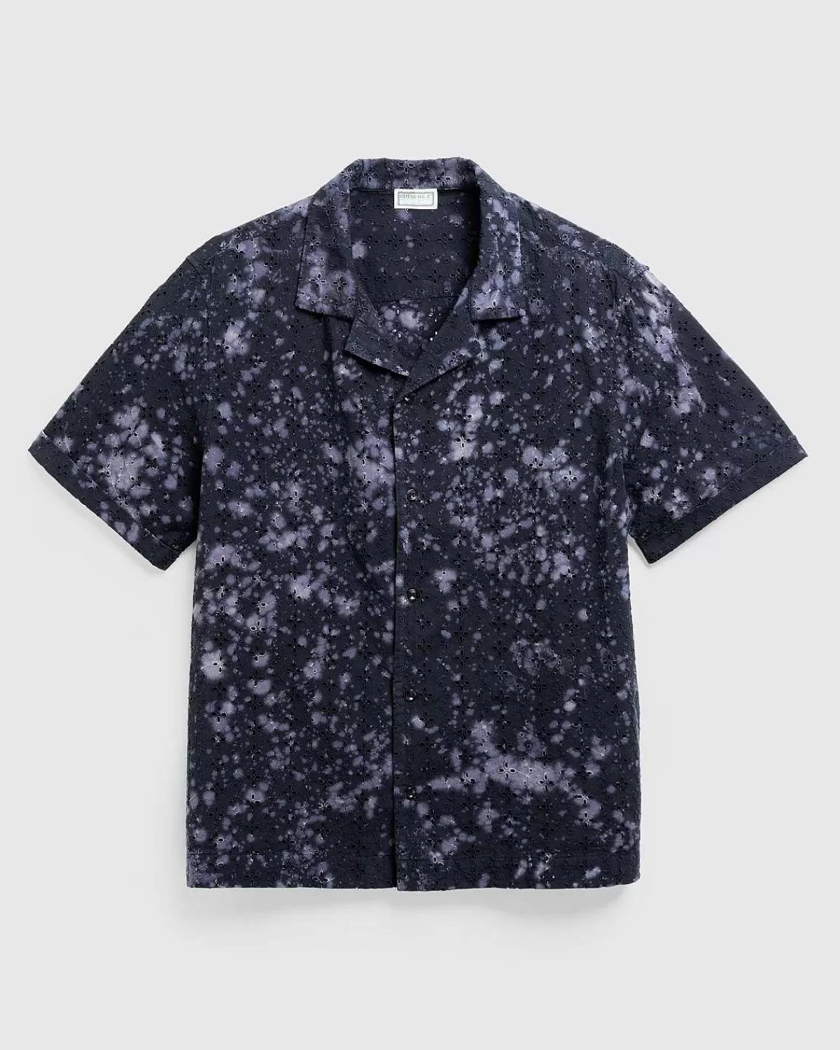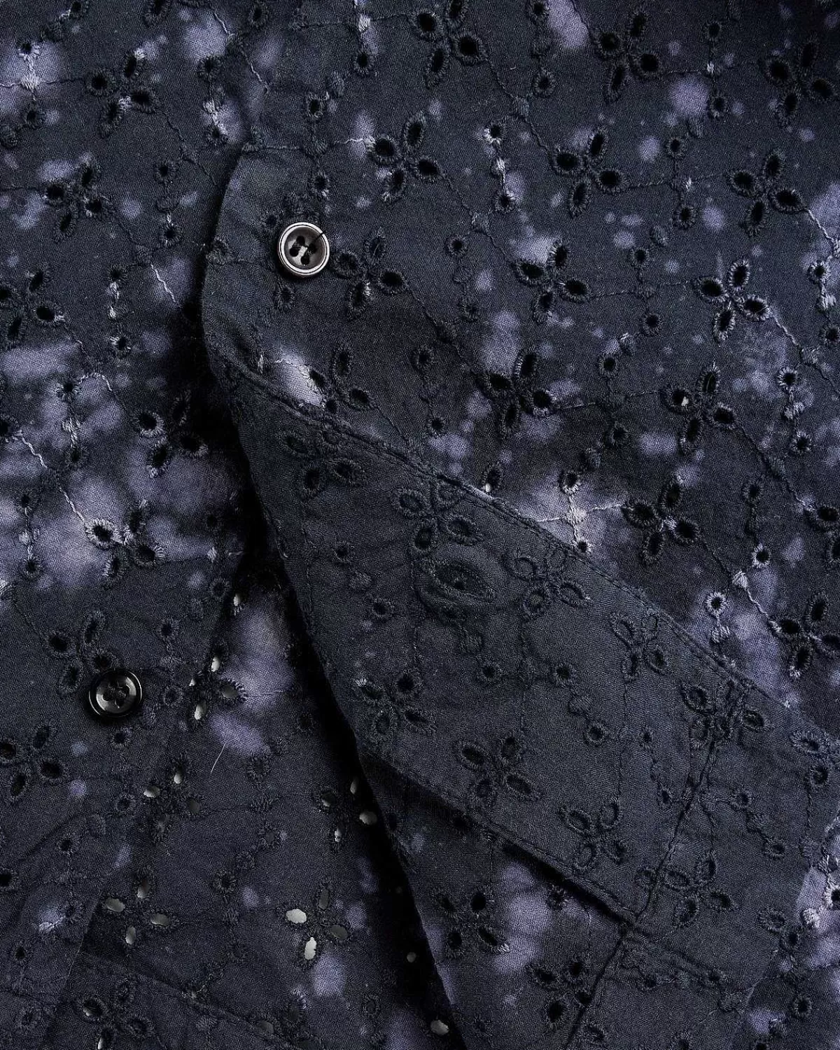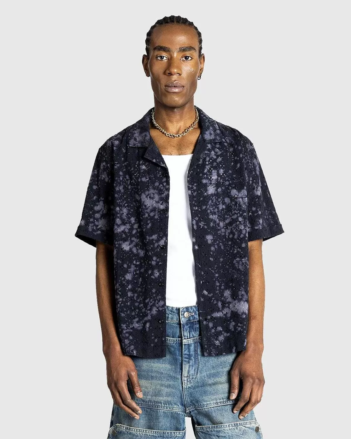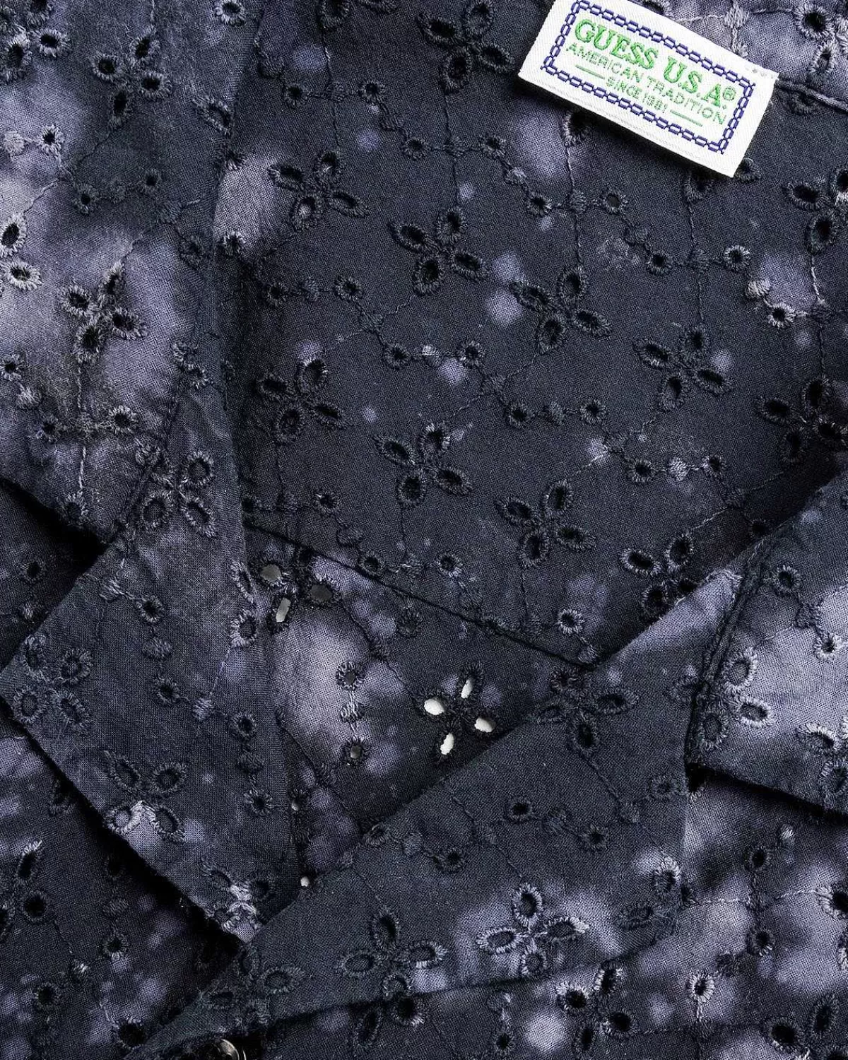 Denne Sæsonbestemte Guess Camp-Skjorte Fremviser Semi-Gennemsigtig Konstruktion Af 100 % Bomuld Med Håndfading, Med Et Karakteristisk All-Over-Motiv. Skåret Til En Standard Boxy Pasform, Tøjet Har En Traditionel Lejrkrave, Knaplukning Og En Lige Kant.