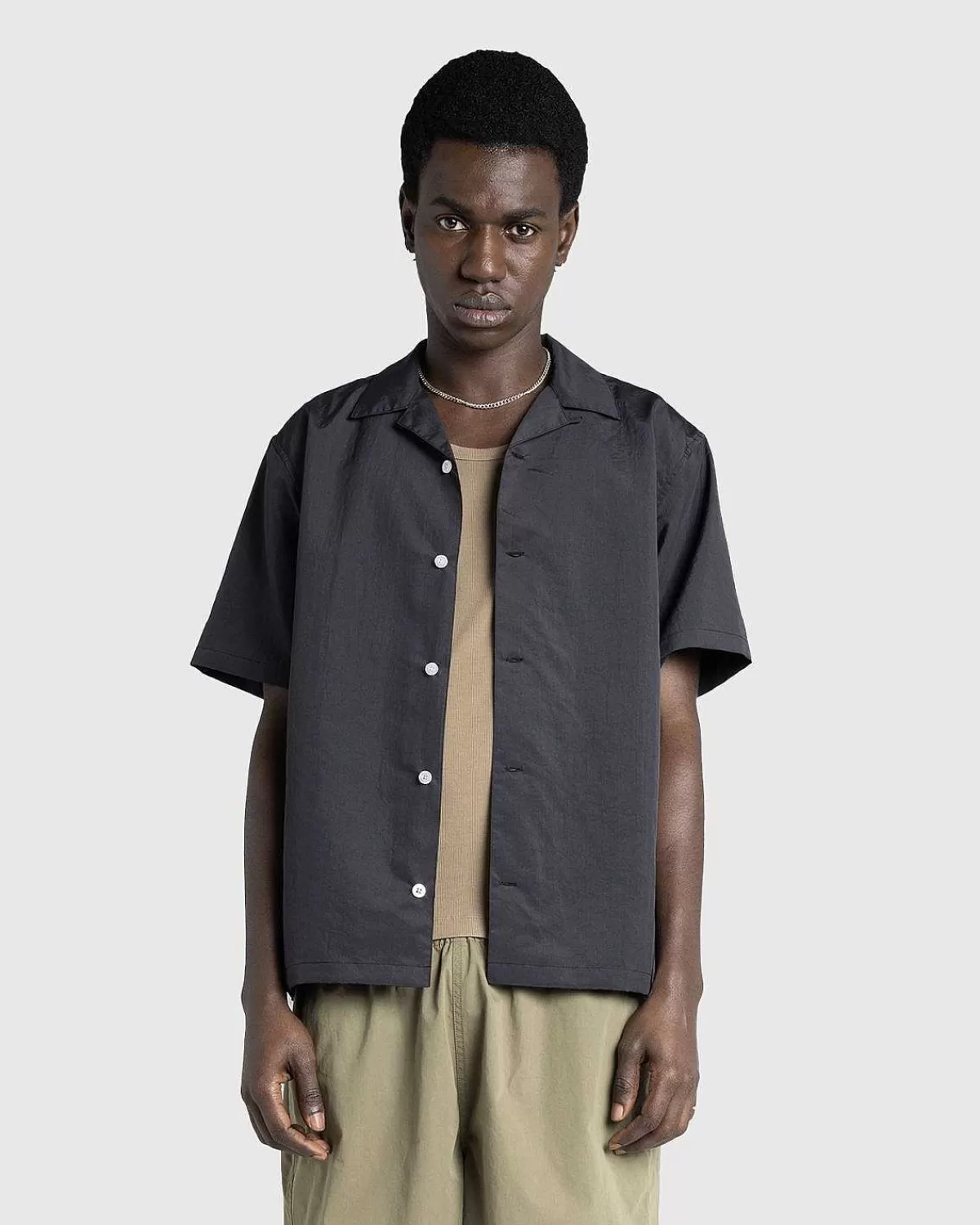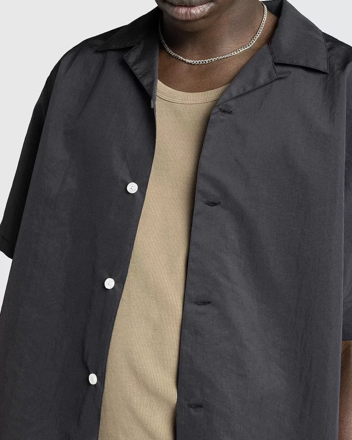 Let Og Med En Afslappet Lejrkrave Er Denne Kortærmede Topskjorte Lavet Af Japansk Nylon. Toppen Er Skåret I En Boxy Pasform Prydet Med Røgede Perlemor-Knapper Og Har En Hs05-Flagetikette Ved Sømmen.