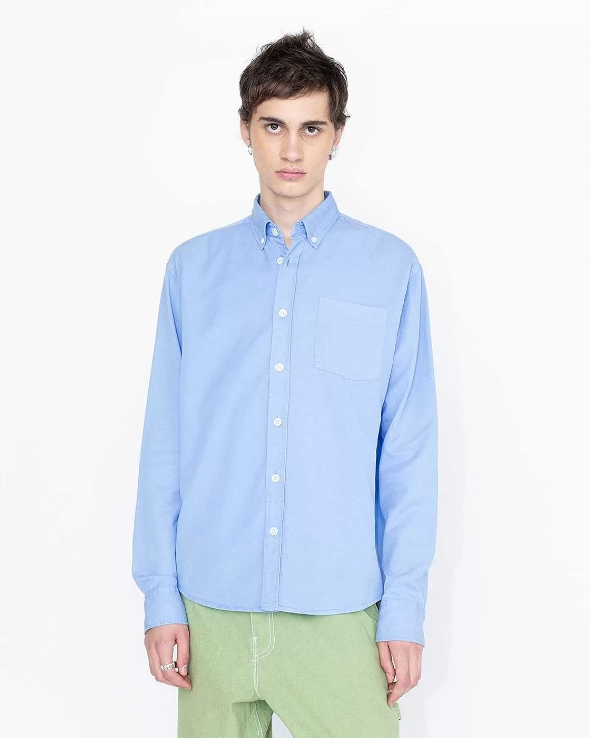 Denne Button-Down-Skjorte Kommer I En Boxy, Overdimensioneret Pasform Med Subtil Branding I Form Af Et Flagmærke Ved Siden. Den Langærmede Skjorte Er Lavet Af Beklædningsfarvet Bomuld For Et Blødt Touch Og Er Detaljeret Med En Brystlomme, Knapmanchetter Og En Klassisk Rygfold.