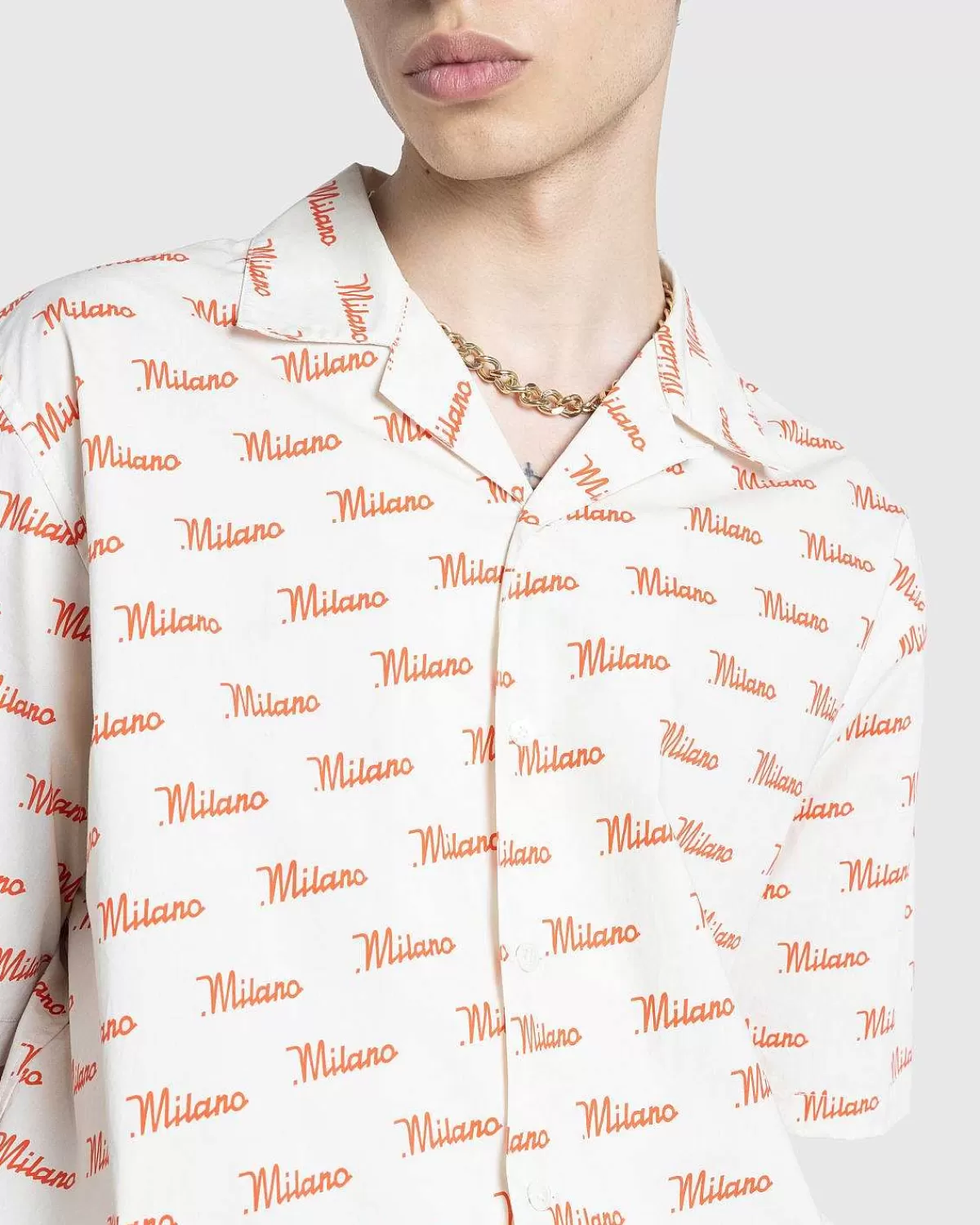 Milano-Skjorten Hylder Den Pulserende By Milano Og Dens Rige Designarv. Denne Kortærmede Skjorte Er Skåret I En Afslappet Pasform Med En Lejrkrave Og Viser Grafik Inspireret Af Milanesisk Art Deco-Skiltning.