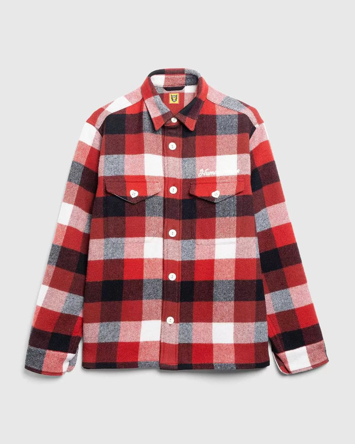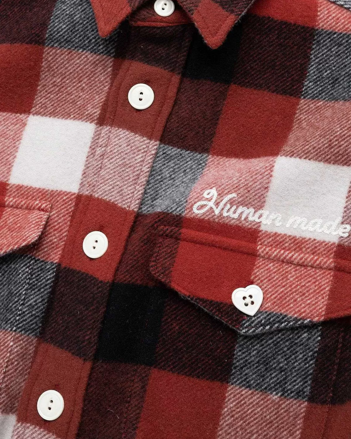 Skjorter>Human Made Uld Beaver Block Ternet Skjorte Rod