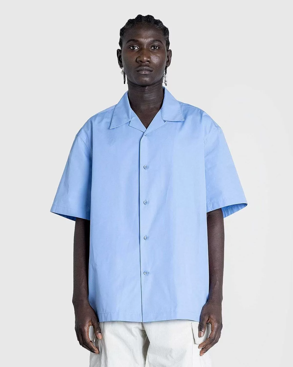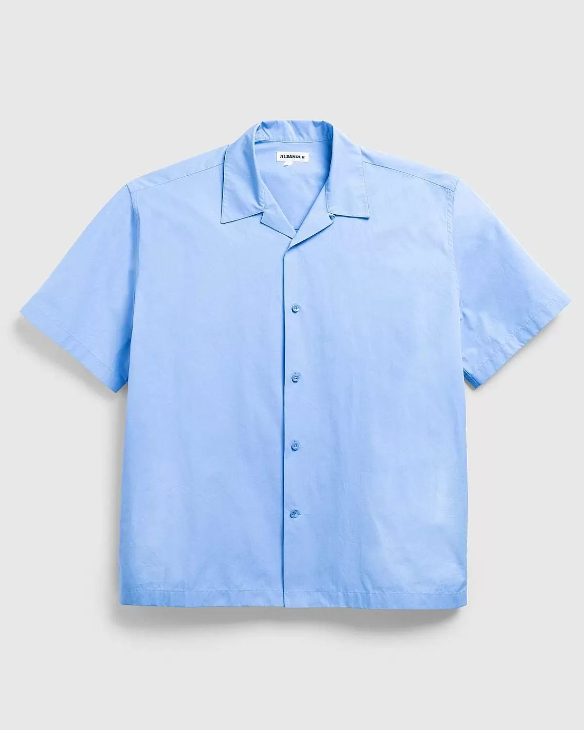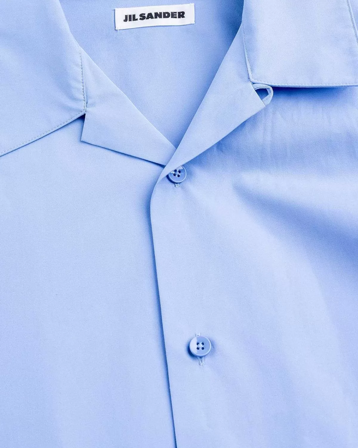Denne Jil Sander-Beklædningsgenstand Er En Skjorte I Feriestil Lavet Af Et Bomuldspoplinstof. Den Ankommer Til Sæsonen Med Varmt Vejr I En Indbydende Lyseblå Farvevariant, Med Traditionelle Designelementer, Der Omfatter En Spredt Krave, Knaplukning Foran Og En Lige Kant. Beklædningen Har En Klassisk Boxy Pasform For At Sikre Et Tidløst Look.