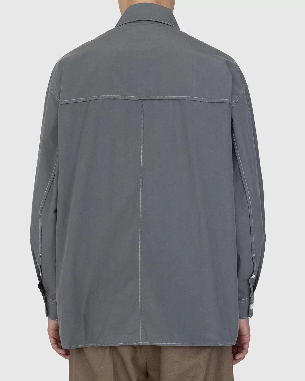 Kendt For Sine Forhøjede Knapper, Leverer Lemaire En Ny Silhuet Til Sæsonen, En Der Kan Bruges Som En Skjorte Eller En Jakke. Stilen Er Lavet Af En Kompakt Bomuldspoplin I En Tyk Vævning, Med Kontrasterende Tvillingsømme, Der Giver Silhuetten En Ekstra Dimension. Mere Traditionelle Designelementer Omfatter En Lige Krave Og Knapmanchetter, Da Der Er Indbygget Laplommer På Brystet. Tøjet Er Skåret I En Traditionel Boxy Pasform For At Sikre En Tidløs Slid.