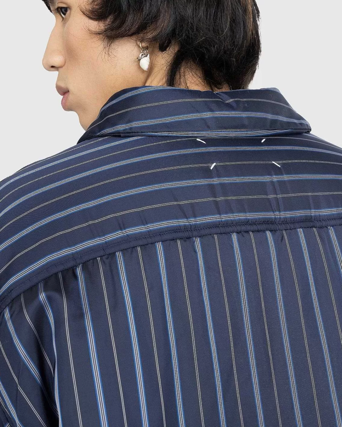 Skjorter>Maison Margiela Polstret Stribet Skjorte Marinebla