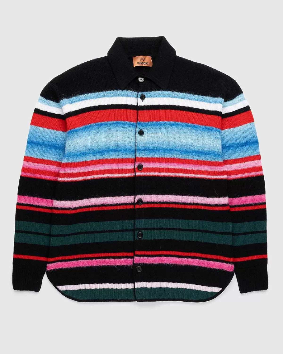 Denne Livlige Missoni-Stil Er Dels Med Knap-Ned Og Dels Sweater. Den Er Strikket Af Et Blødt Uld-Alpaca-Mohair-Blandingsstof, Der Viser Et Vandret Stribedesign. Detaljer Inkluderer En Klassisk Krave, Knaplukning Foran Og Ribmanchetter.