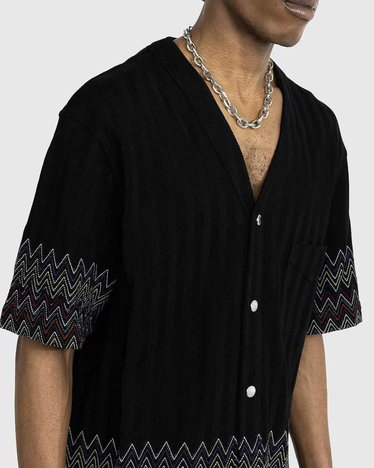 Den Strikkede T-Shirt Er En Af Missonis Definitive Toppe, Der Viser Mærkets Tekniske Dygtighed I Mønsterfremstilling. Komponeret Udelukkende Ved Hjælp Af En Raschel-Strikketeknik, Der Er Kendt For Sin Holdbare Konstruktion, Er Toppen Detaljeret Med Missonis Signatur-Chevron-Mønster, En Brystlomme Med Et Diskret Logomærke Og Ankommer I Et Kraveløst Snit.