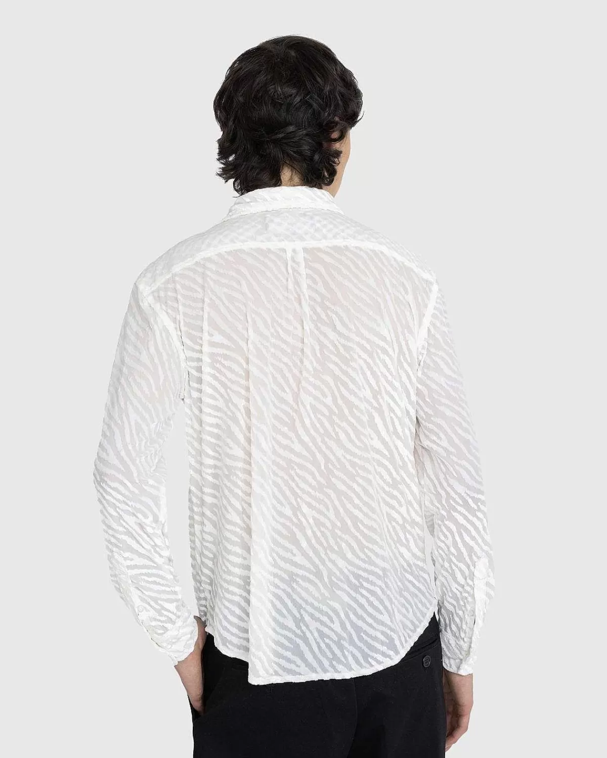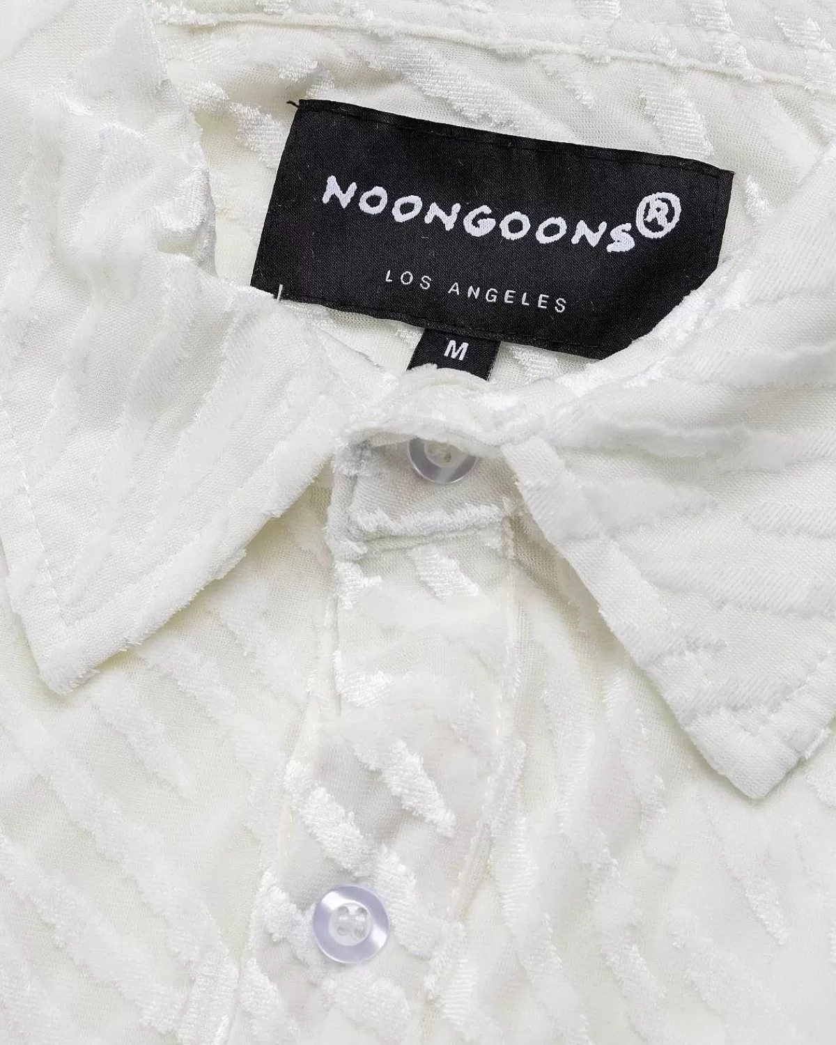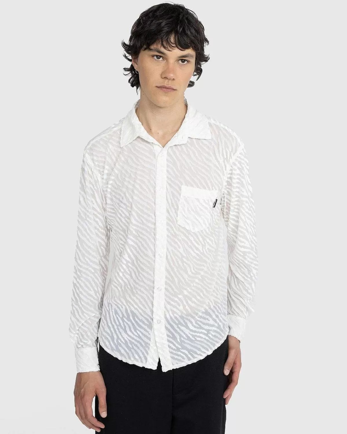 Som Navnet Antyder, Er Tijuana Tiger-Skjorten Defineret Af Tiger-Trykt Flocking På Et Gennemsigtigt Polyesterstof. Beklædningsgenstanden Er Let Og Flydende Med Traditionel Knaplukning Foran Og Knapmanchetter, Med En Venstre Brystlomme, Der Er Mærket Med Et Lille Noon Goons-Logomærke.