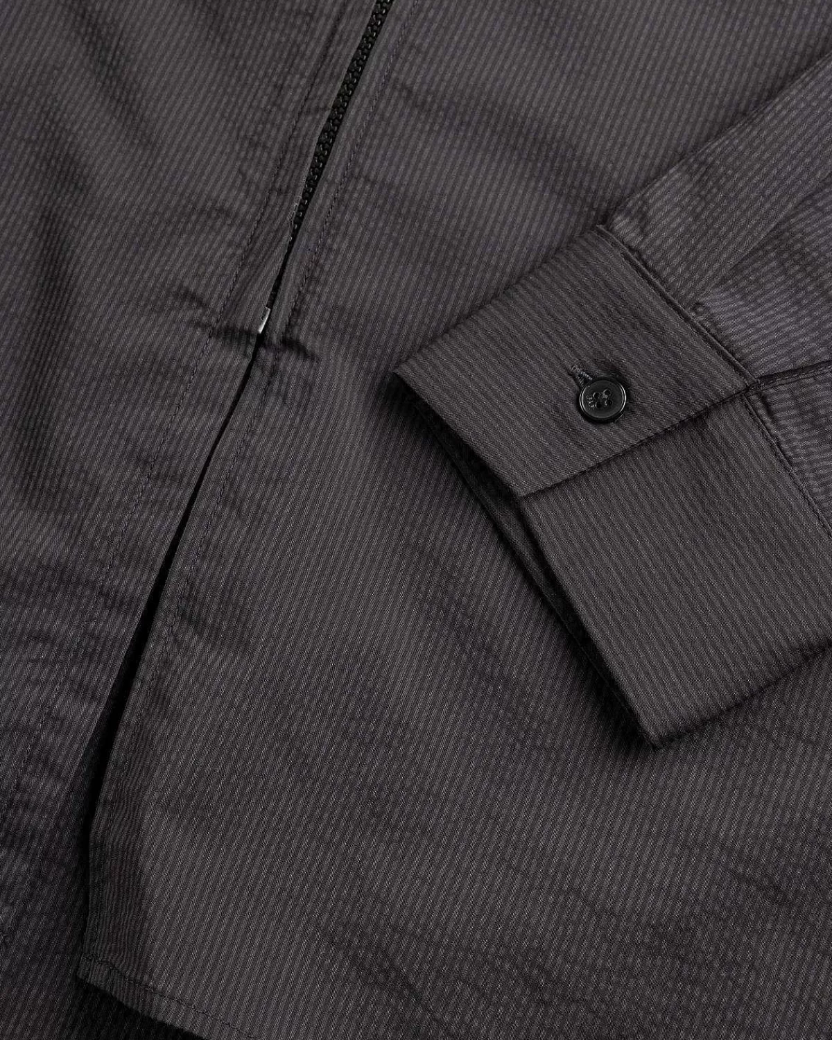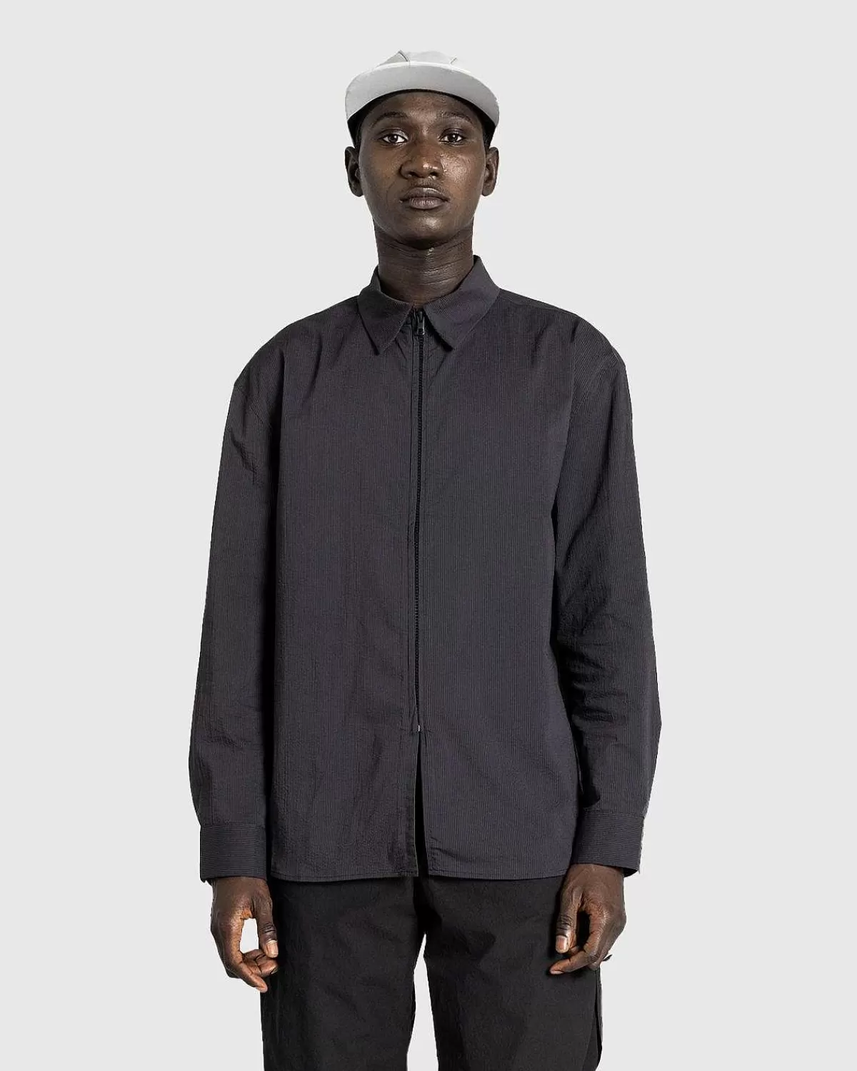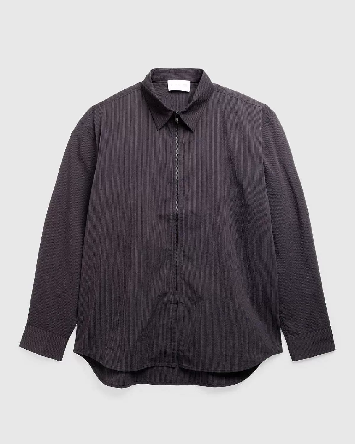 En Nyfortolkning Af Mærkets 5.1-Skjorte, 6.0 Er Udført I Et Sydkoreansk Seersucker-Stof, Der Forbedrer Ventilationen. Den Har En Karakteristisk Beskåret Lynlåslinje Foran, Ud Over Manchetter Med Knapper Med Logo-Indgraverede Knapper.
