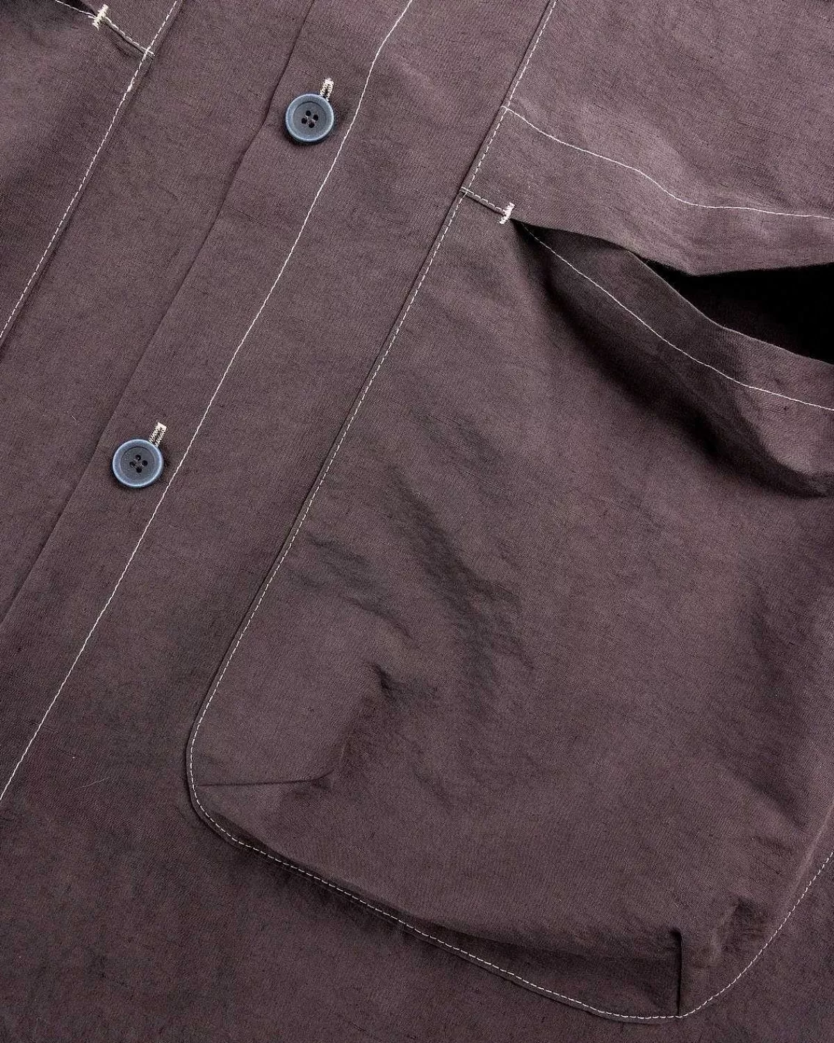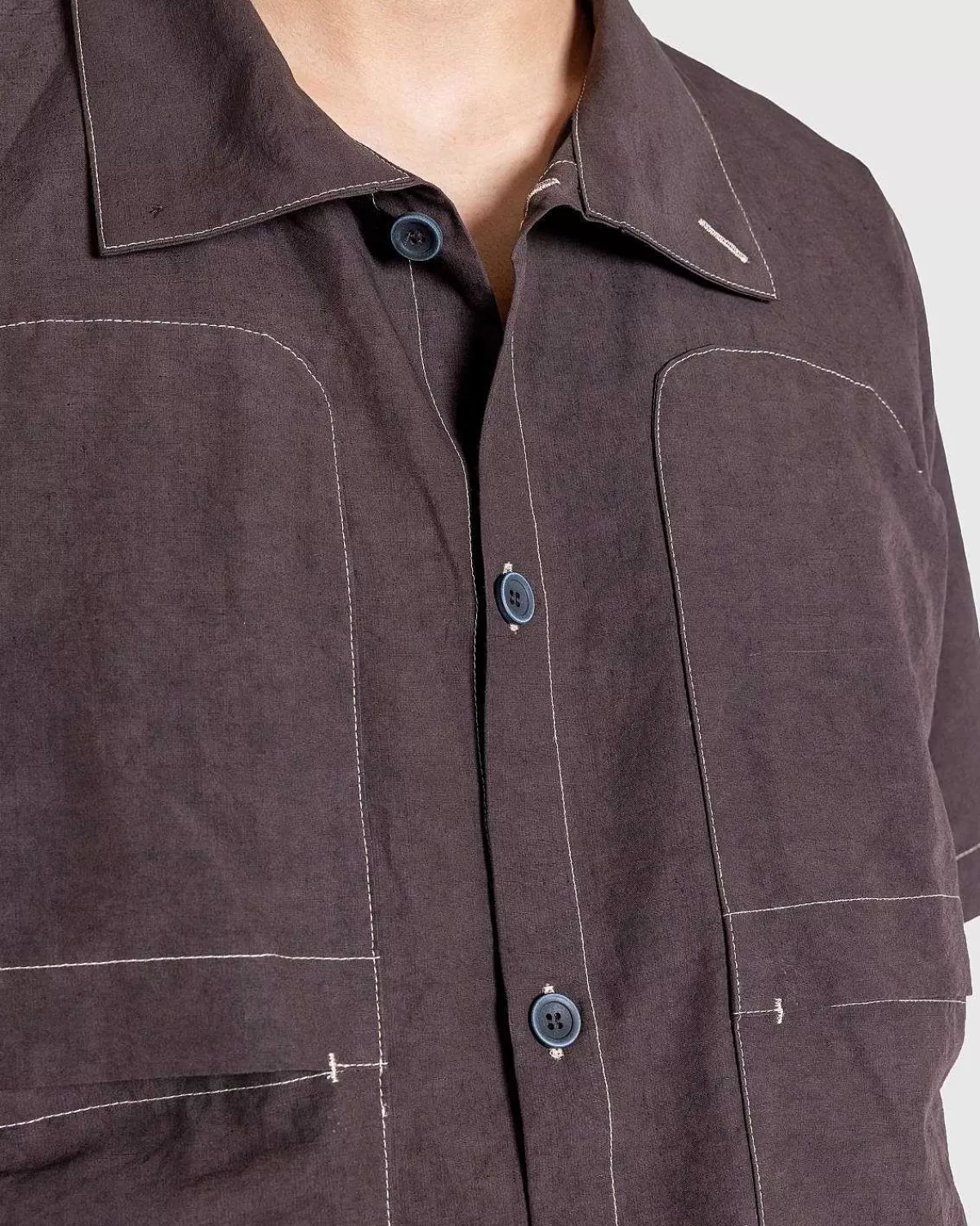 Glems-Skjorten Er Produceret I En Bomulds- Og Hørblandingslærred Med Diskret Pilling Overalt. Den Er Detaljeret Med Kontrastsyninger Og Har En Spredt Krave, Knaplukning Foran Og Korte Ærmer. En Træksnor I Bungee-Stil Er Indbygget I Tøjets Kant For At Give Mulighed For Subtile Justeringer Af Stiling, Da Patchlommer Kommer Frem På Forsiden For At Fuldende Designet.