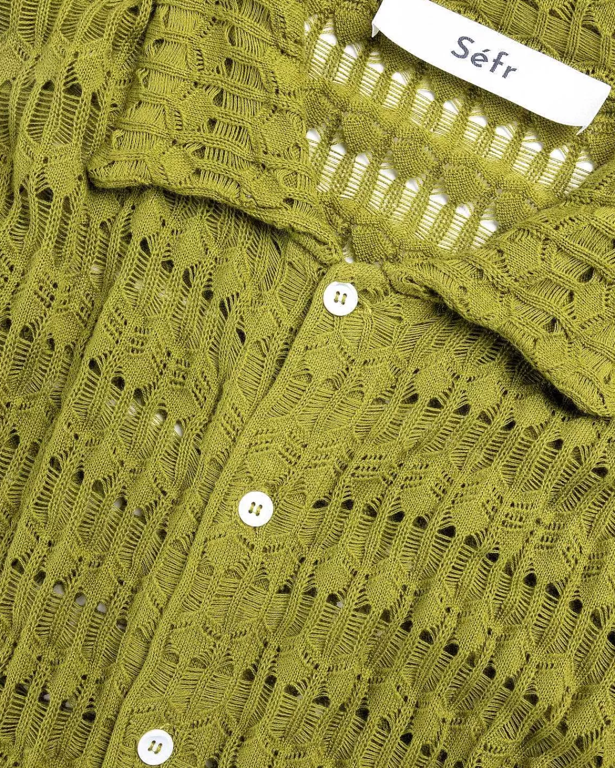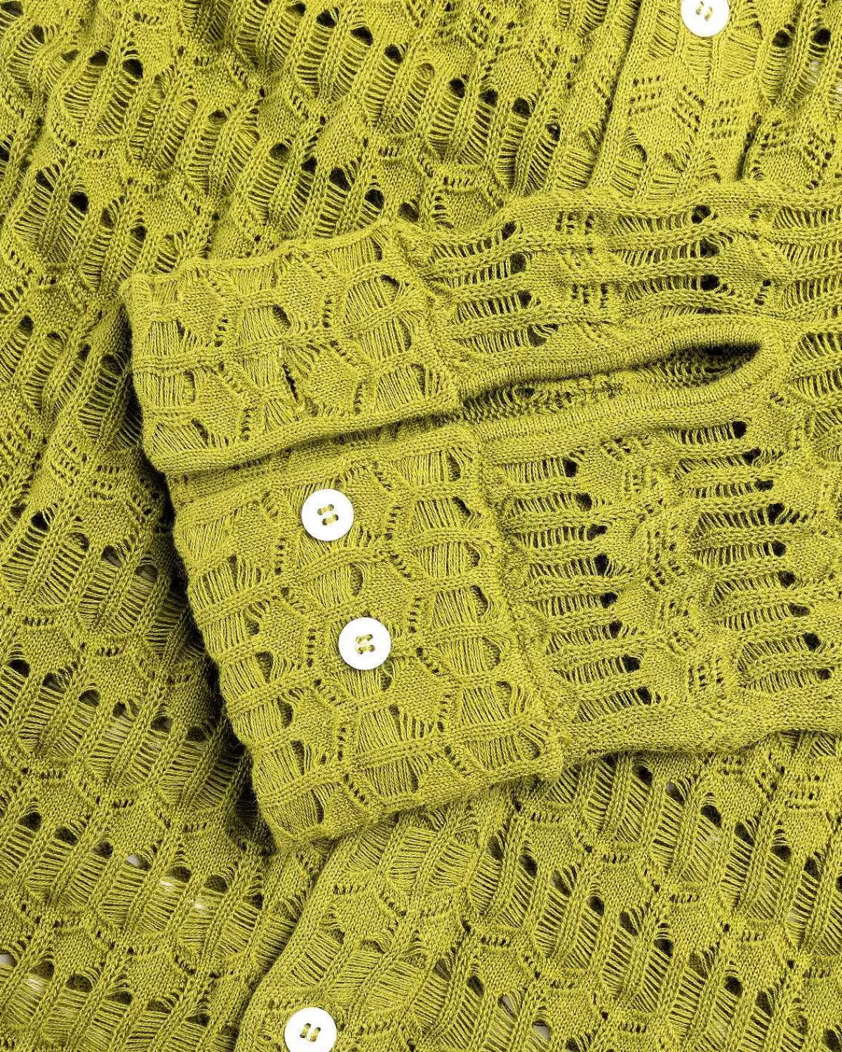 Yasu-Skjorten Er En Sjov, Halvgennemsigtig Stil Strikket Af Blødt Bomuldsgarn. Den Har En Spredt Krave Og Perlemor-Knapper Langs Midten Foran Og Bruges Også Ved Ærmerne. Beklædningen Er Skåret Til En Afslappet Pasform Til En Ekstra Komfortabel Og Moderigtig Brug.