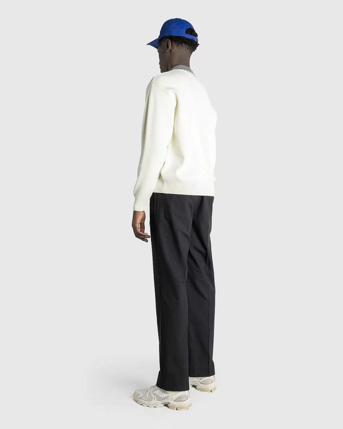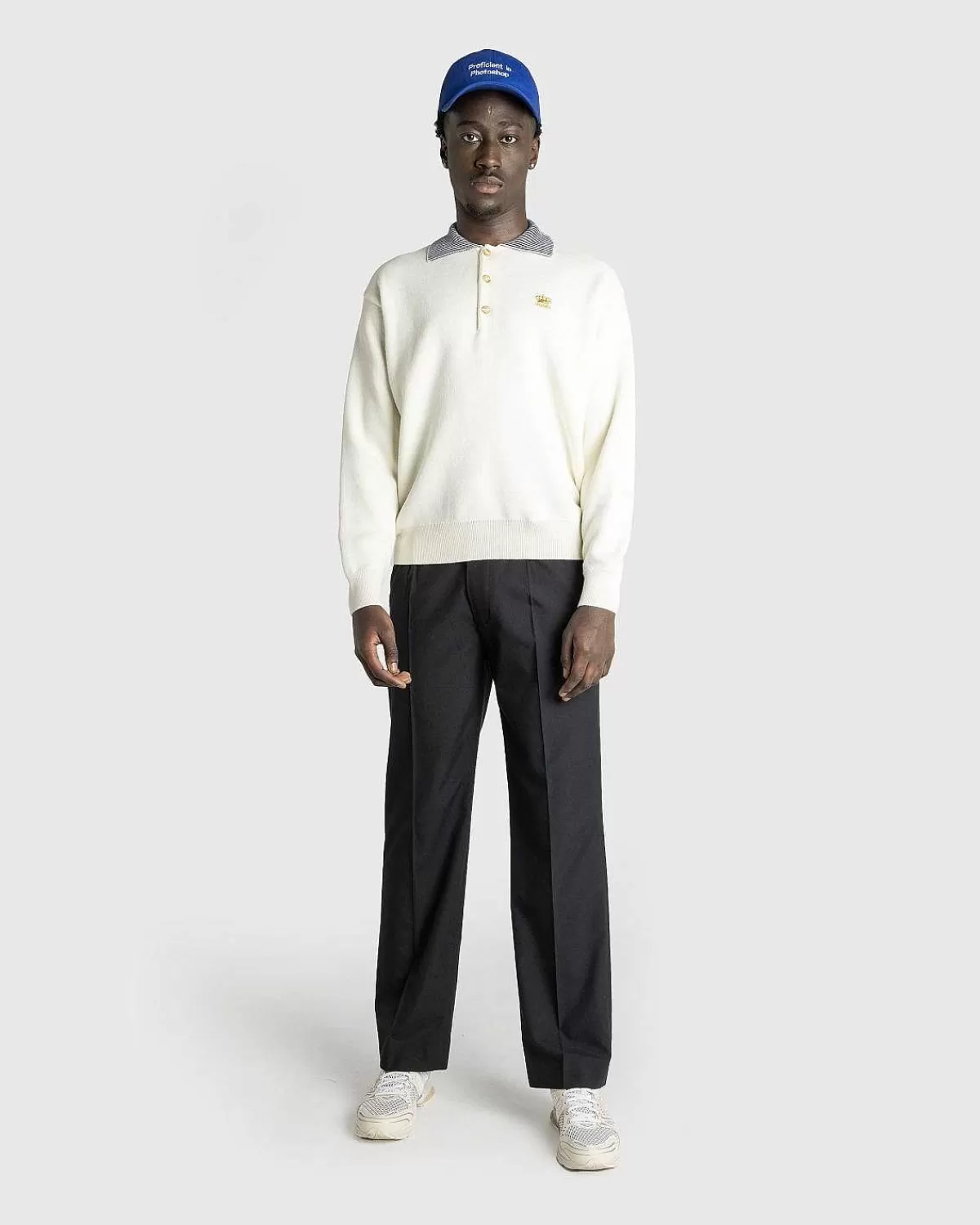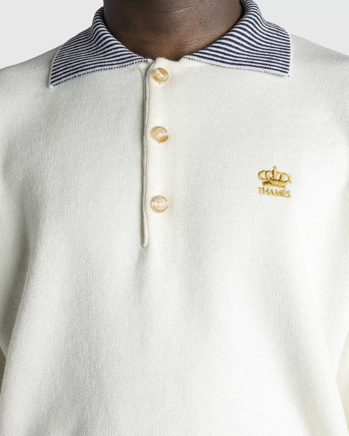 Panayiotou Er En Luksus Polo-Stil Strikket Af Et Merino Uldblandet Stof. Det Er Detaljeret Med En Stribet Spredt Krave, Et Broderet Kronemotiv På Brystet Og Logo-Indgraverede Knapper. Den Langærmede Stil Er Skåret Til En Afslappet, Boxy Pasform Og Afsluttet Med Ribstrik Ved Manchetterne Og Forneden.