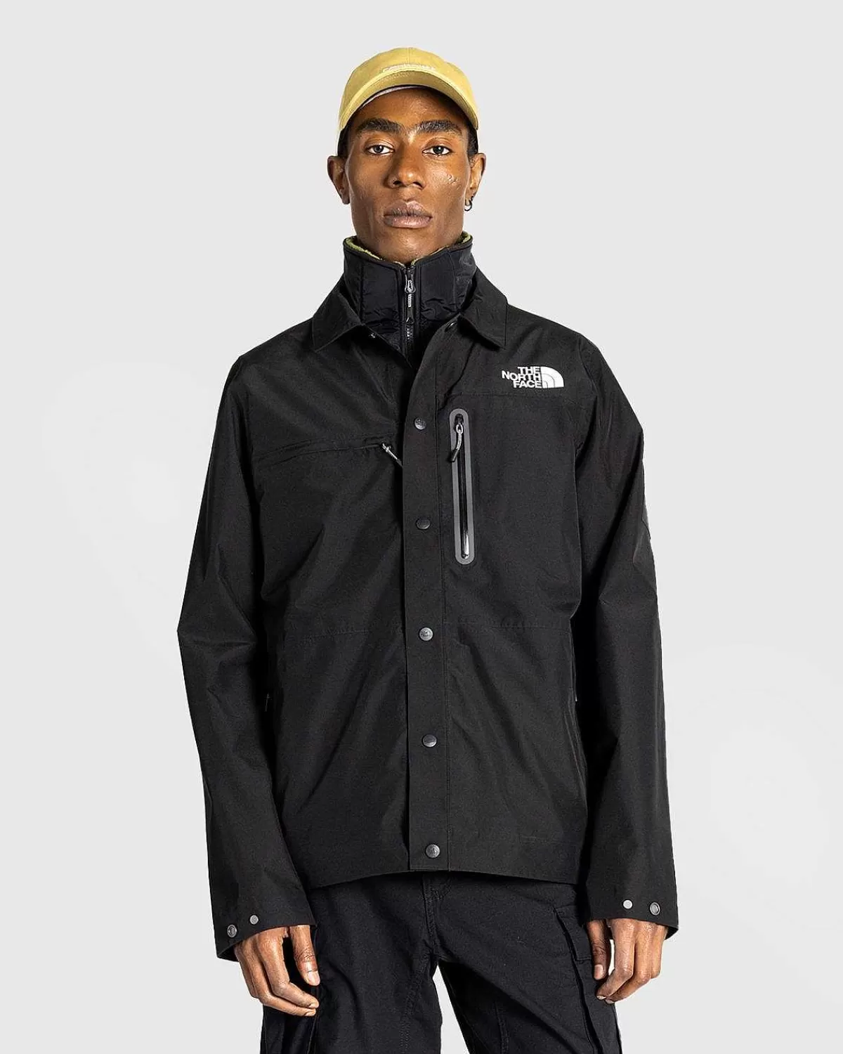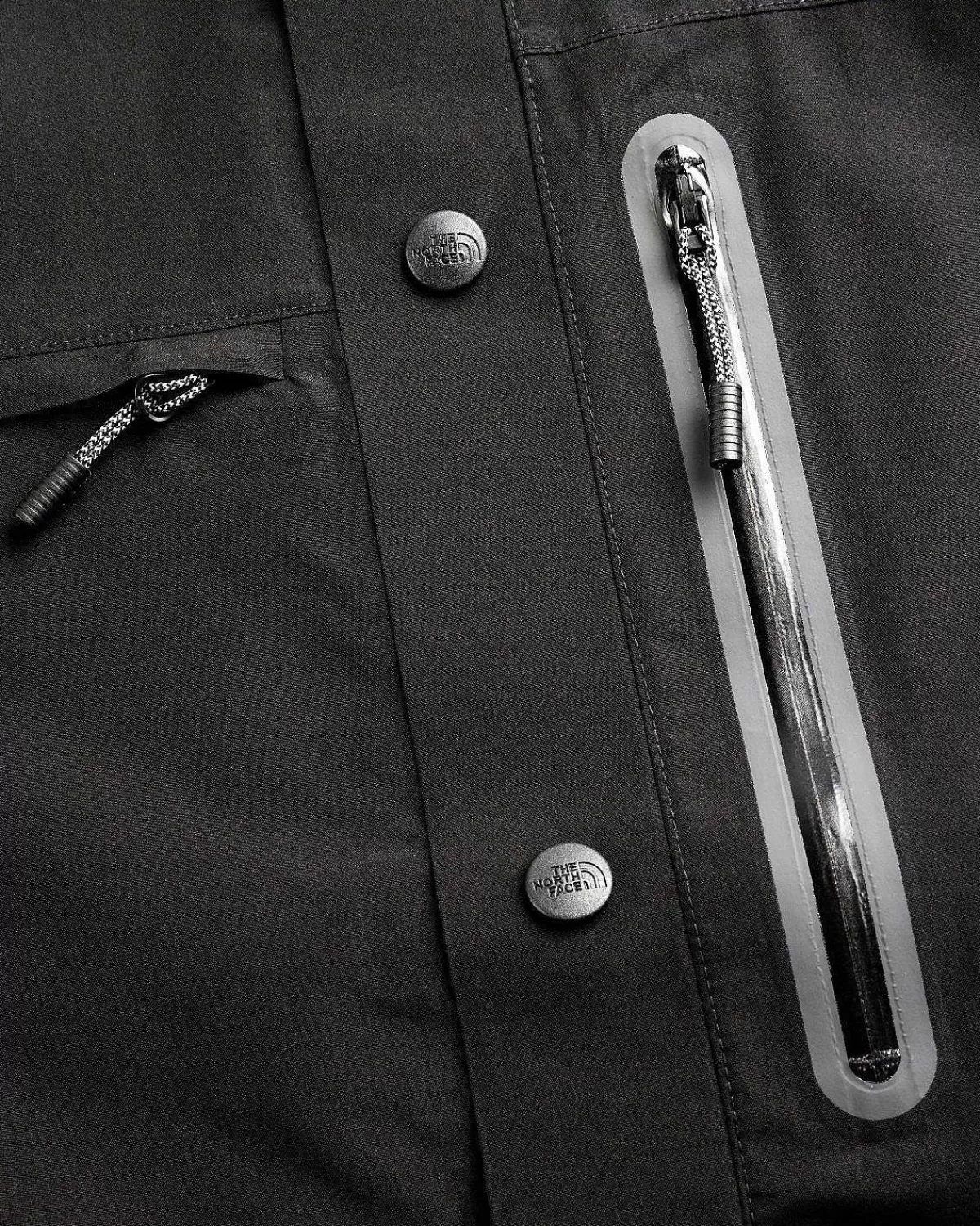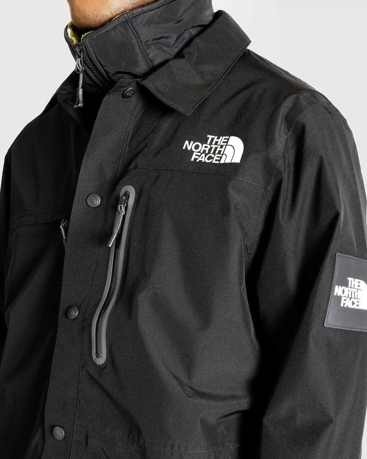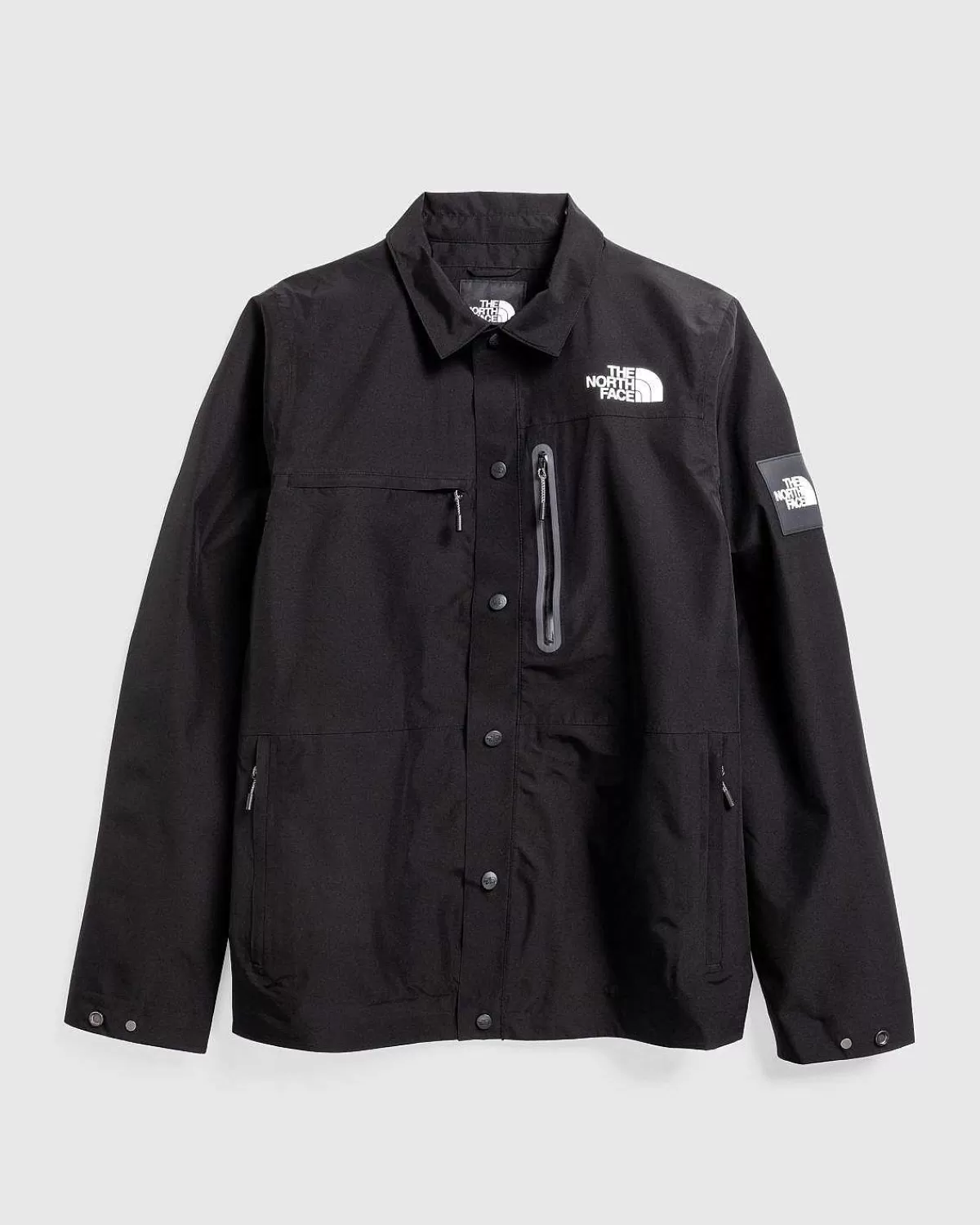 Amos Tech-Overtrøjen Er En Teknisk Overtøjsstil Lavet Med Sømforseglede To- Og Trelags Dryvent-Stoffer, Der Er Konstrueret Til At Være Vandtæt, Vindtæt Og Åndbar. Beklædningsgenstanden Er Skåret Til En Standardpasform Og Er Derefter Udstyret Med De North Face-Mærkede Trykknapper, Der Forer Midt Foran Og Ved Ærmerne, Mens Lommerne Kommer Frem På Brystet Og Siderne Af Silhuetten. Kontrasterende Tnf-Logoer Er Påført På Forsiden, Bagsiden Og Venstre Arm Af Stykket For At Mærke Stilen.