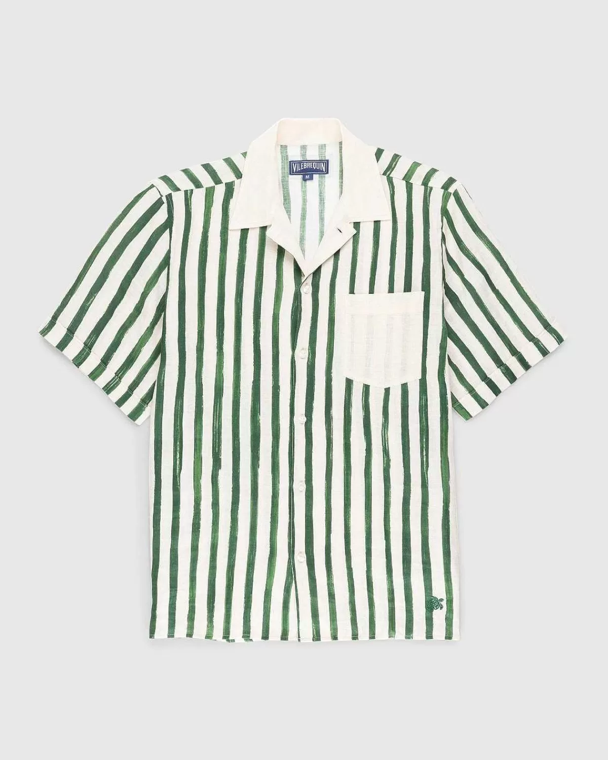 Den Nye Kapselkollektion Byder På Svømmeklar Påklædning Og Tilbehør Som Den Alsidige Skjorte, Der Ses Her I En Stribet Finish. Den Lette Skjorte Er Ideel Til Varmt Vejr, Men Alsidig Nok Til Enhver Sæson. Den Er Lavet Af Linned Og Har En Klassisk Spredt Krave, Knaplukning Sammen Med En Kontrastfuld Brystlomme For At Fuldende Looket.