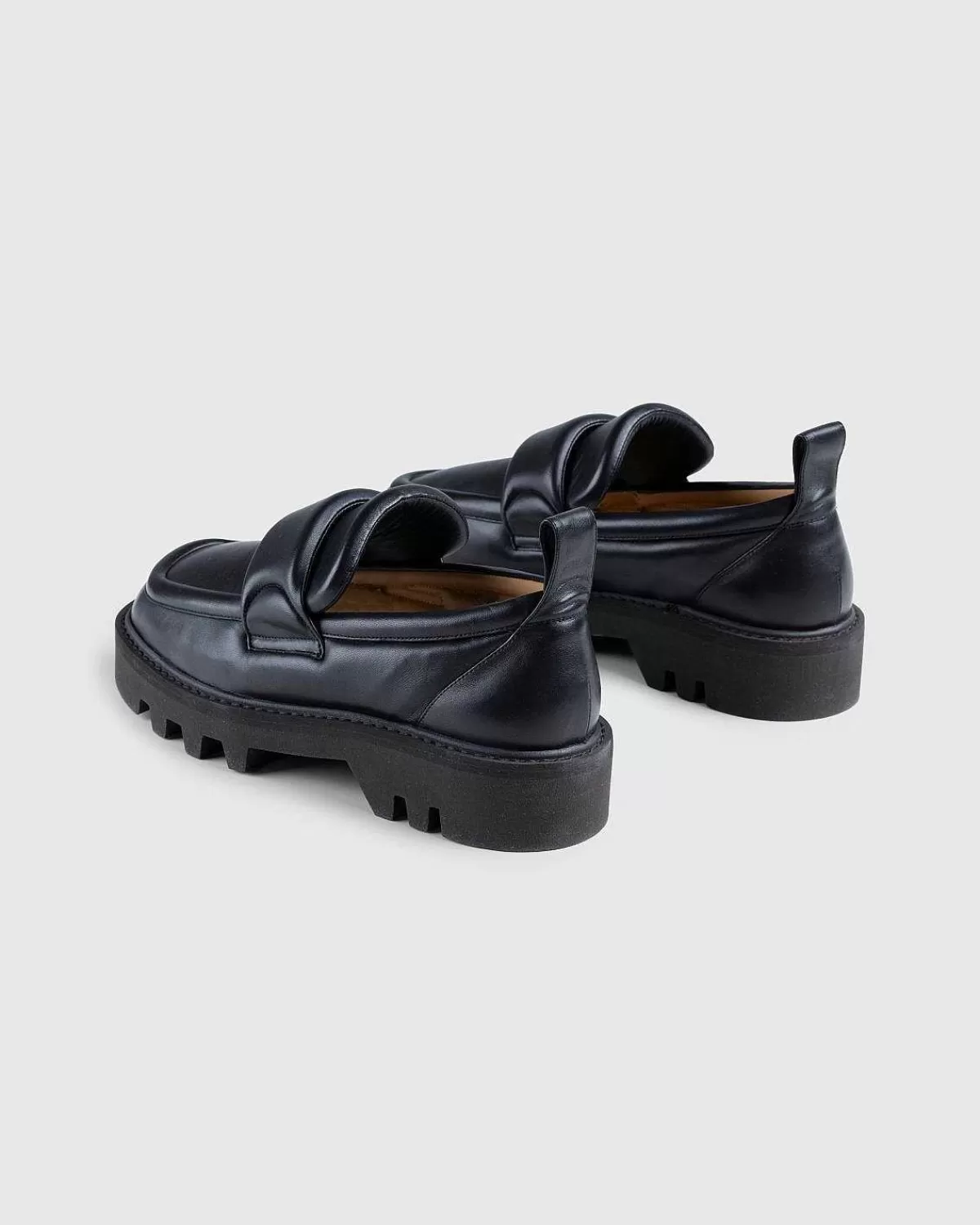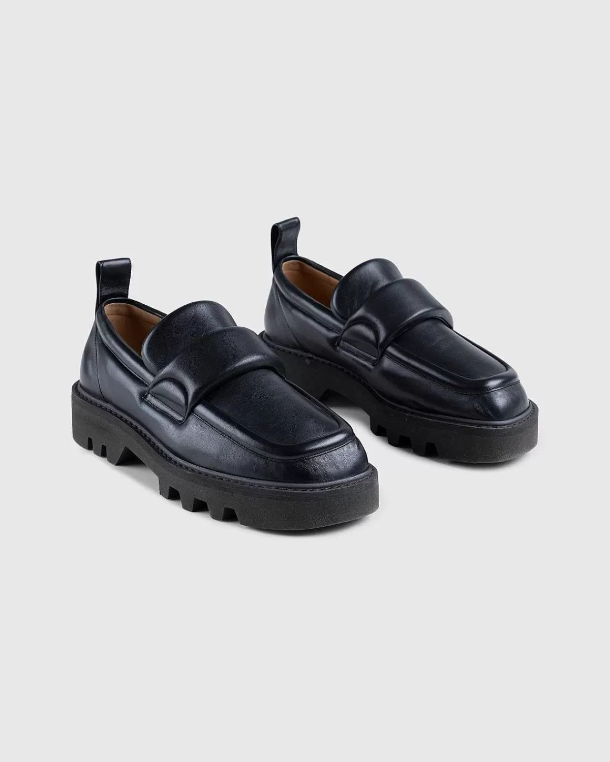 Denne Snigende Helt Sorte Stil Fra Dries Van Noten Er En Loafer Af En Anden Race. Hovedsageligt Fremstillet Af Smidigt Fåreskindslæder, Den Lave Top-Silhuet Har Også Poleret Læderfor I Solbrun Farve. Den Har En Firkantet Moc Toe Og Er Kendetegnet Ved En Tyk Gummisål.
