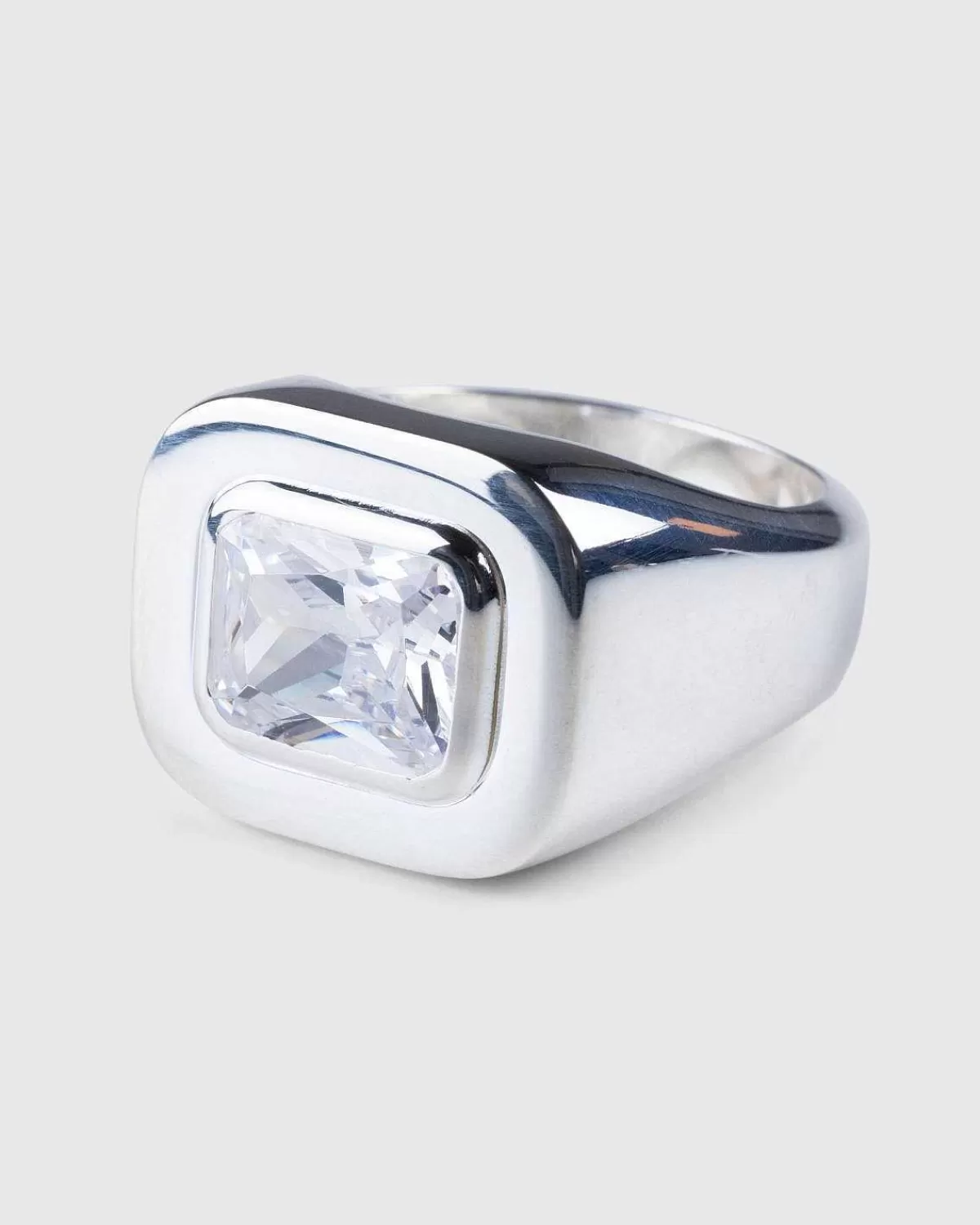 Den Smaragdskårne Signetring Er Hatton Labs’ Legende Bud På En Klassisk Smykkestil. Ringen Er Lavet Af Massivt 925 Sterlingsølv Med Cubic Zirconia, Og Ringen Er Defineret Af Dens Smaragdsnit, Da Den Vil Bringe En Smule Flair Til Dine Outfits.