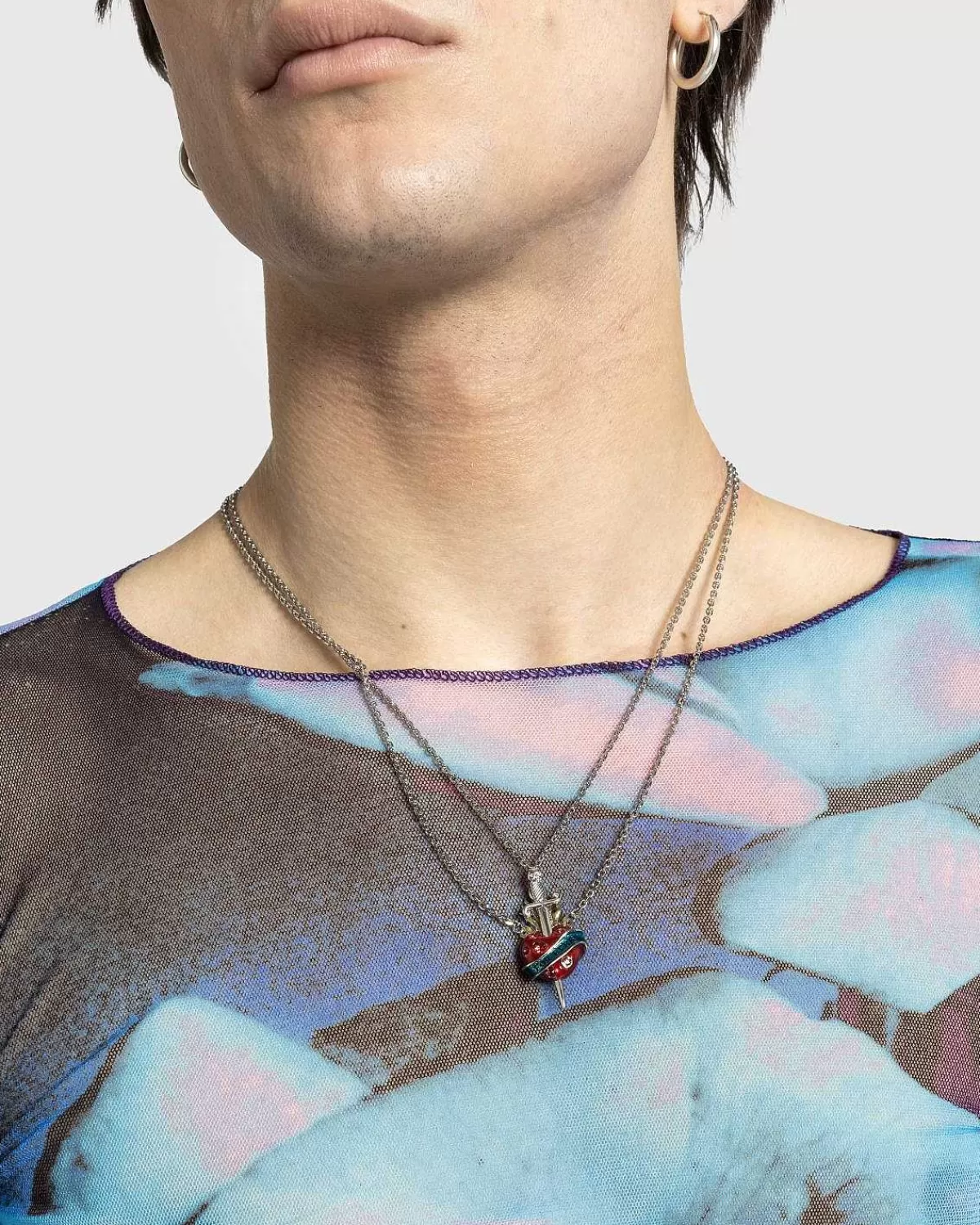 Denne Jean Paul Gaultier-Smykkestil Kombinerer Smart To Halskæder I Ét Design. Hvert Stykke Er Lavet Af 100 % Bronze Og Passer Med Klassisk Hummerlås. Når Det Bæres Sammen, Passer Sværdet Sikkert Ind I Hjertet.