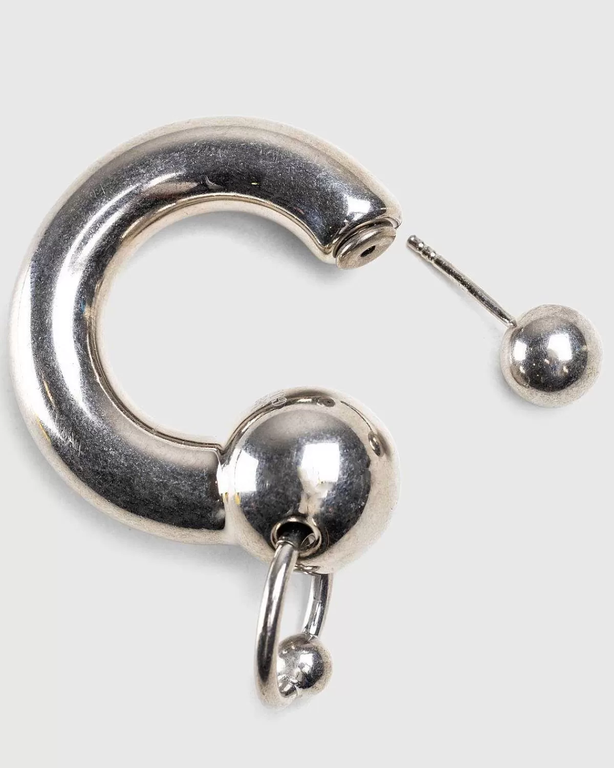 En Del Af Très Gaultier-Kollektionen, Ringøreringen Er En Minimal Smykkestil Produceret I 100 % Messing. Piercing-Formet, Tilbehøret Sælges Som Et Par Og Har En Push-Back-Lås Med Jean Paul Gaultier-Gravering, Der Mærker Hver Ørering.