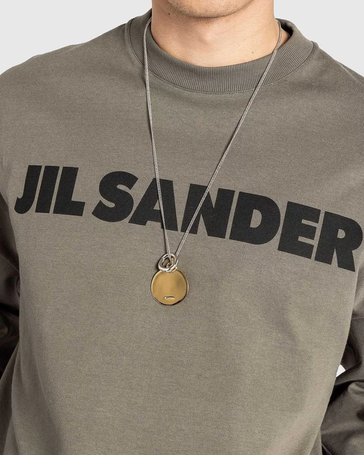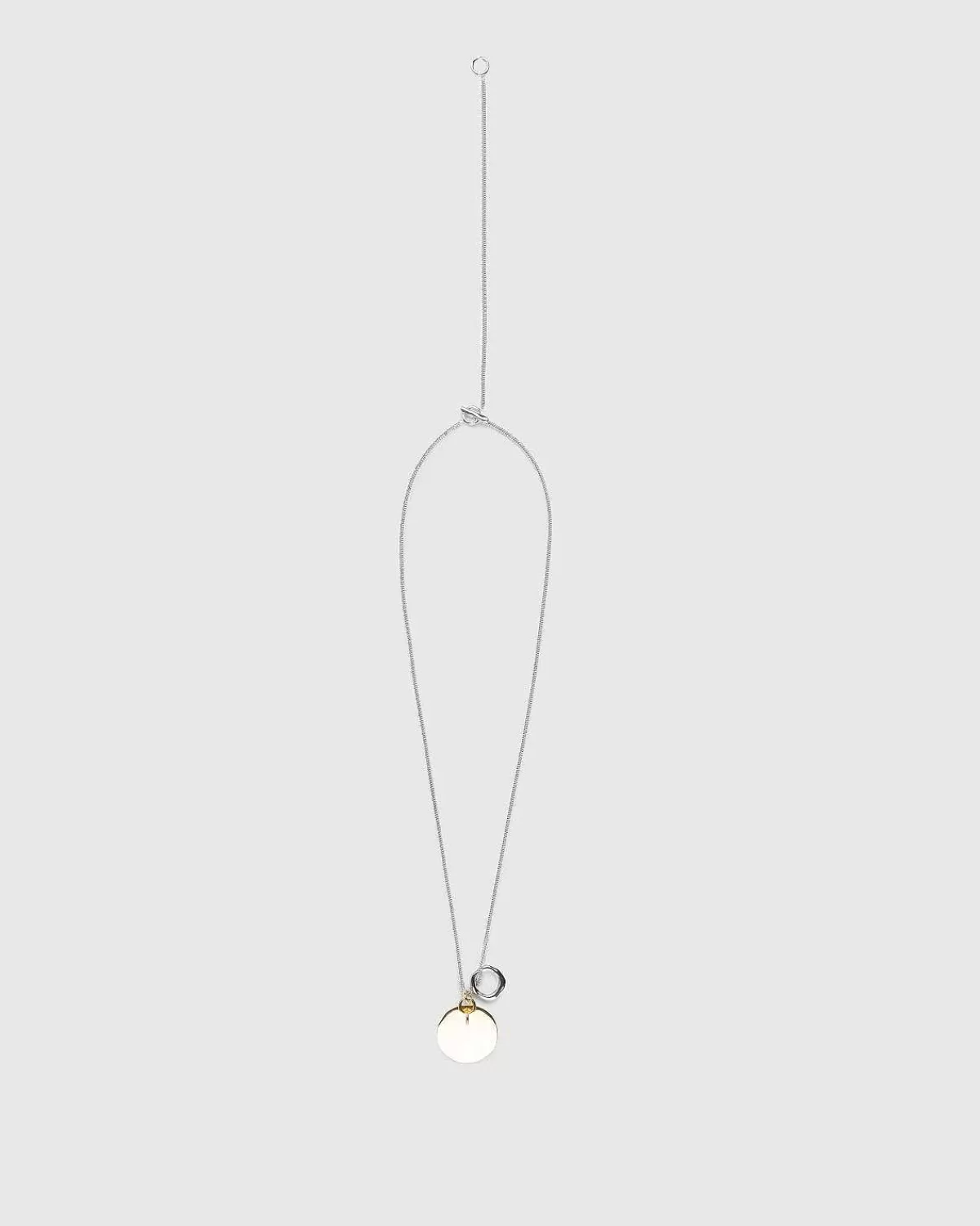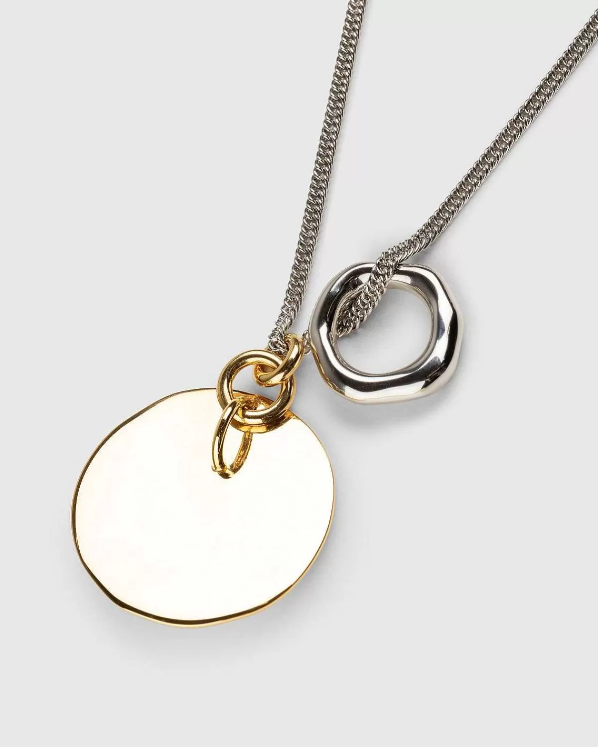 Denne Jil Sander-Halskæde Er Lavet Af 100 % Messing Og Er En Dagligdags Smykkestil Defineret Af Dobbelte Vedhæng Og En Dobbeltlængdejustering. Kæden Er Sølv, Mens Vedhængene Kommer Frem I Sølv Og En Komplementær Guldskærm. Det Større Guldvedhæng Er Derefter Mærket Med Et Præget Jil Sander-Logo.
