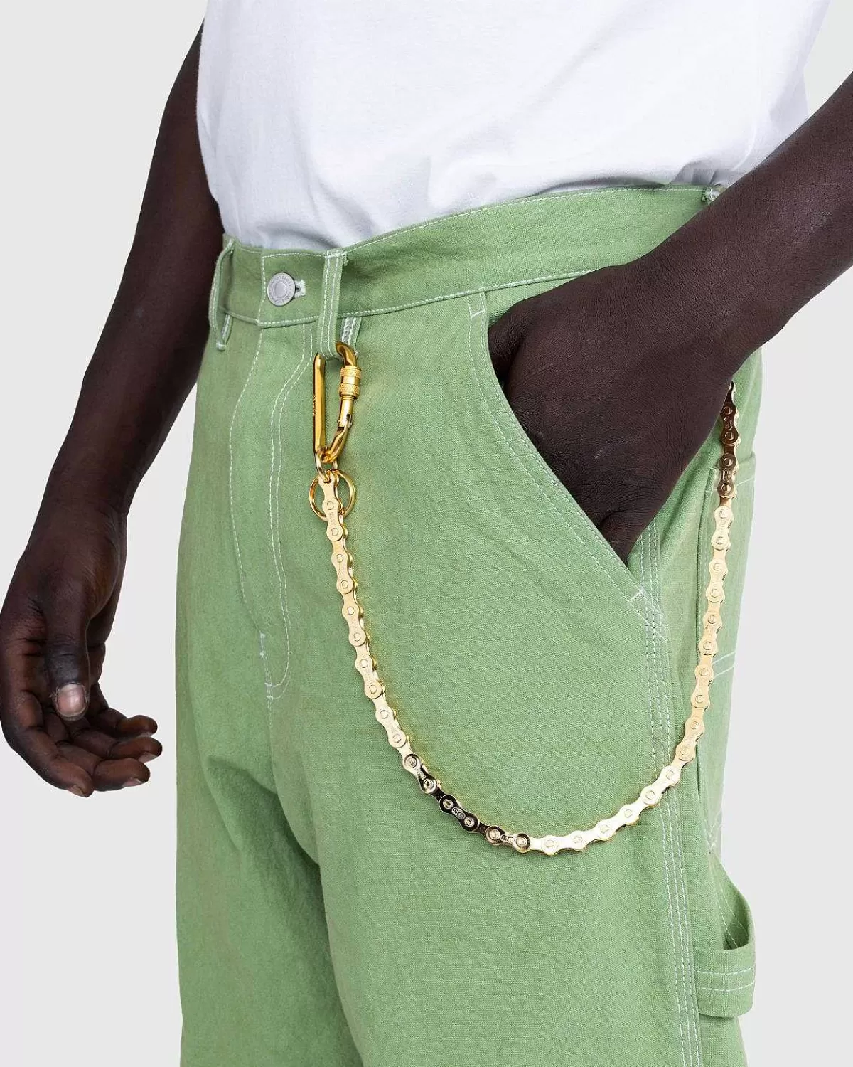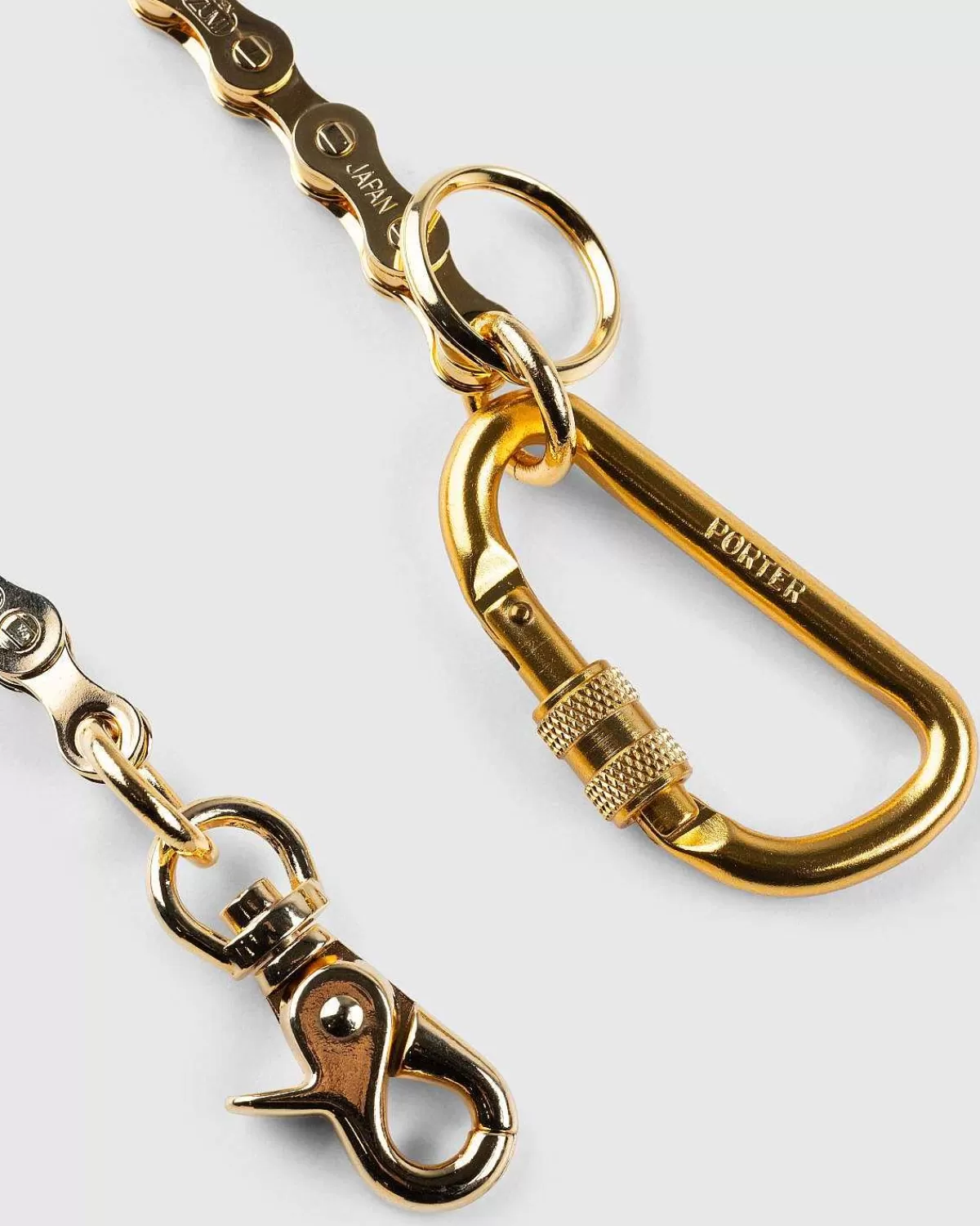 Dette Smarte Tilbehør Fra Porter Bruger En Racercykelkæde Fra Izumi Chain Co., Der Har Udviklet Sine Produkter I Over 100 År. Nøgleringen Er Detaljeret Med En Guldpatina Og Har En Karabinhage Med Et Præget Porter-Logo I Midten.
